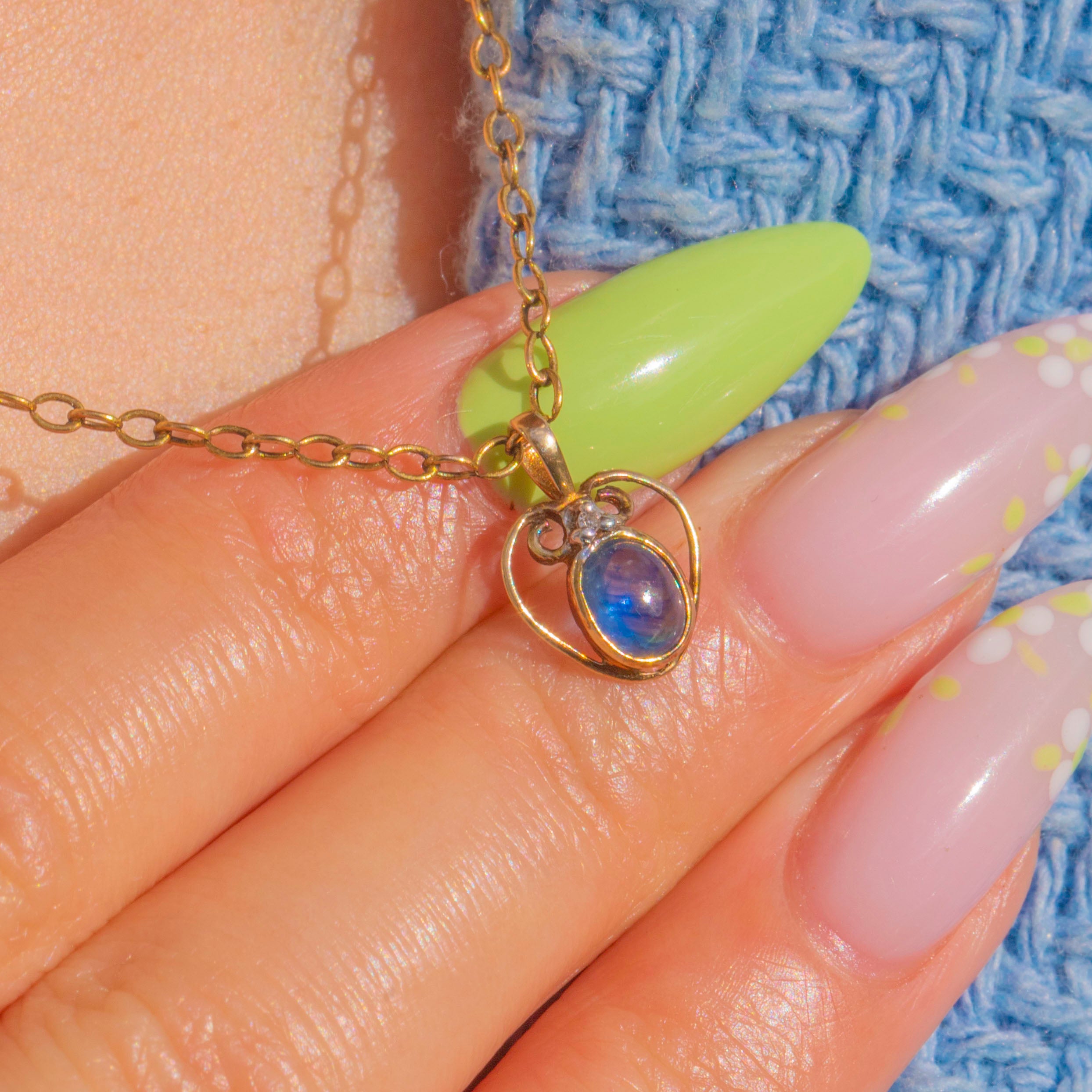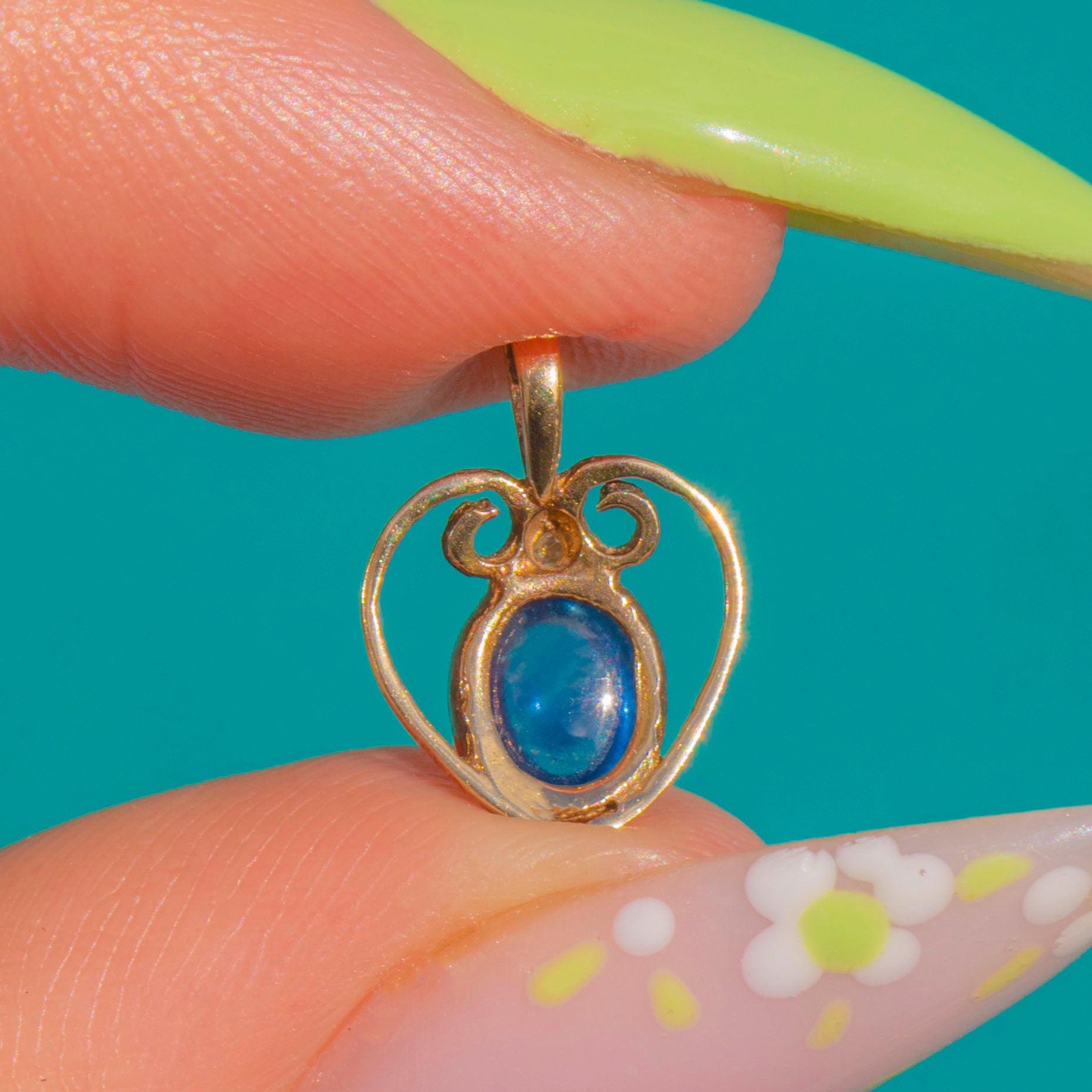 9ct Gold Natural Sapphire Cabochon Diamond Heart Charm