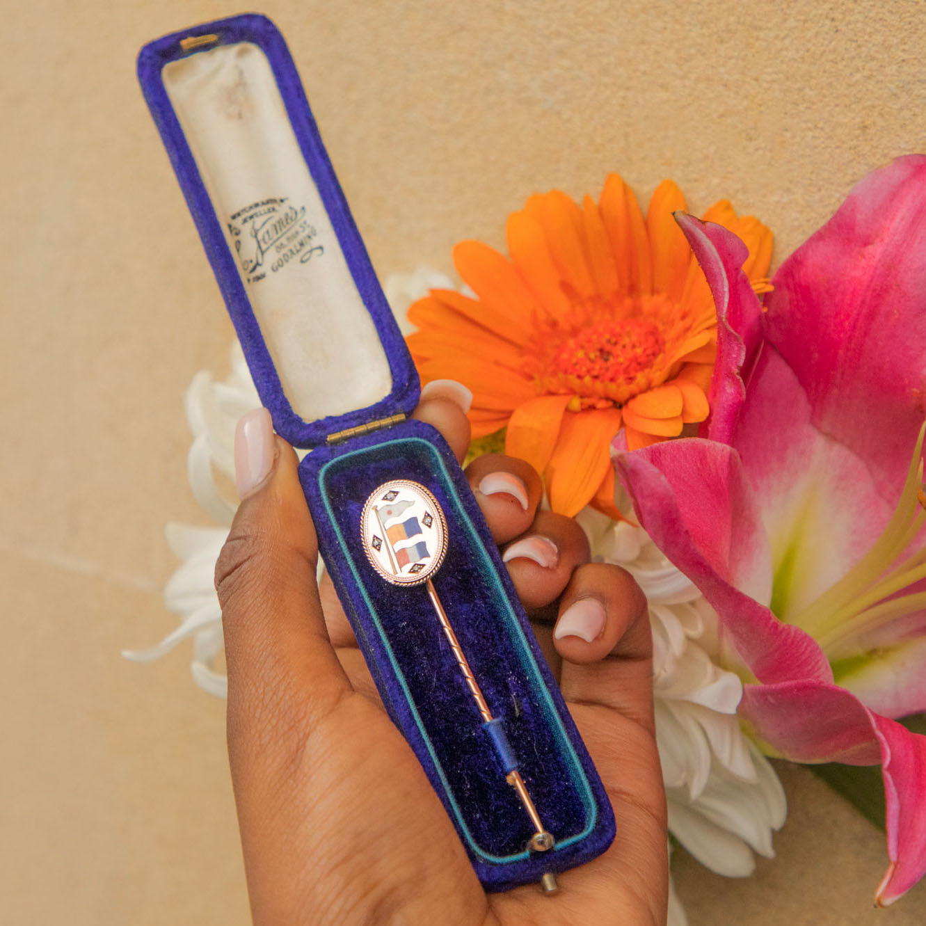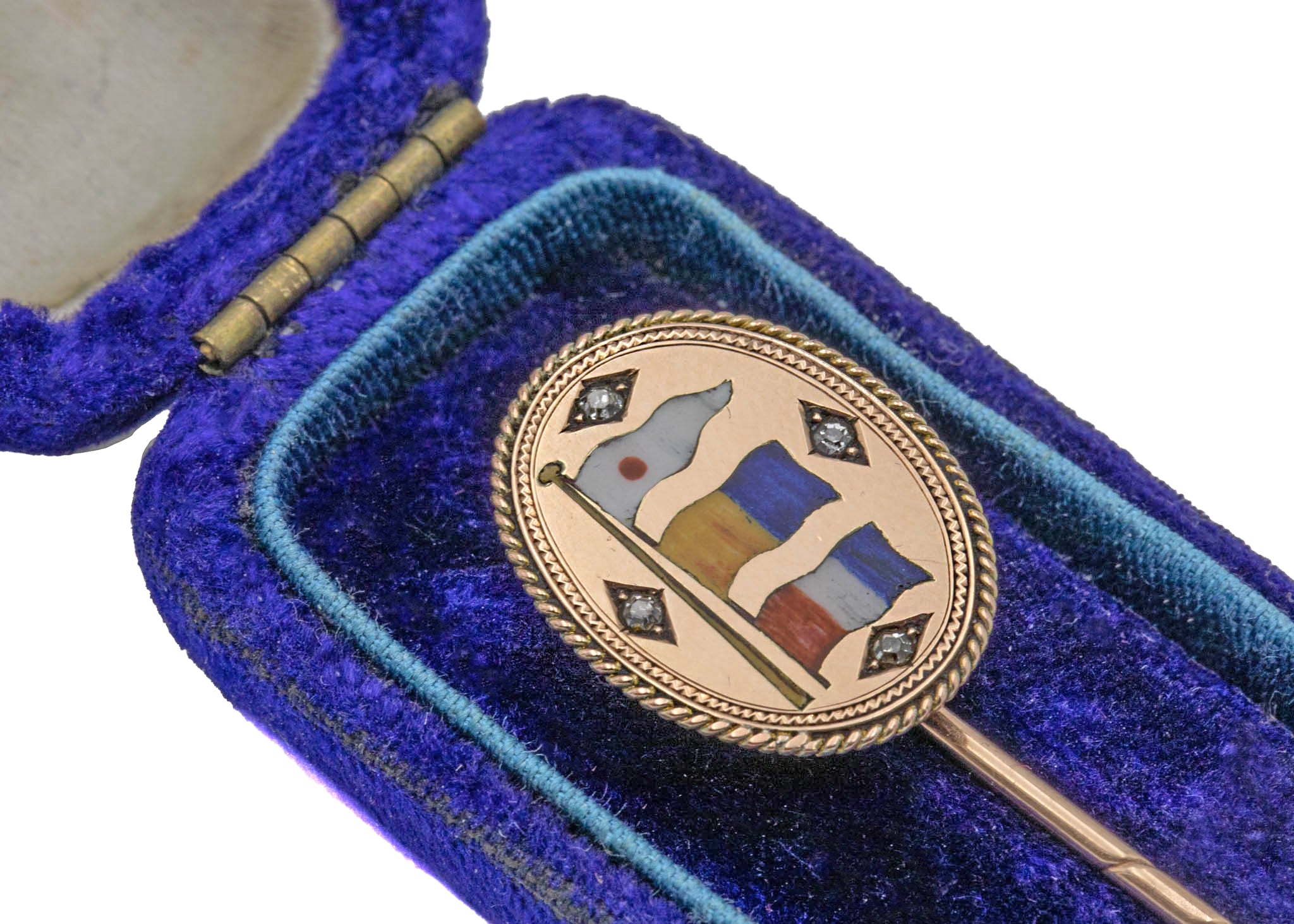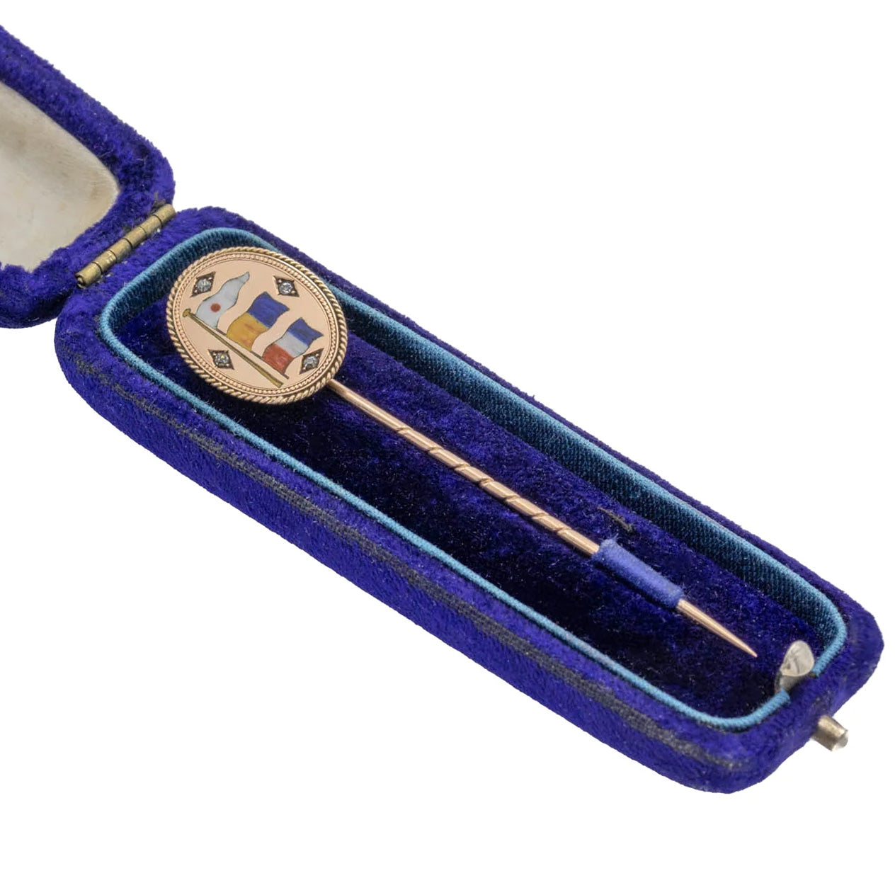 9ct Gold Nautical Flag Stick Pin, Original Blue Velvet Box