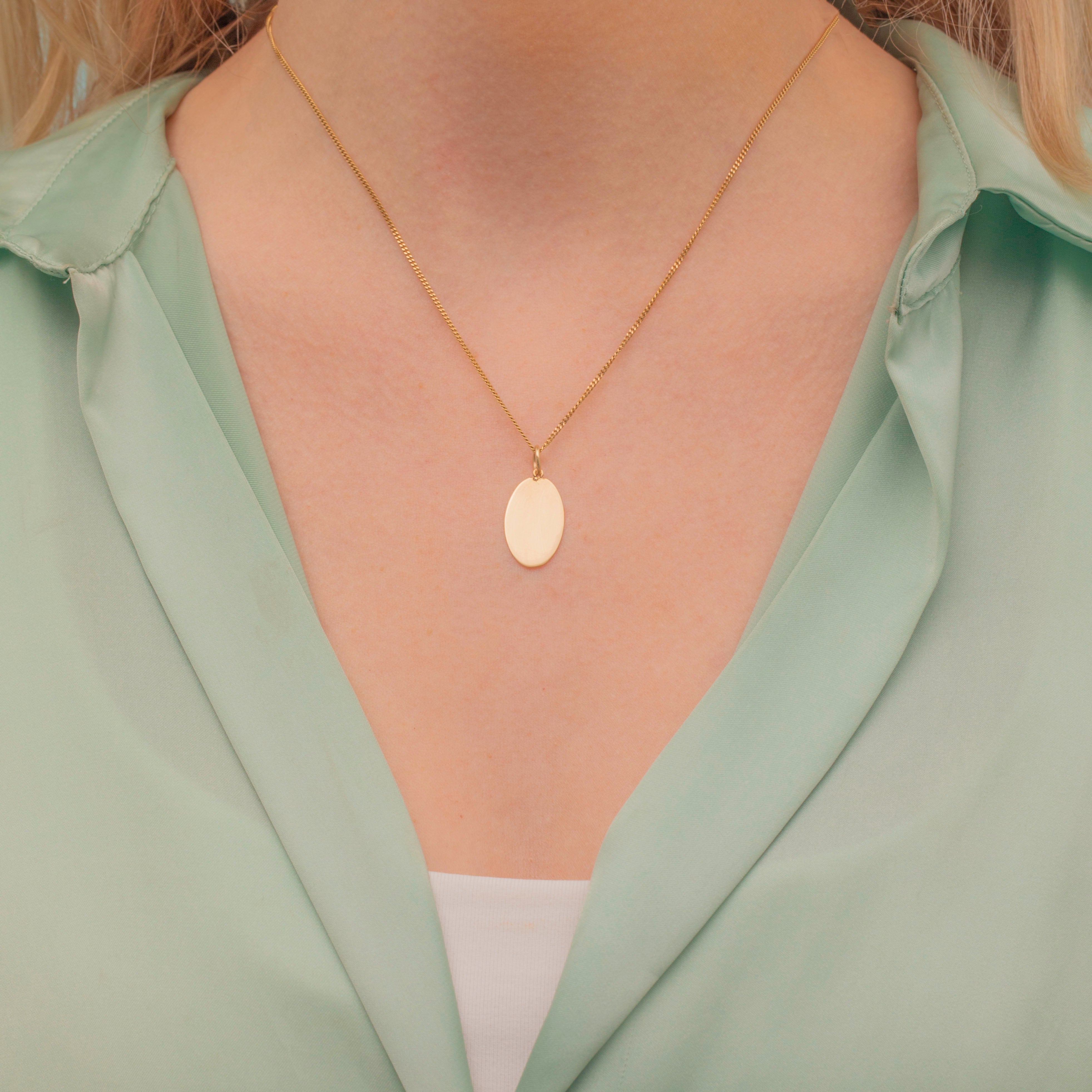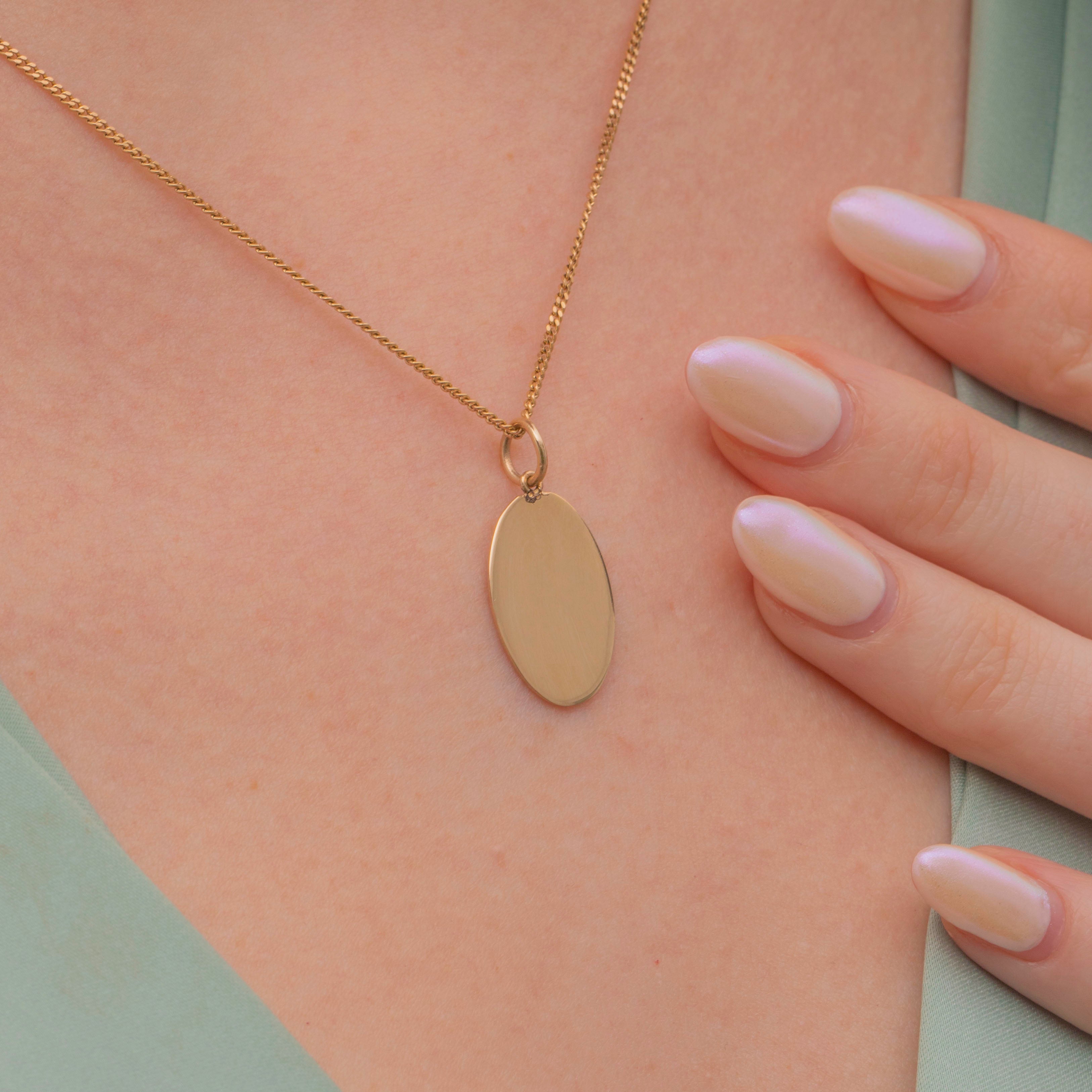 Add a drop of sunshine to your neck stack with this 9ct Gold oval disc pendant! Crafted from luscious 9ct Gold, this vintage disc pendant is the perfect dainty piece to add to your collection.