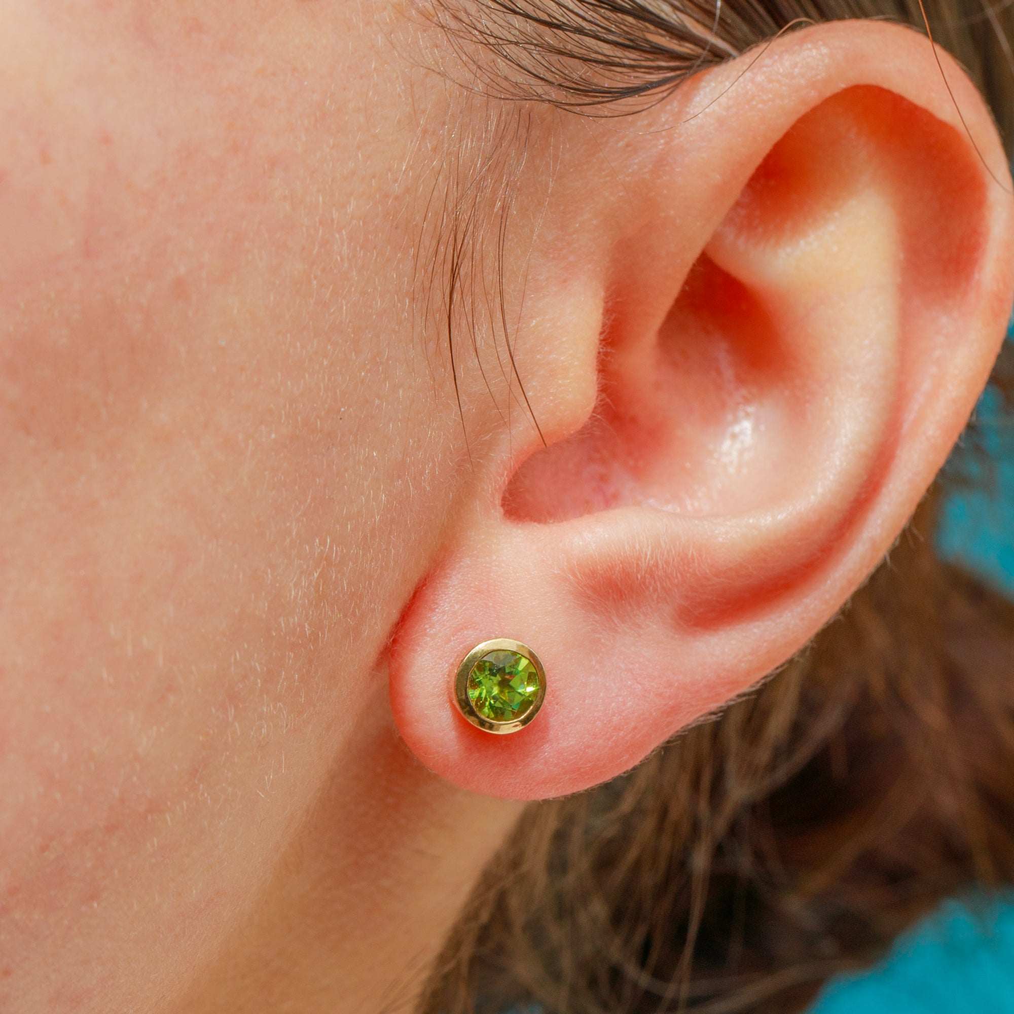 These 9ct Gold Peridot bezel-set stud earrings are a must-have addition for your jewellery box! Crafted from solid 9ct Gold, these petite vintage studs are lightweight and perfect for daily wear.