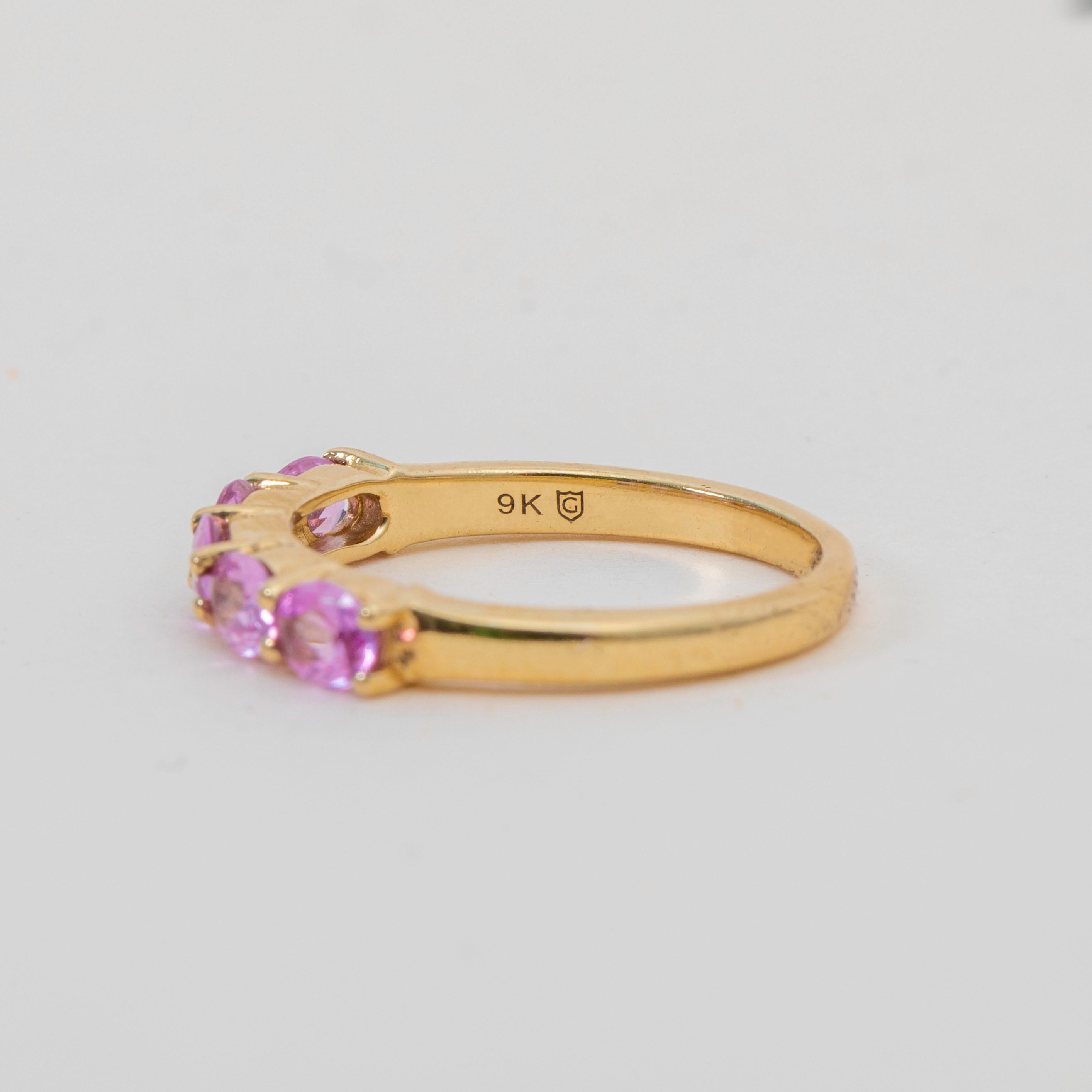 Crafted from buttery 9ct Gold, this eternity ring features five stunning pink Sapphires, each radiating soft rose hues as they catch the light. A symbol of eternal love, this Sapphire ring is the epitome of romance and is the perfect piece to add to your collection this valentines day!