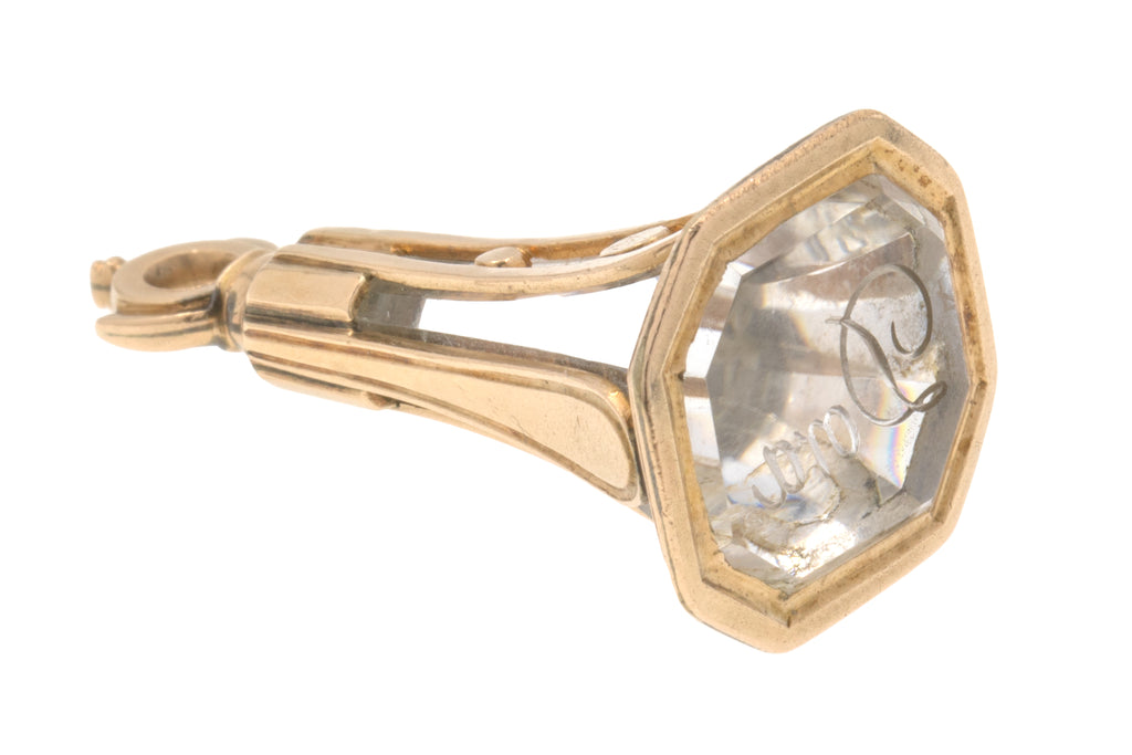 What is so unique about this particular seal pendant is that her Rock Crystal runs through the centre of her pilar ending at the base, allowing you to catch a glimpse of her from every angle. Initially belonging to someone named Dora, why not keep the tradition going and impress the recipient of your letters by wax-sealing them with this Victorian fob!