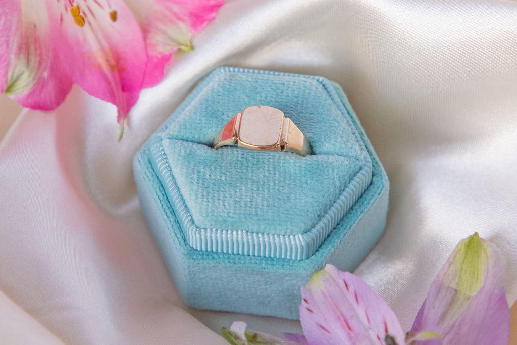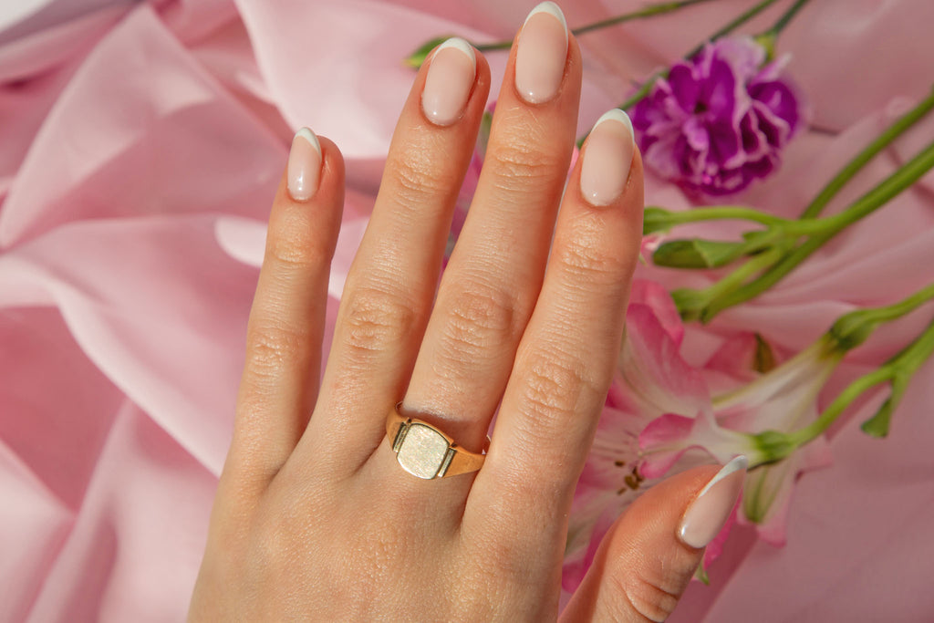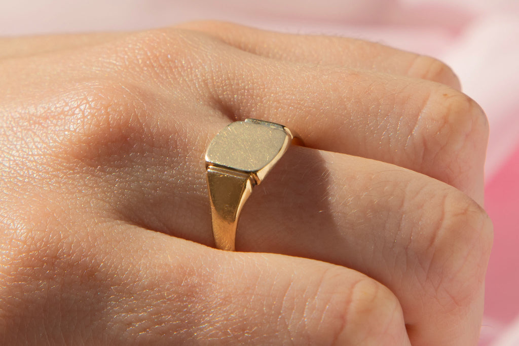 Add some vintage charm to your hand with this 9ct Gold signet ring! Composed of solid 9ct Gold, she is elegant in design and will marry perfectly alongside your other Gold goodies.