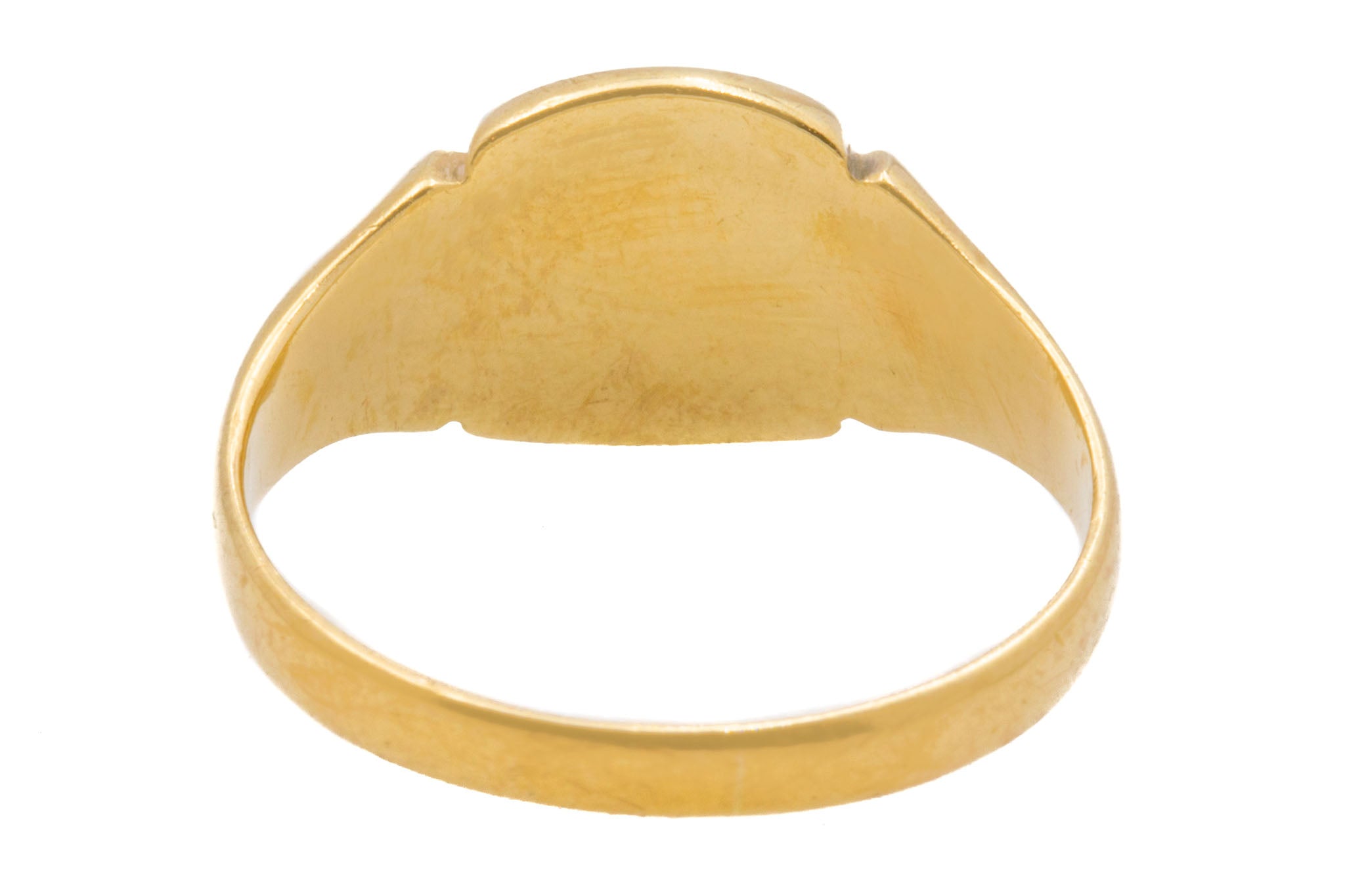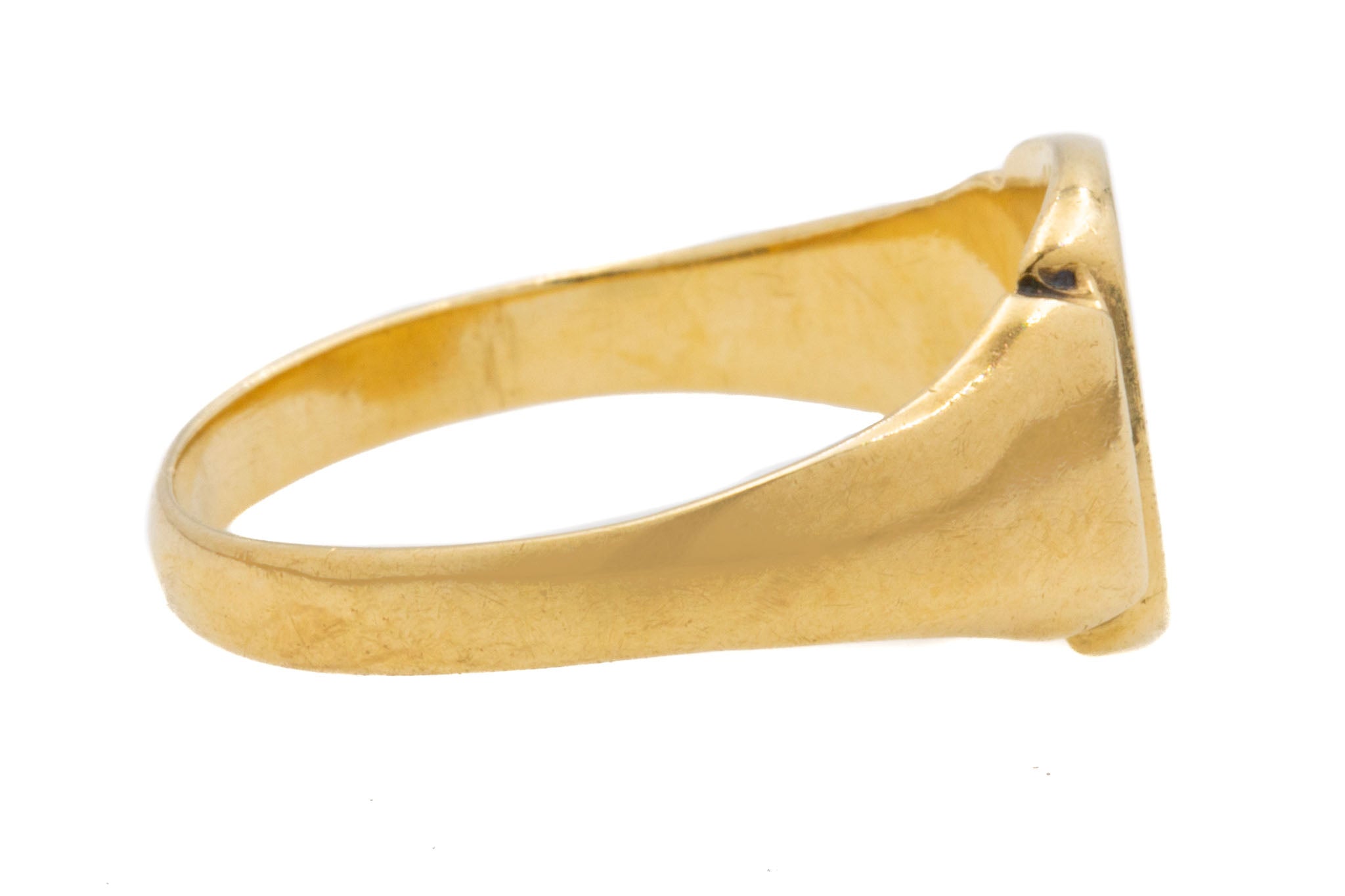 EXCELLENT. This heavy 9ct Gold signet ring is in excellent condition. The Gold remains in exquisite condition, with no dings or damage to note aside from a few scratch marks to the inside of the band. The design and structure has kept incredibly well too. Overall, a stunning vintage signet ring ready to be adored for years to come!