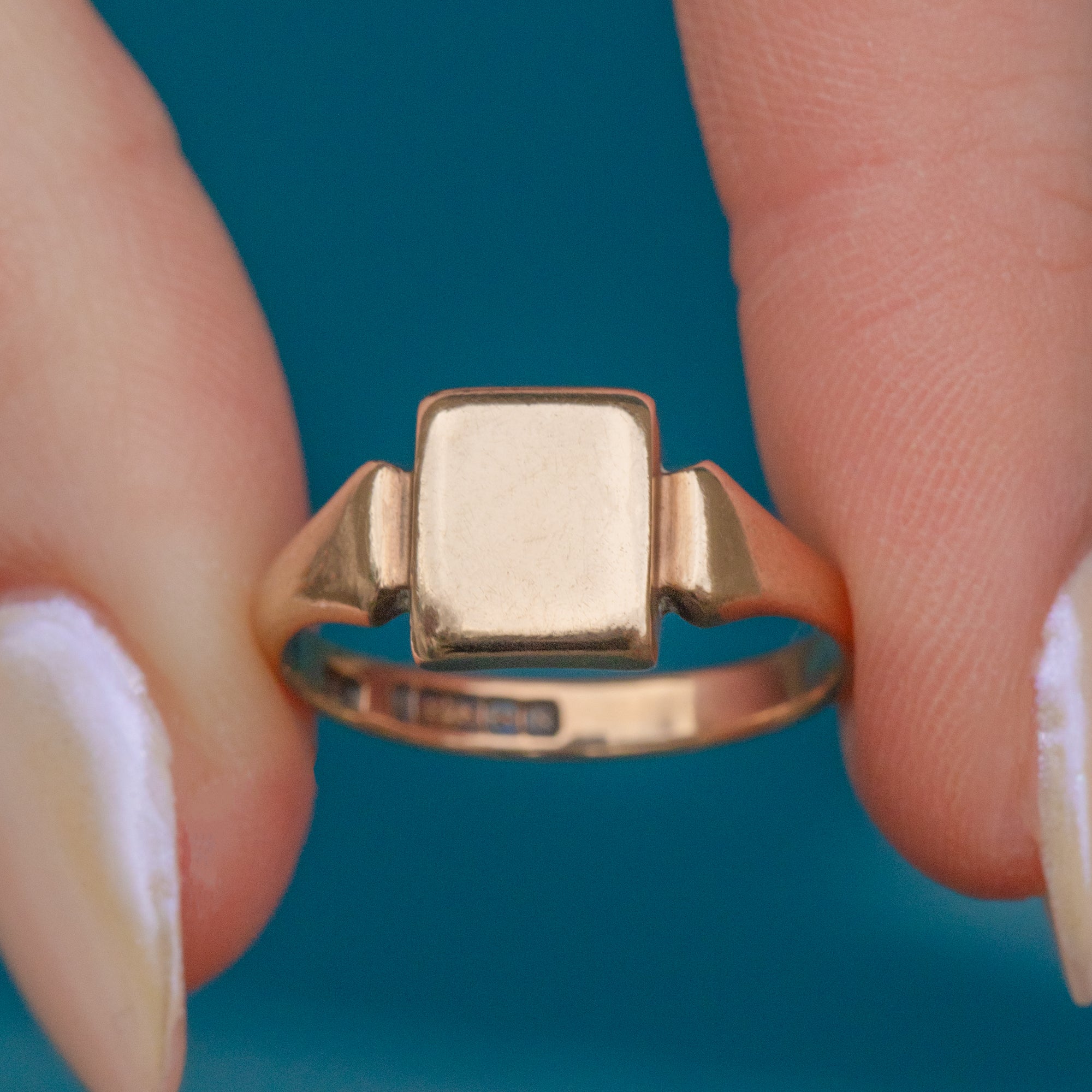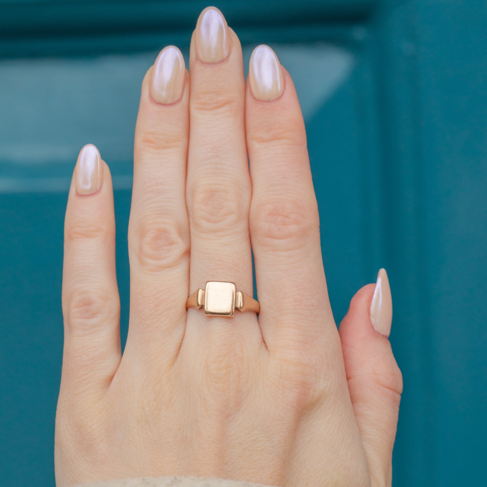 This Art Deco 9ct Gold square signet ring will incorporate seamlessly into your everyday jewellery wardrobe.