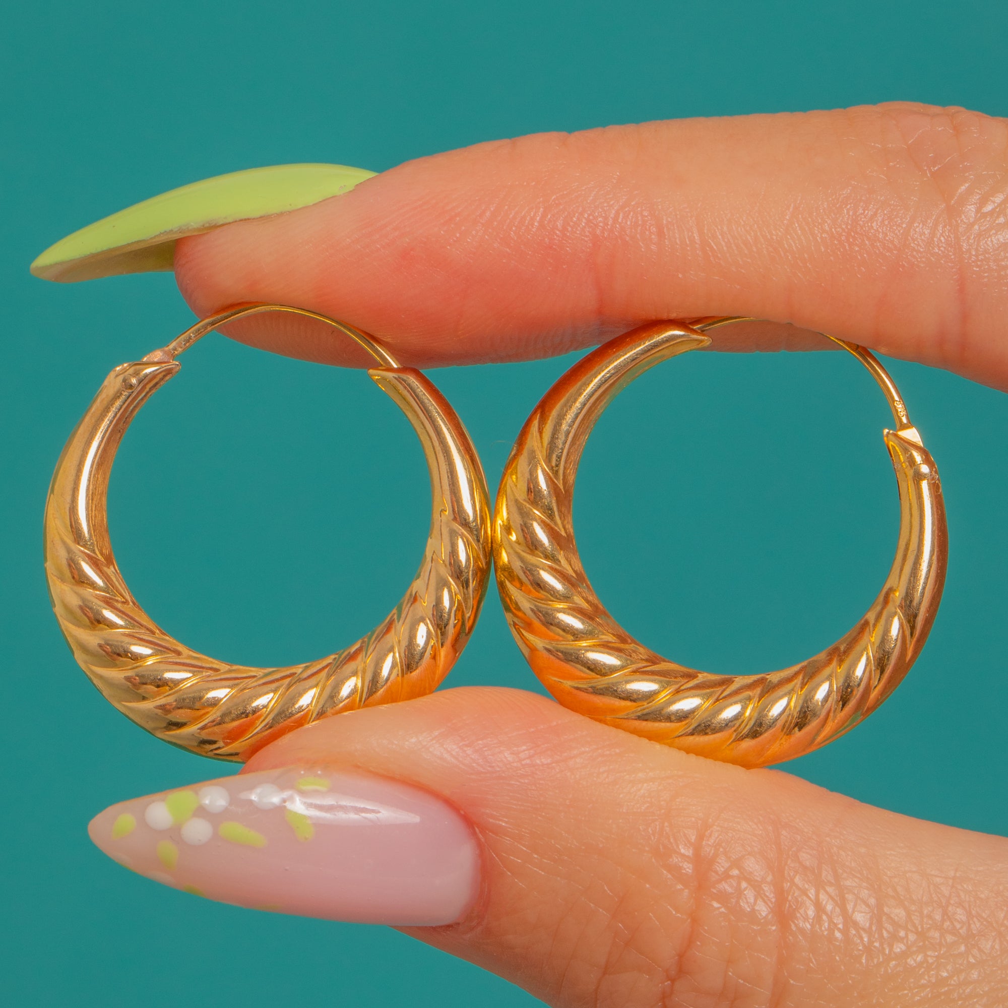 MEASUREMENTS: Hoops measure 24.5mm in external diameter.