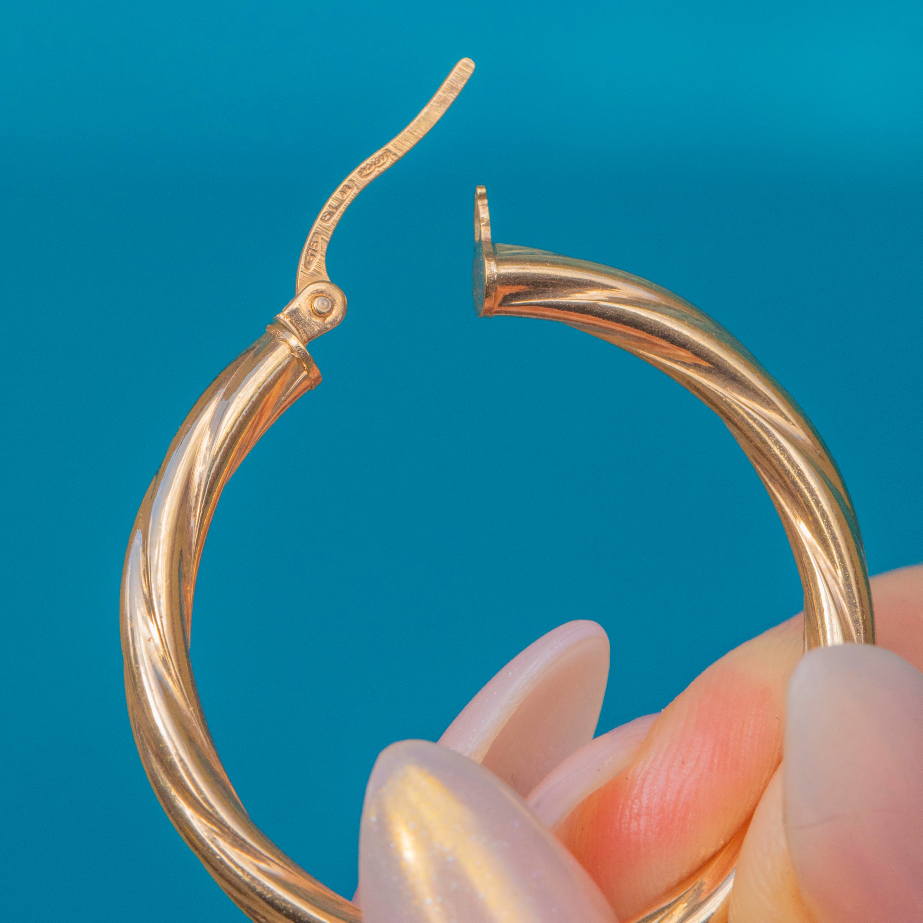 A timeless pair of Vintage hoop earrings, crafted in 9ct Gold with an elegant twisted design. Measuring 30mm across, these hoops have just the right amount of presence—sleek enough for everyday wear, yet refined for more polished looks.
