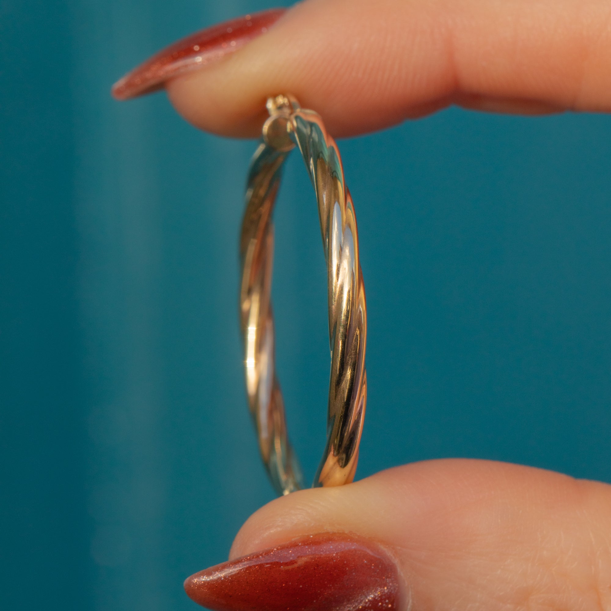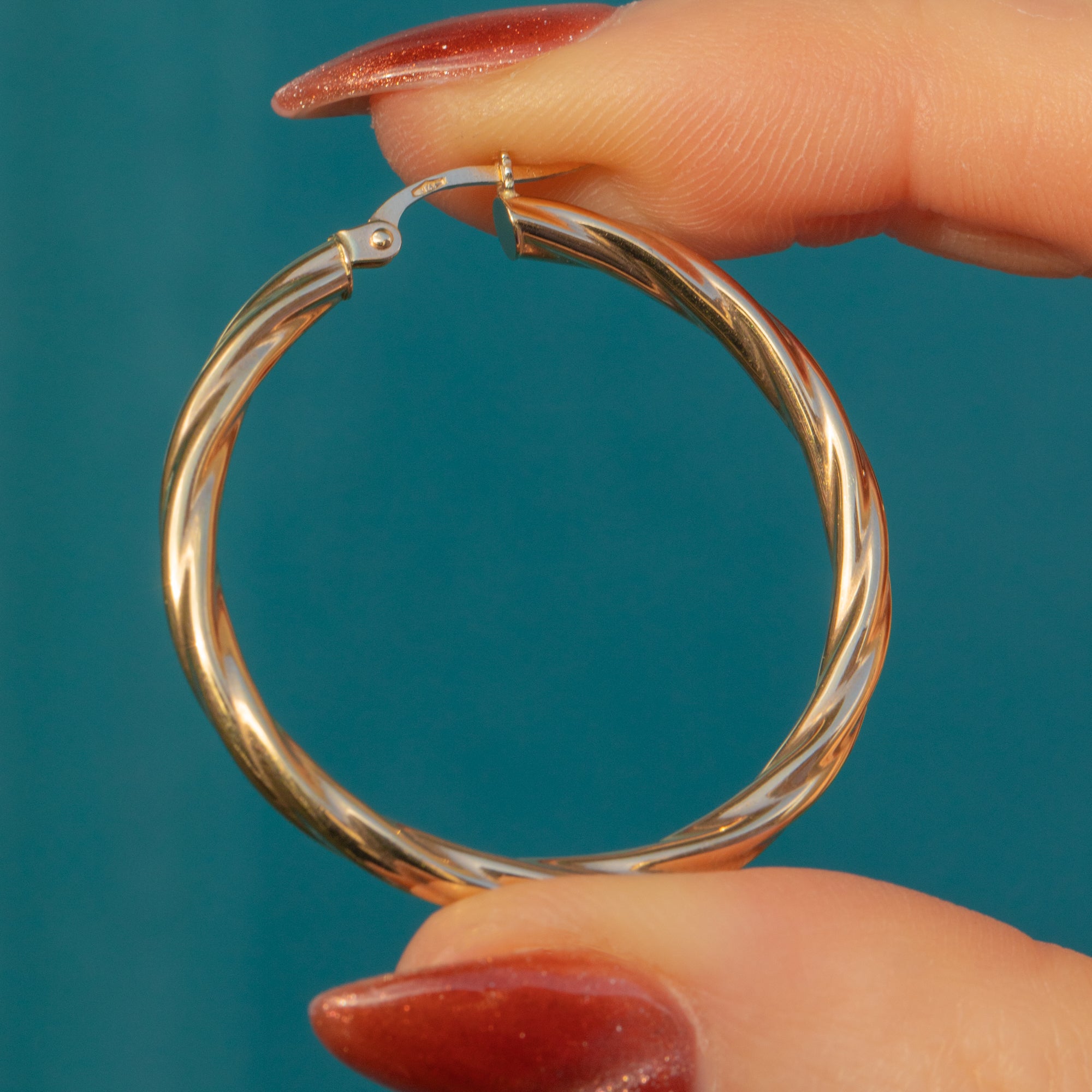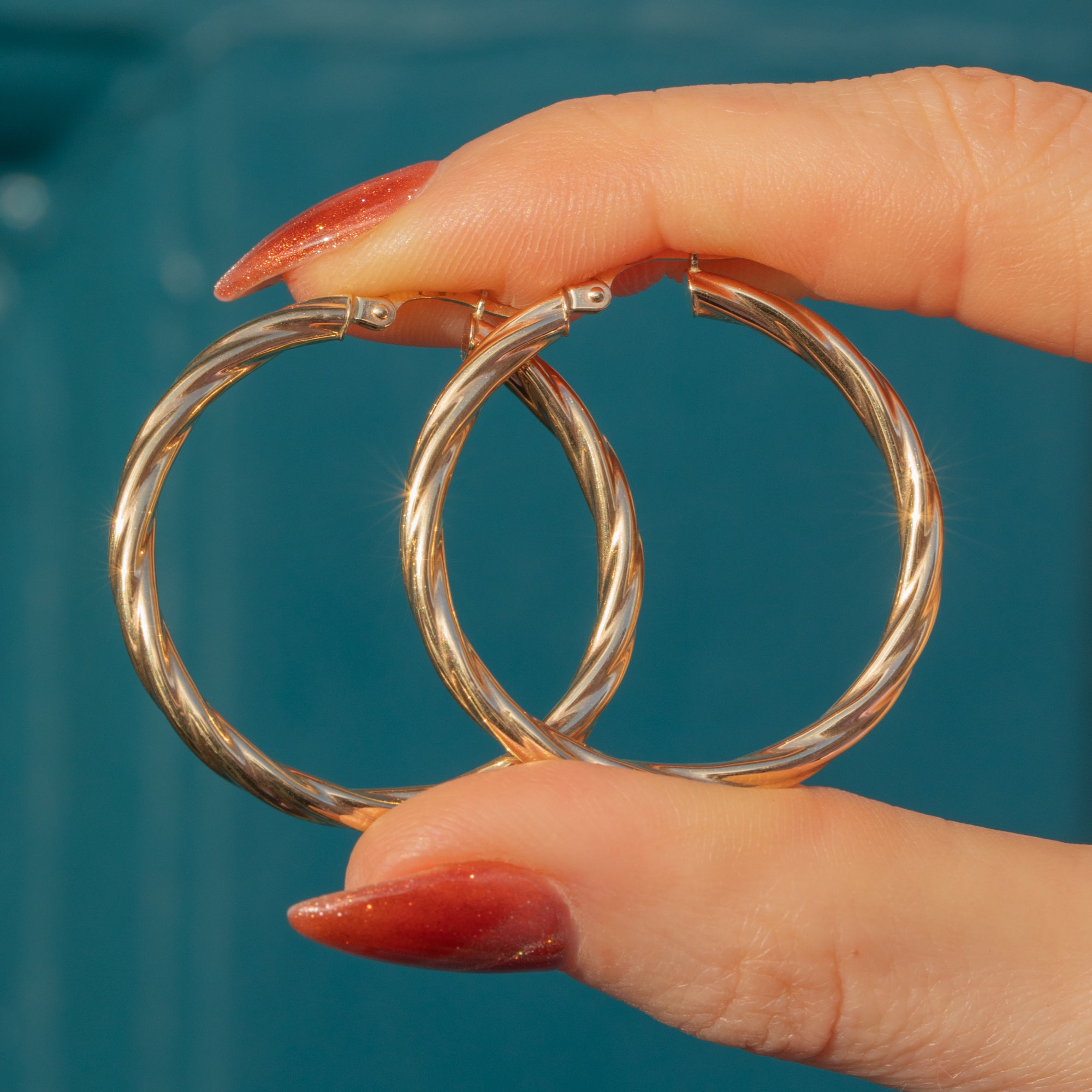These 9ct Gold twisted hoop earrings are a great versatile pair to add to your collection! Crafted from sun-kissed 9ct Gold, these vintage hoops have a lovely textured twist design throughout that catch the light wonderfully.
