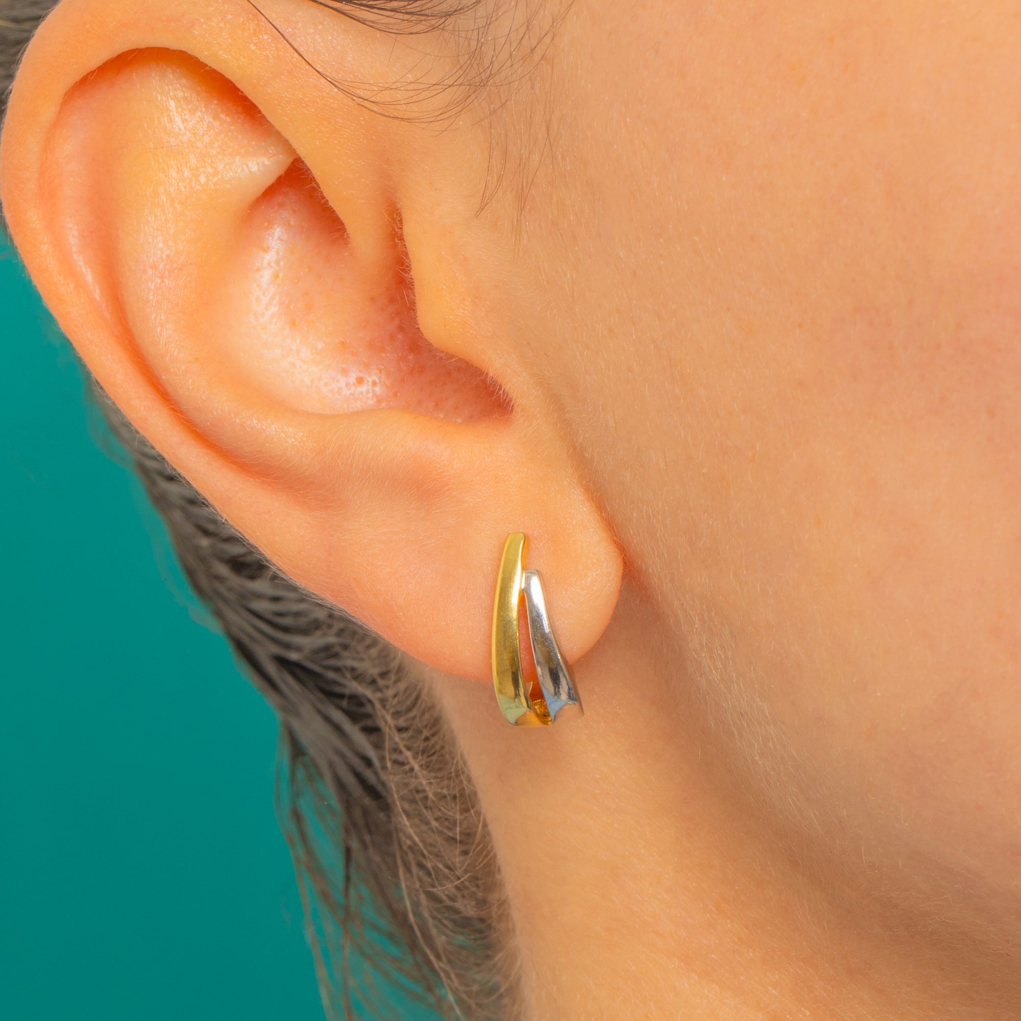 Sleek and sculptural, these Vintage two-tone hoops are crafted in 9ct Gold and 9ct White Gold with a tapered double-band design. The parallel ribbon-like bands create elegant dimension and a refined, architectural silhouette.
