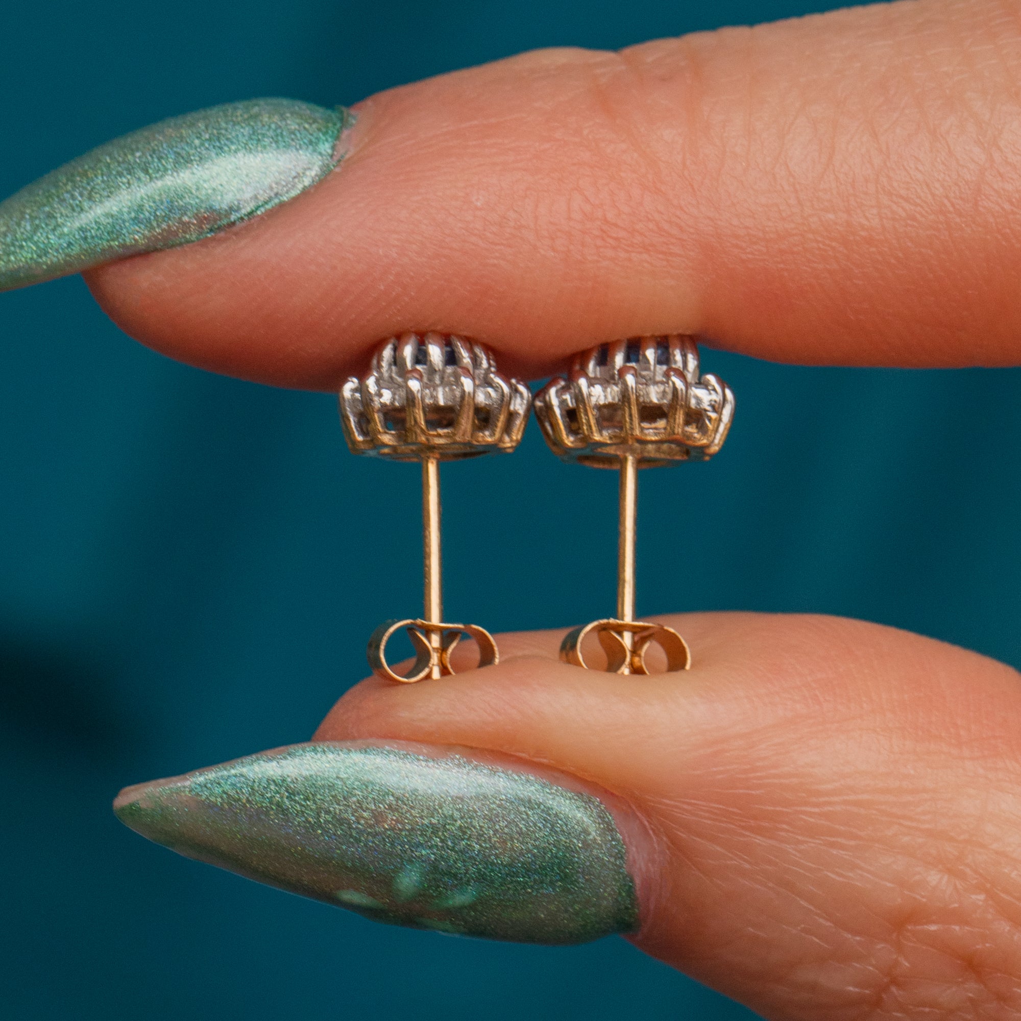 The floral form of these Vintage Sapphire stud earrings will provide a feminine flare to your ear stack and their dainty size allows you to wear them from day to night with ease!
