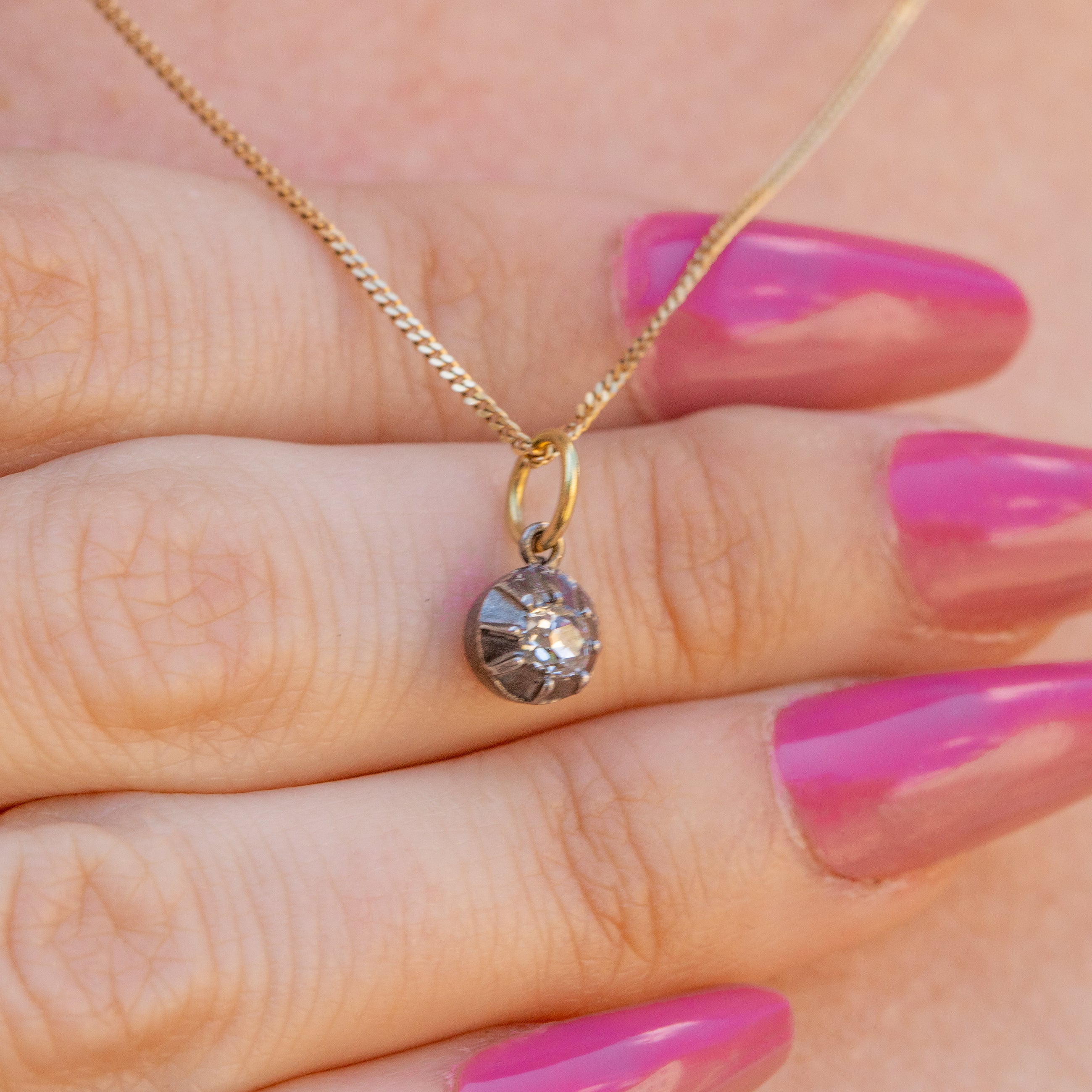 EXCELLENT. This Victorian Old-mine Cut Diamond charm is in excellent condition, with no chips or fleabites to note. She is securely held within her collet setting and is guaranteed to last a lifetime. The Diamond is radiant as ever, which is incredible considering her age. Need we say more?!