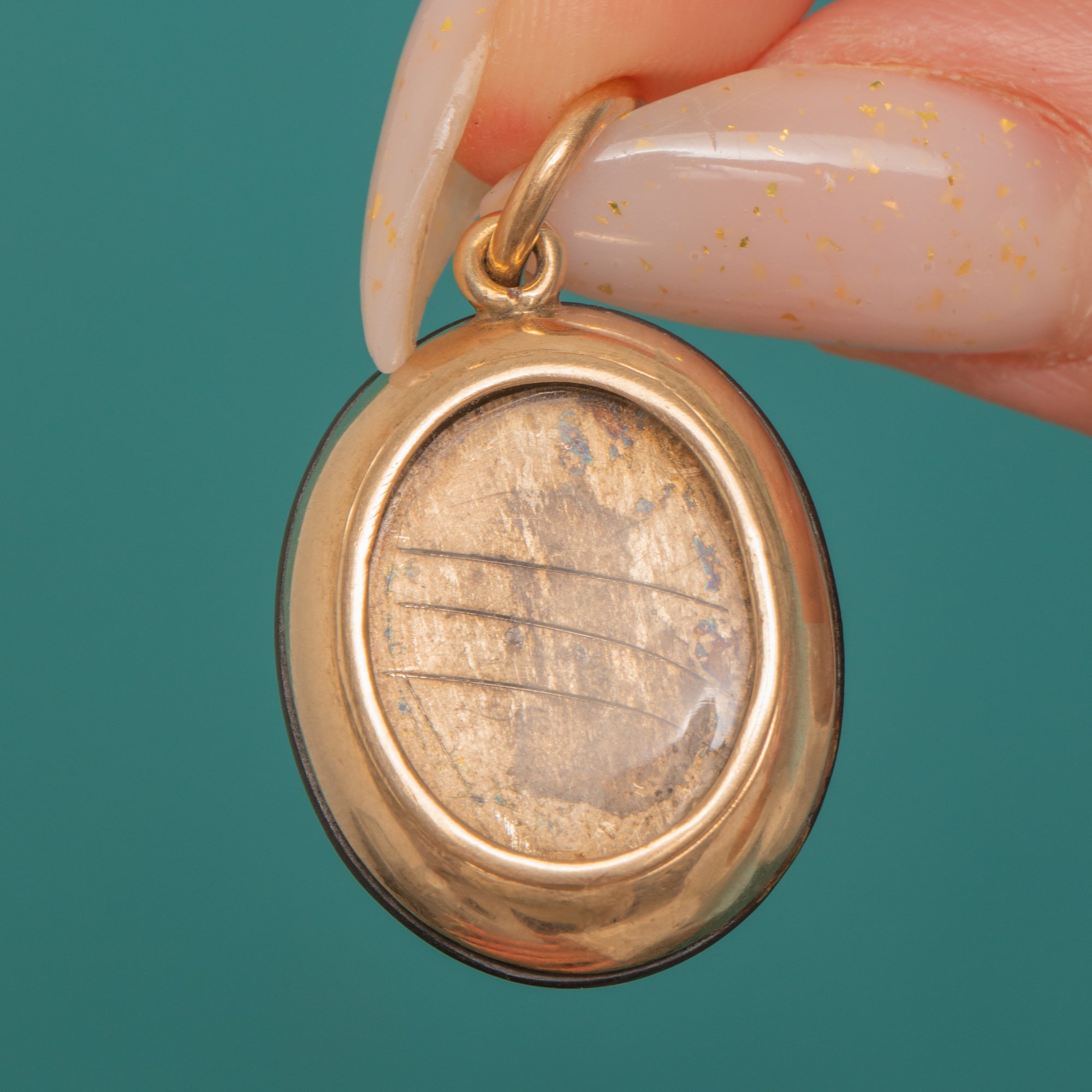Antique 15ct Gold Banded Agate Locket Back Pendant