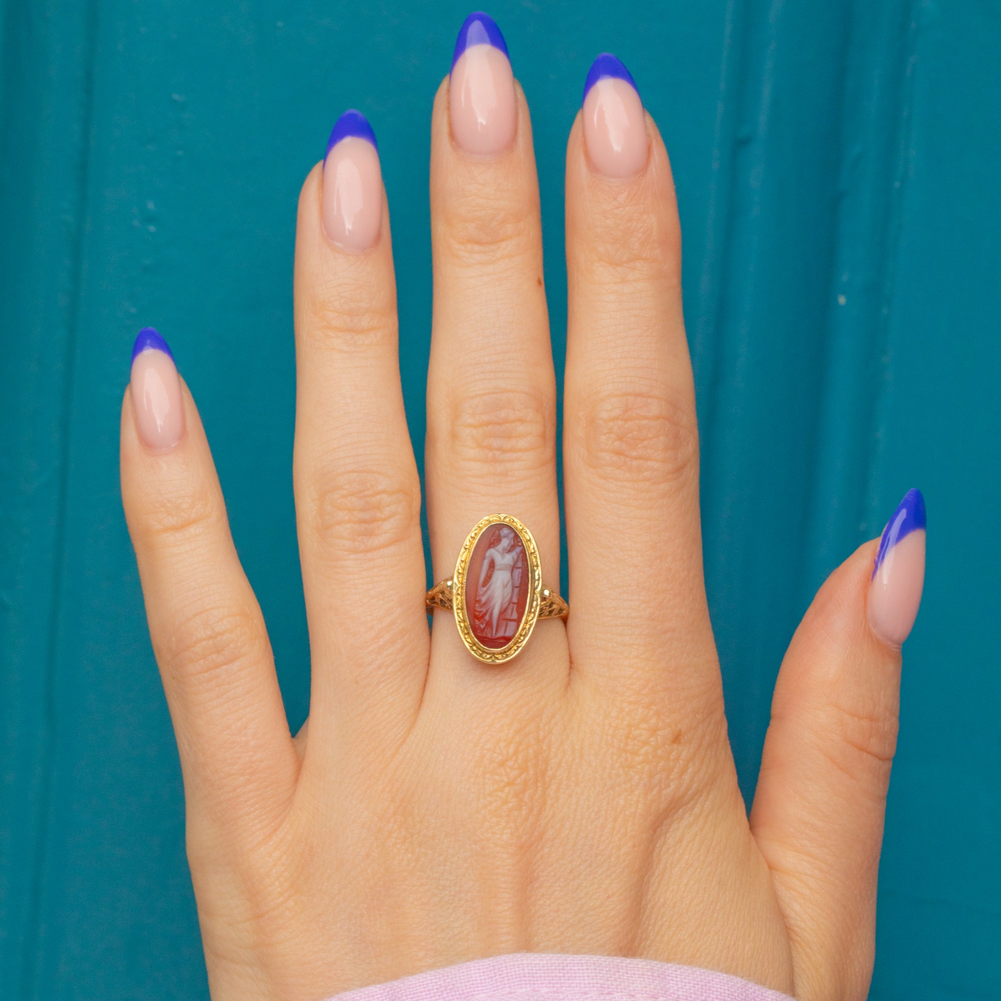 Antique 15ct Gold Carved Portrait Cameo Ring
