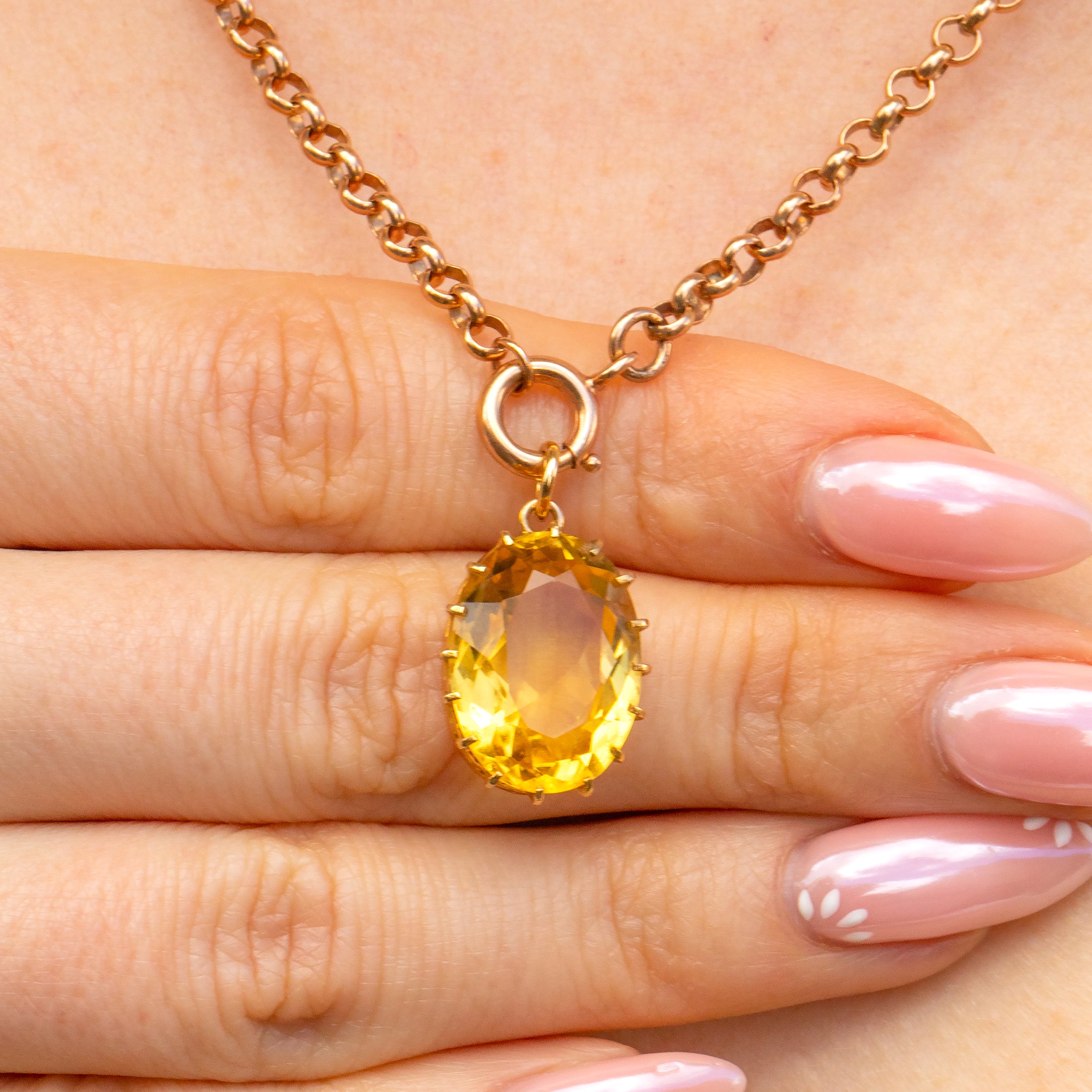 This antique 15ct Gold Citrine pendant will brighten even the darkest of days! Akin to a lemon sherbet sweet, 7.00cts of zesty hues dance across the fabulously faceted form of this Victorian Citrine pendant, thriving beneath the sunlight.