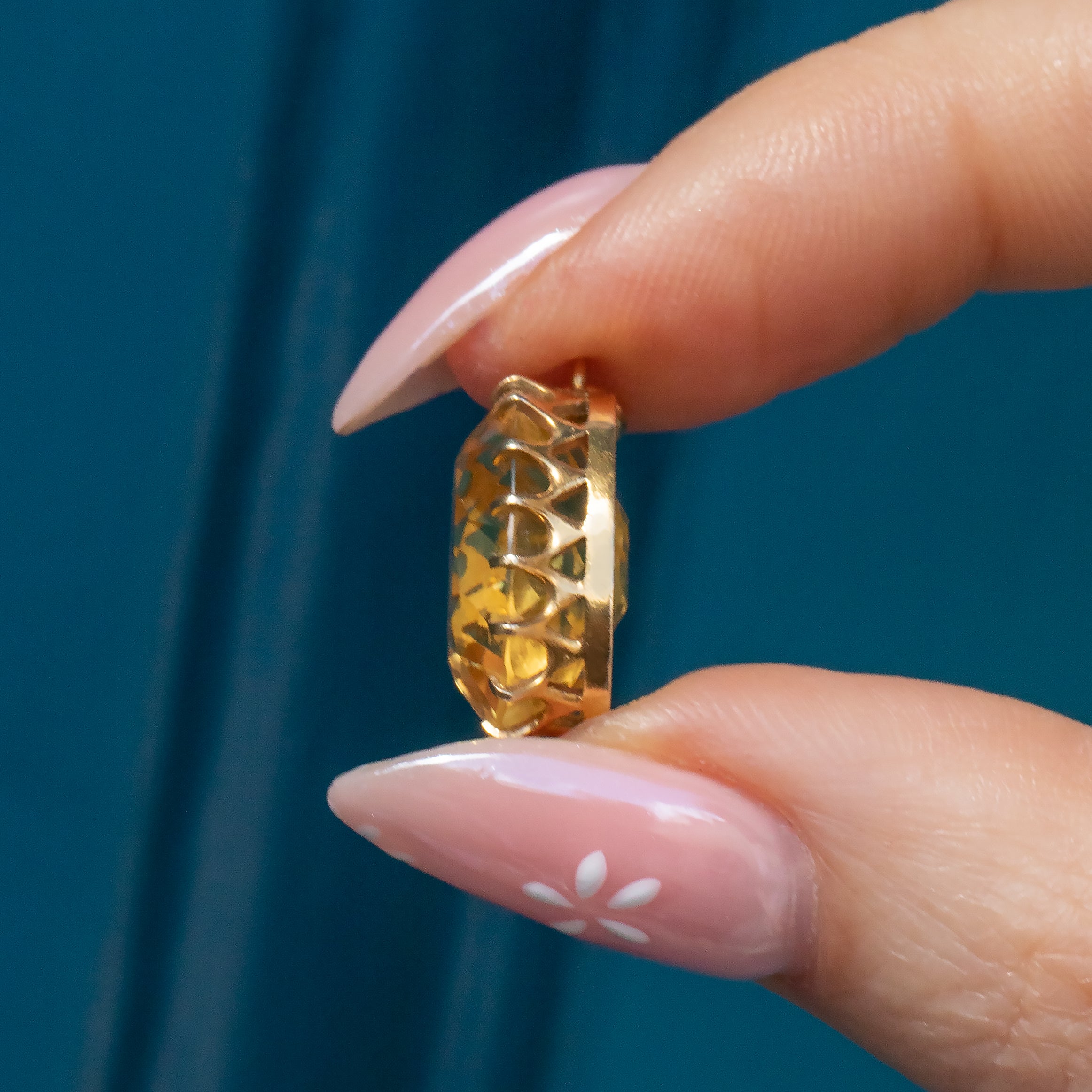 Hugged by crown settings and crafted entirely from buttery 15ct Gold, the light pours through from every angle. Just imagine the attention this antique Citrine pendant will garner once suspended from an antique Gold chain!