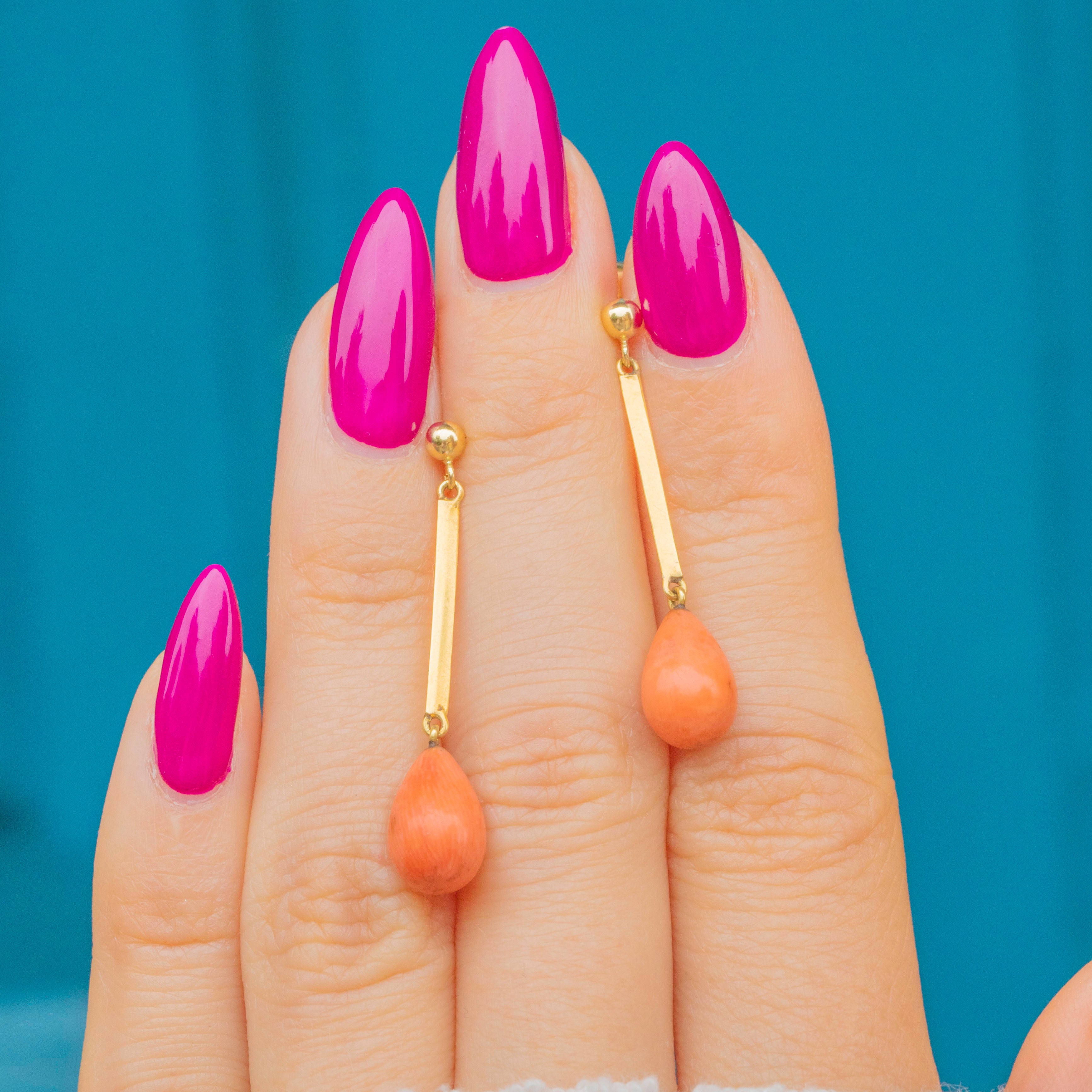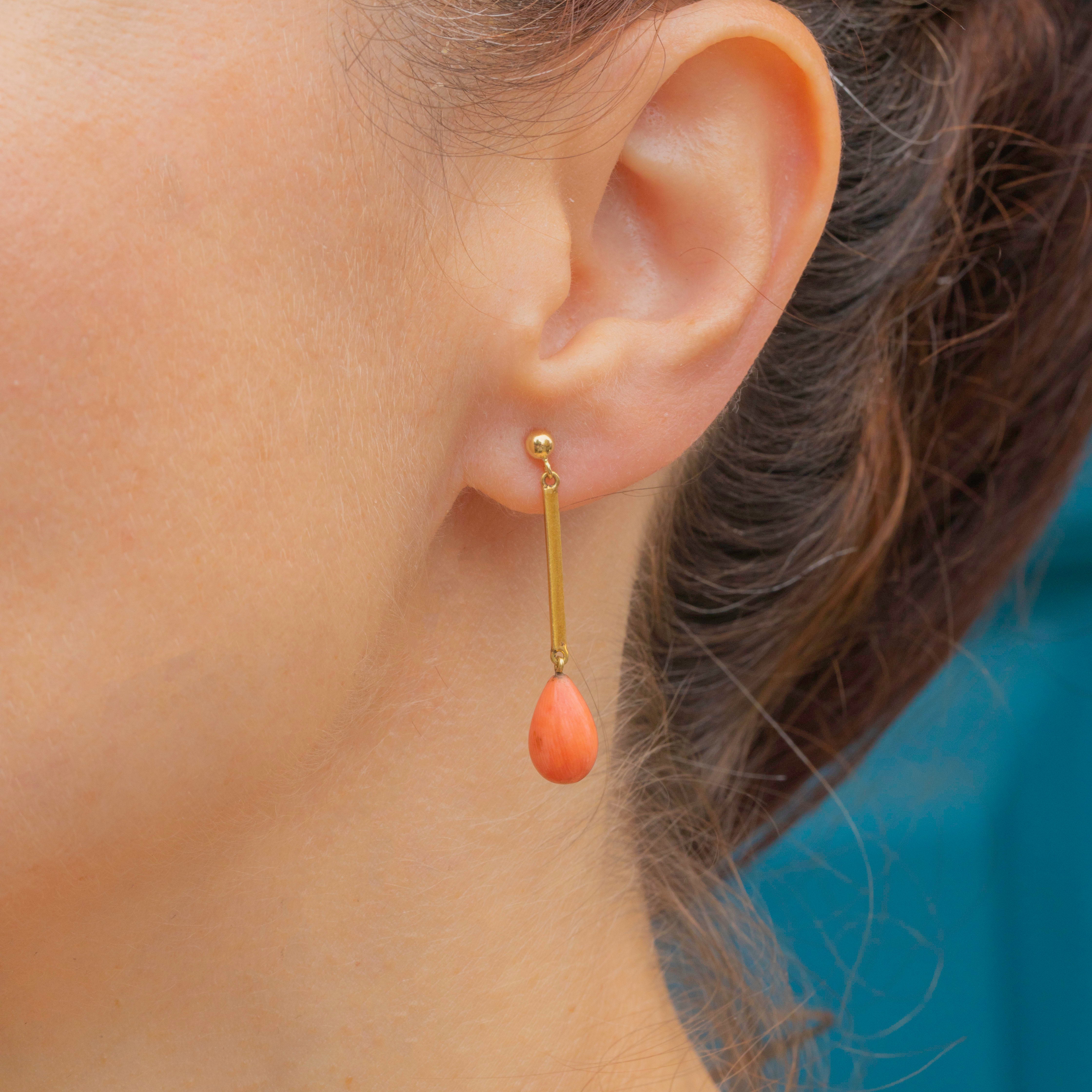 Antique 15ct Gold Coral Knife Edge Drop Earrings