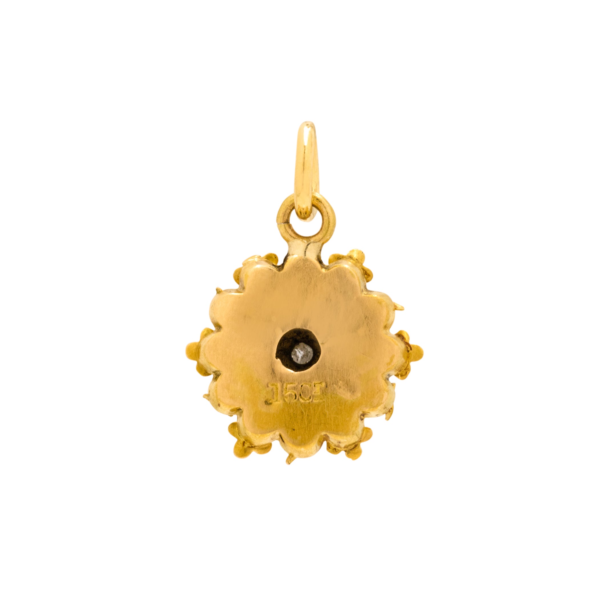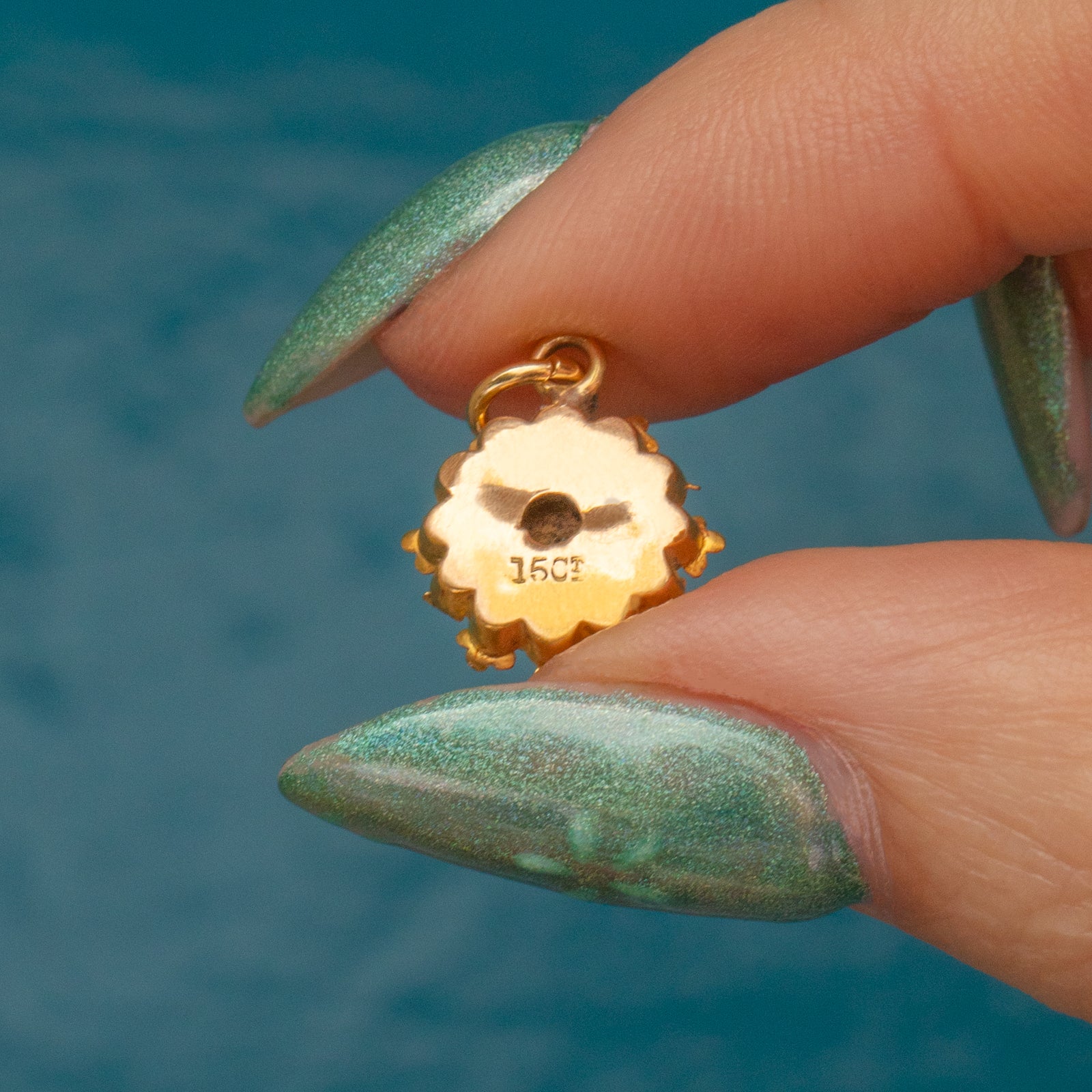Antique 15ct Gold Diamond Star-Set Charm, Flower Border