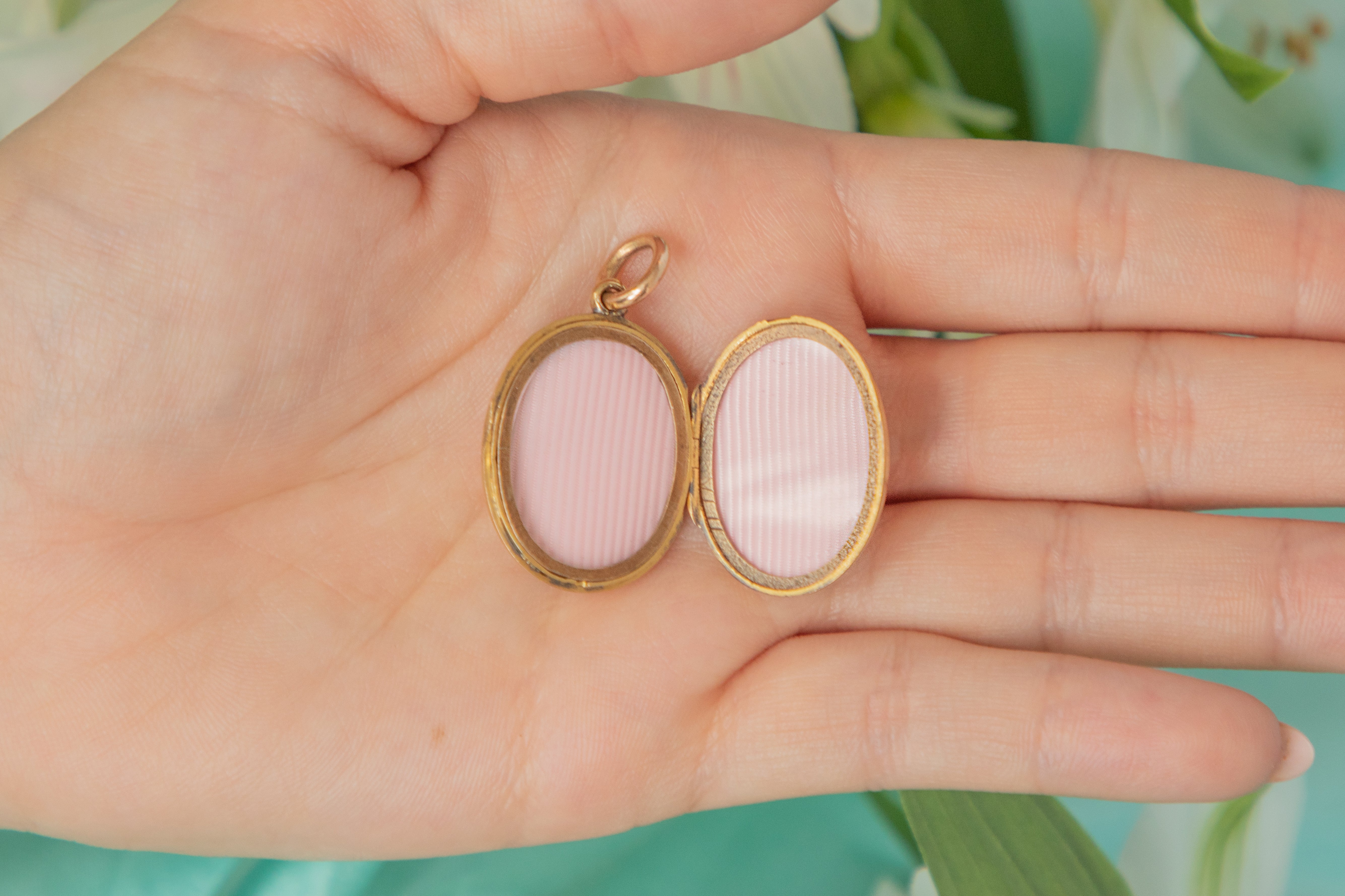 A sentimental piece, the engraved initials "JA" sit beautifully nestled in her shield, evidence of love from her previous life. Inside she has two plexiglass frames, ready to become home to your most cherished photographs. This Victorian Gold locket has enough sentiment to last a lifetime!