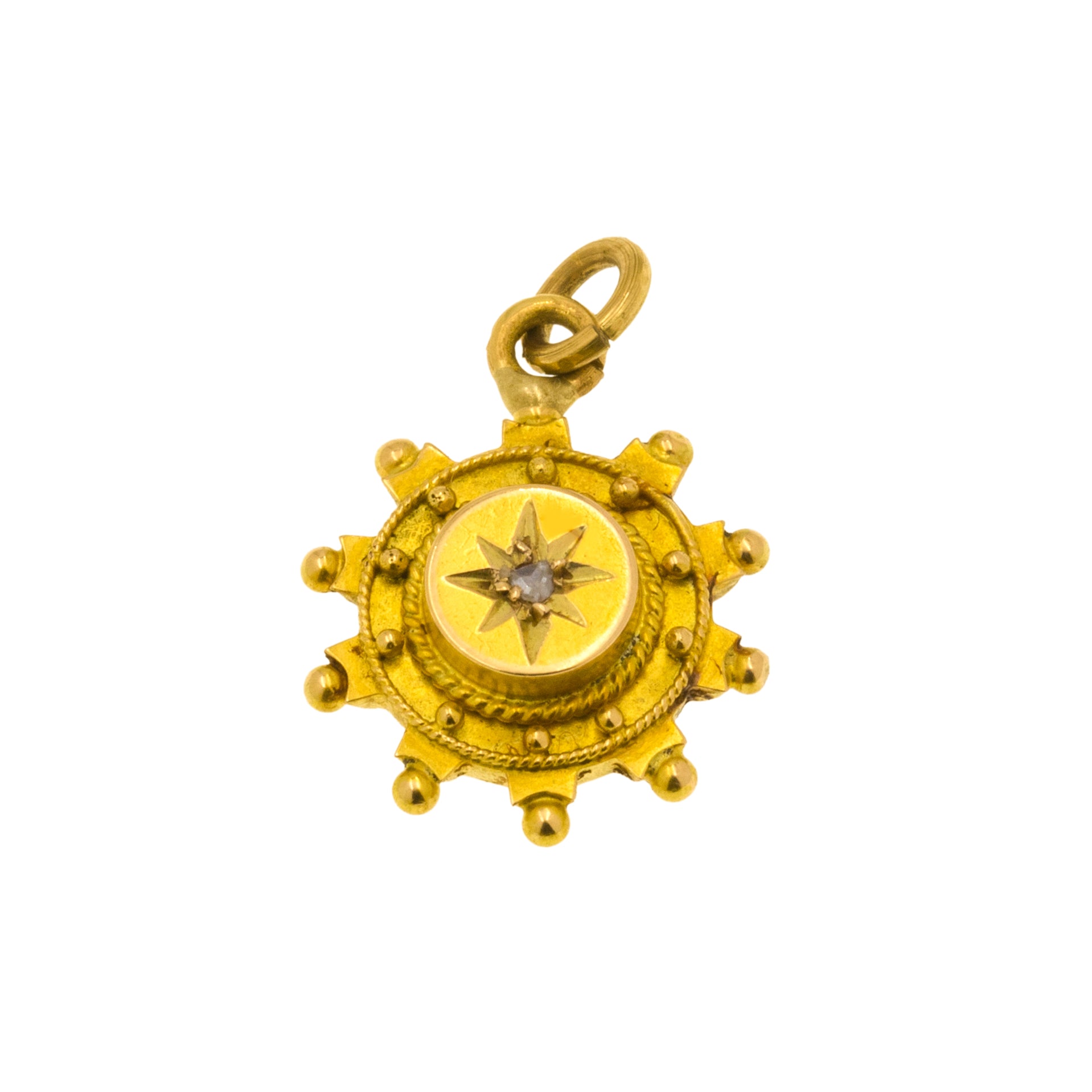Antique 15ct Gold Etruscan Round Diamond Charm
