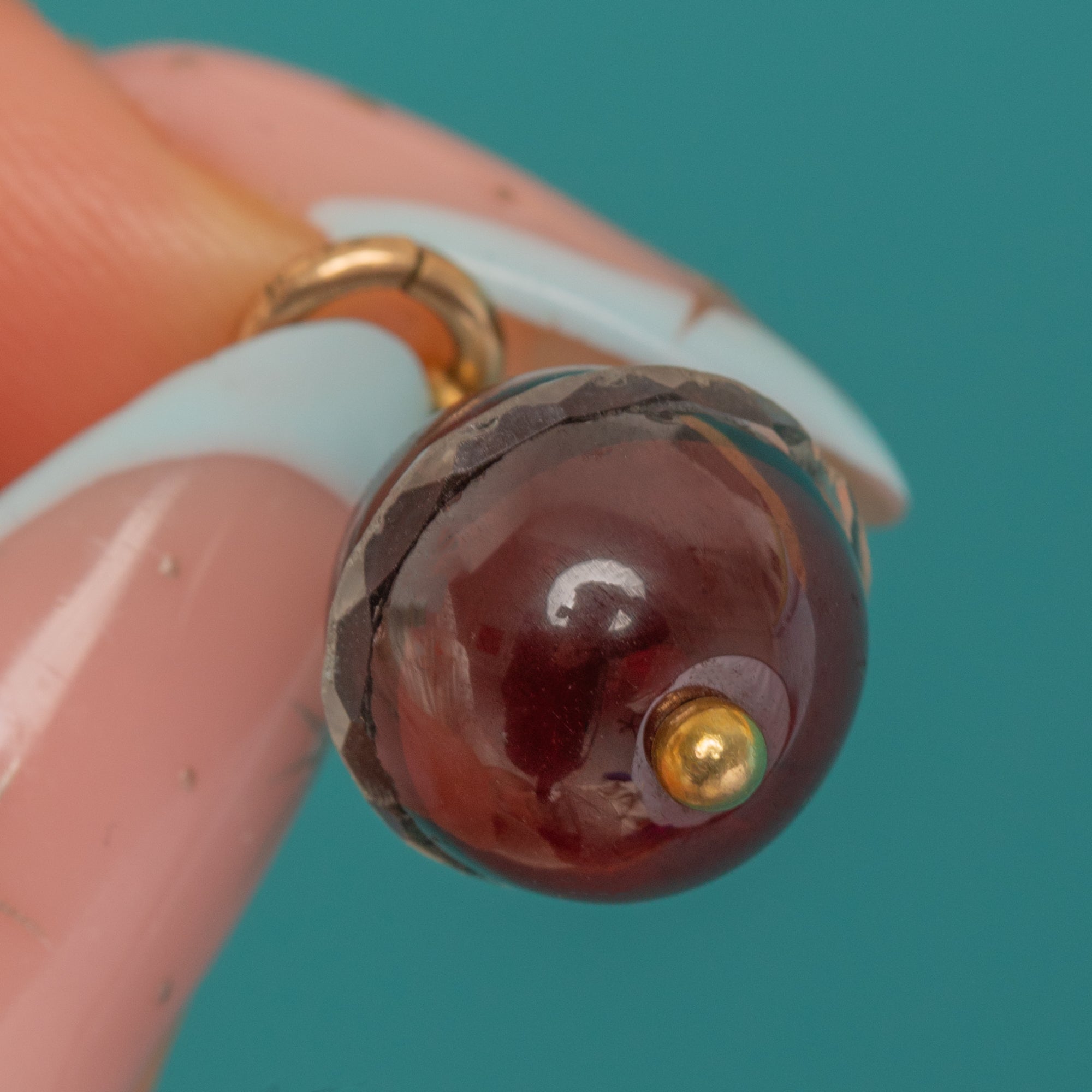 Antique 15ct Gold Garnet Rock Crystal Ball Charm