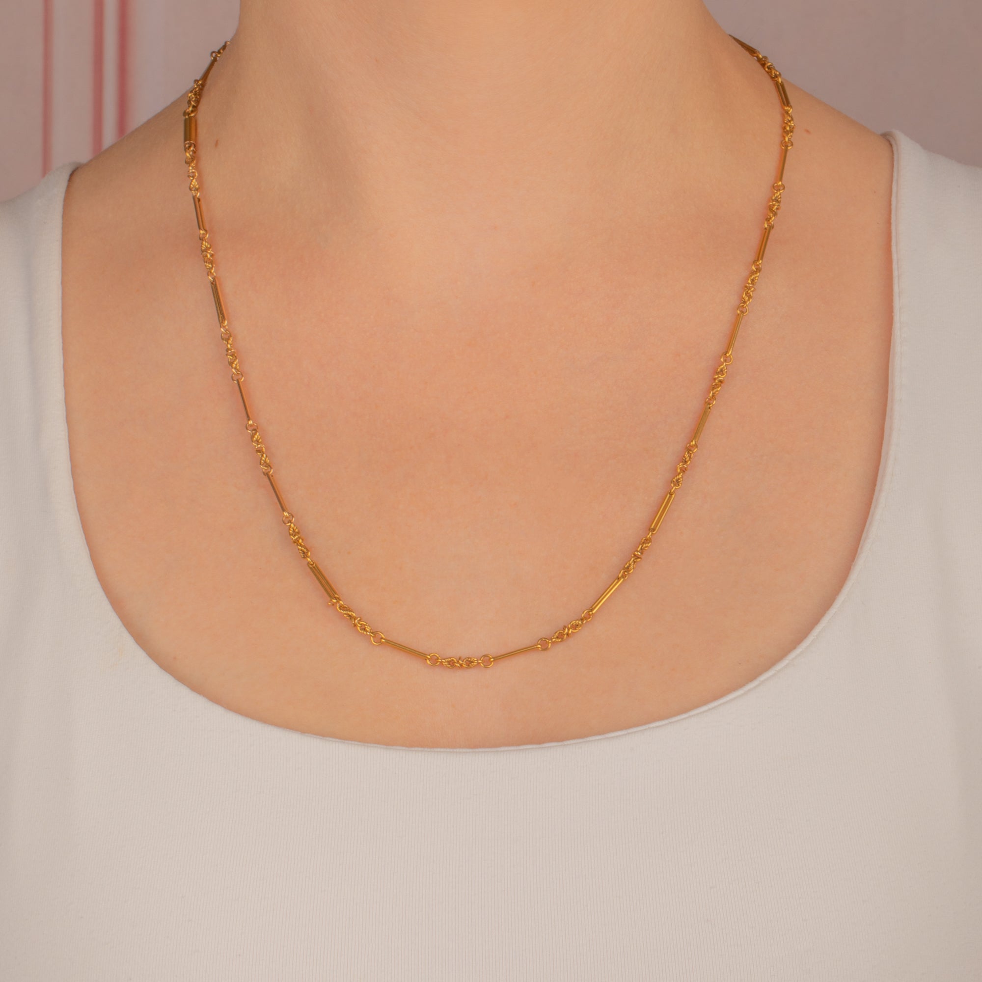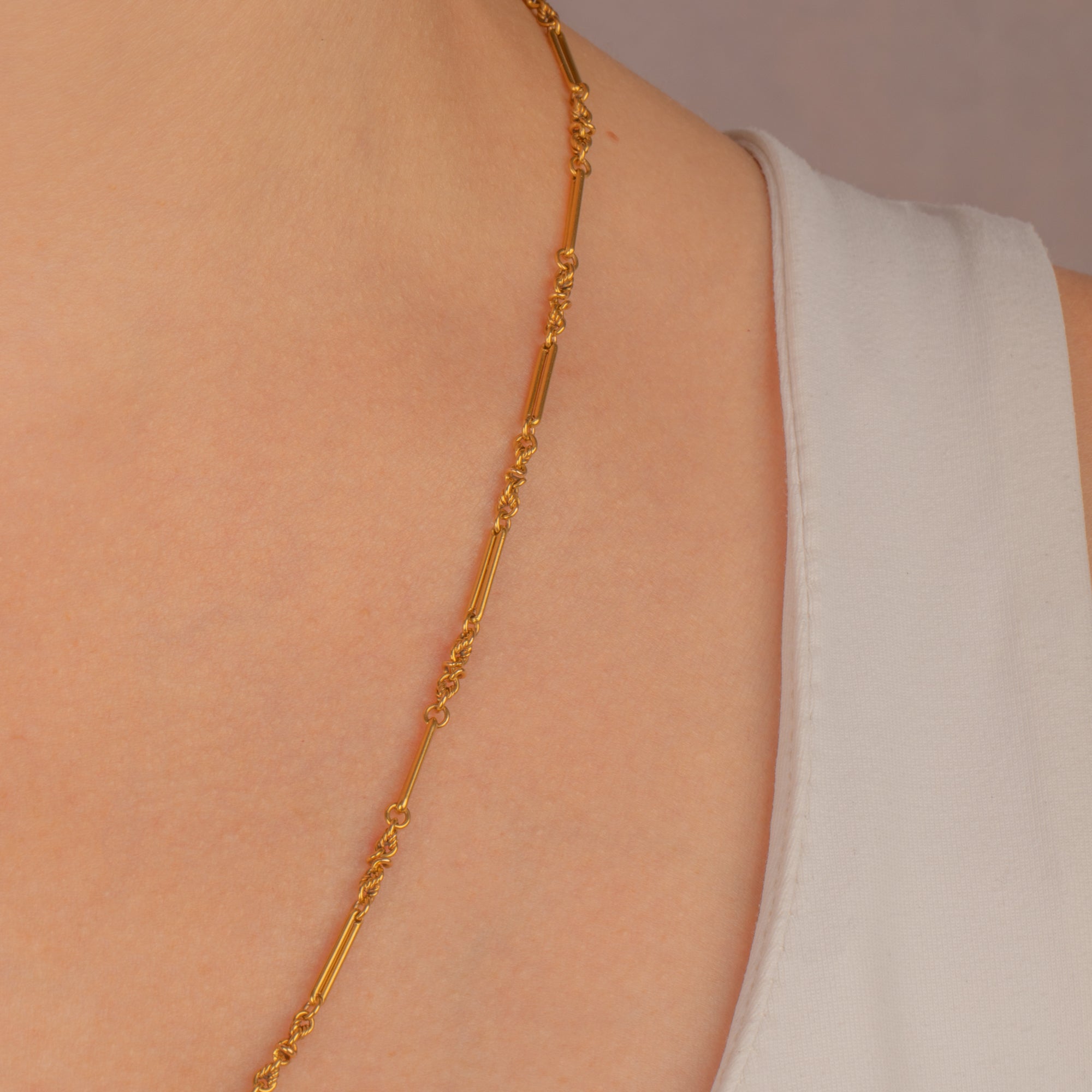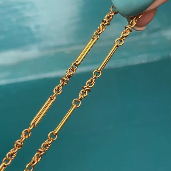 EXCELLENT This Antique 15ct Gold Lover's Knot Chain is in excellent condition. The links are strong and pristine, maintaining their original shape and elegance. The 15ct Gold retains its rich hue, making it a flattering choice for various complexions and skin tones.
