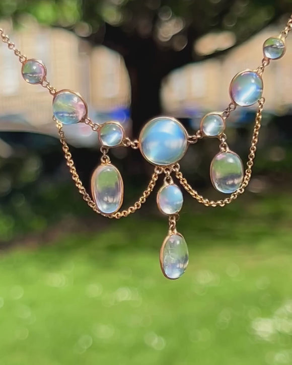 Antique 15ct Gold Moonstone Fringe Necklace, 10.55ct