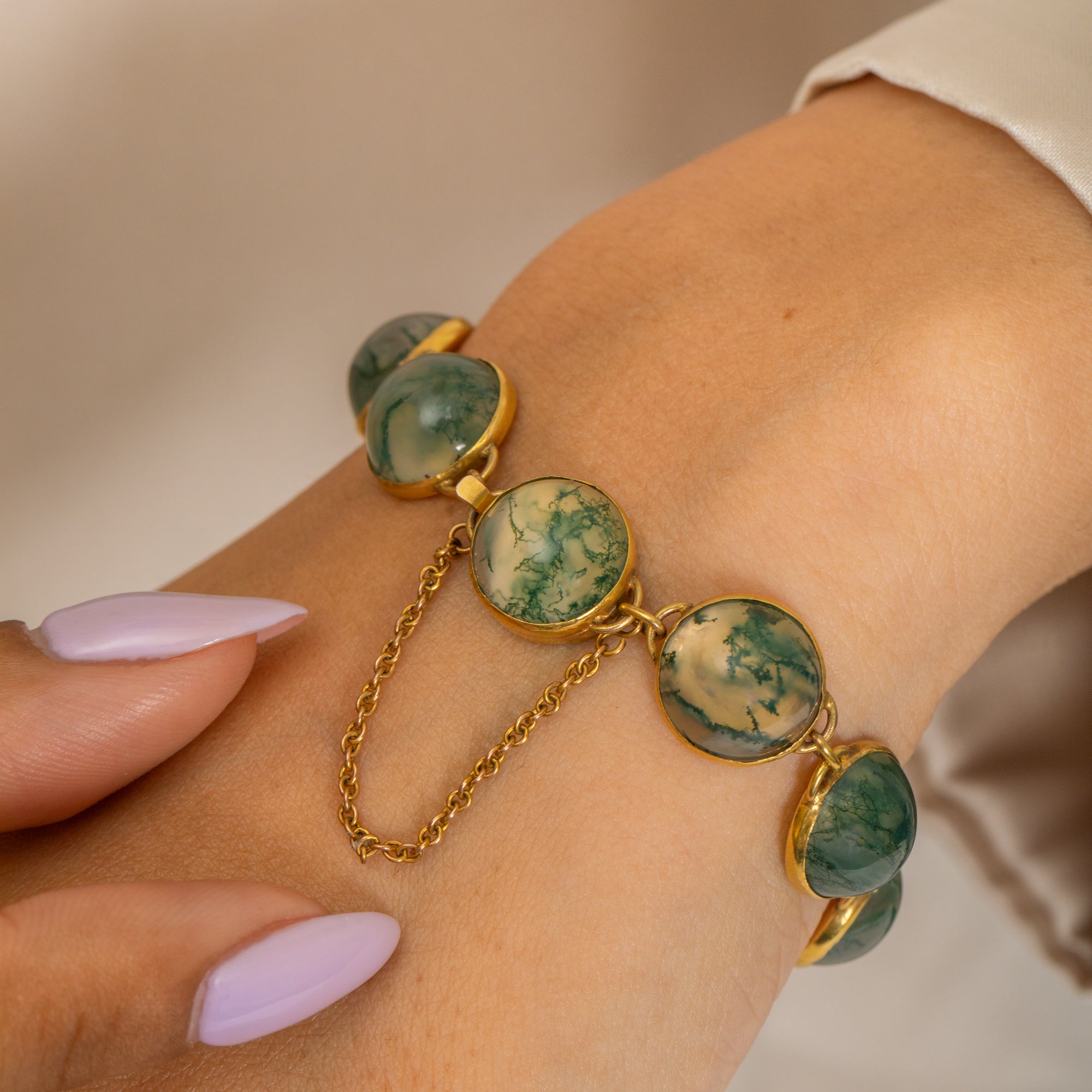 Antique 15ct Gold Moss Agate Bracelet, 34.30ct.