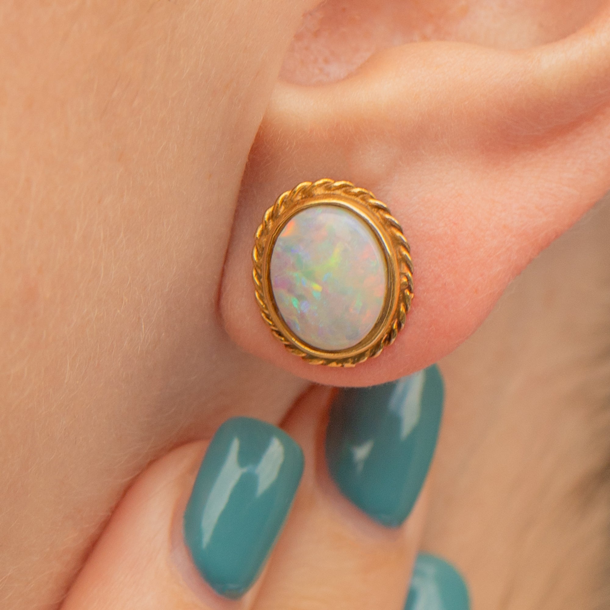 Light dances gracefully across each of the Opal's surfaces, creating a sublime vision of electric oranges, pastel blues, and glimmers of yellow. Put simply, these vintage Gold Opal earrings are a feast for the eyes!