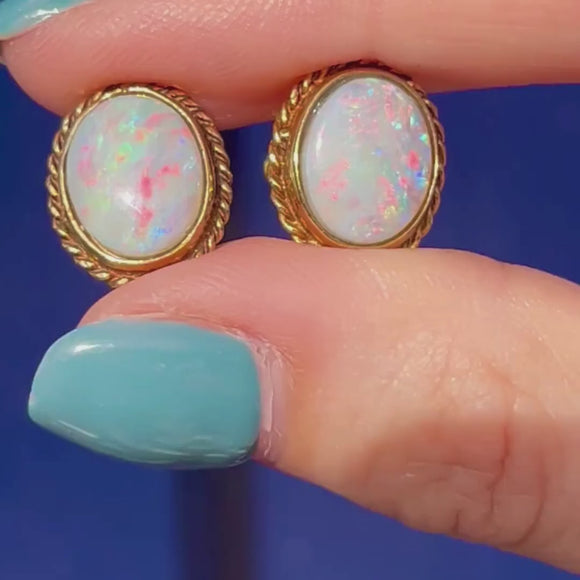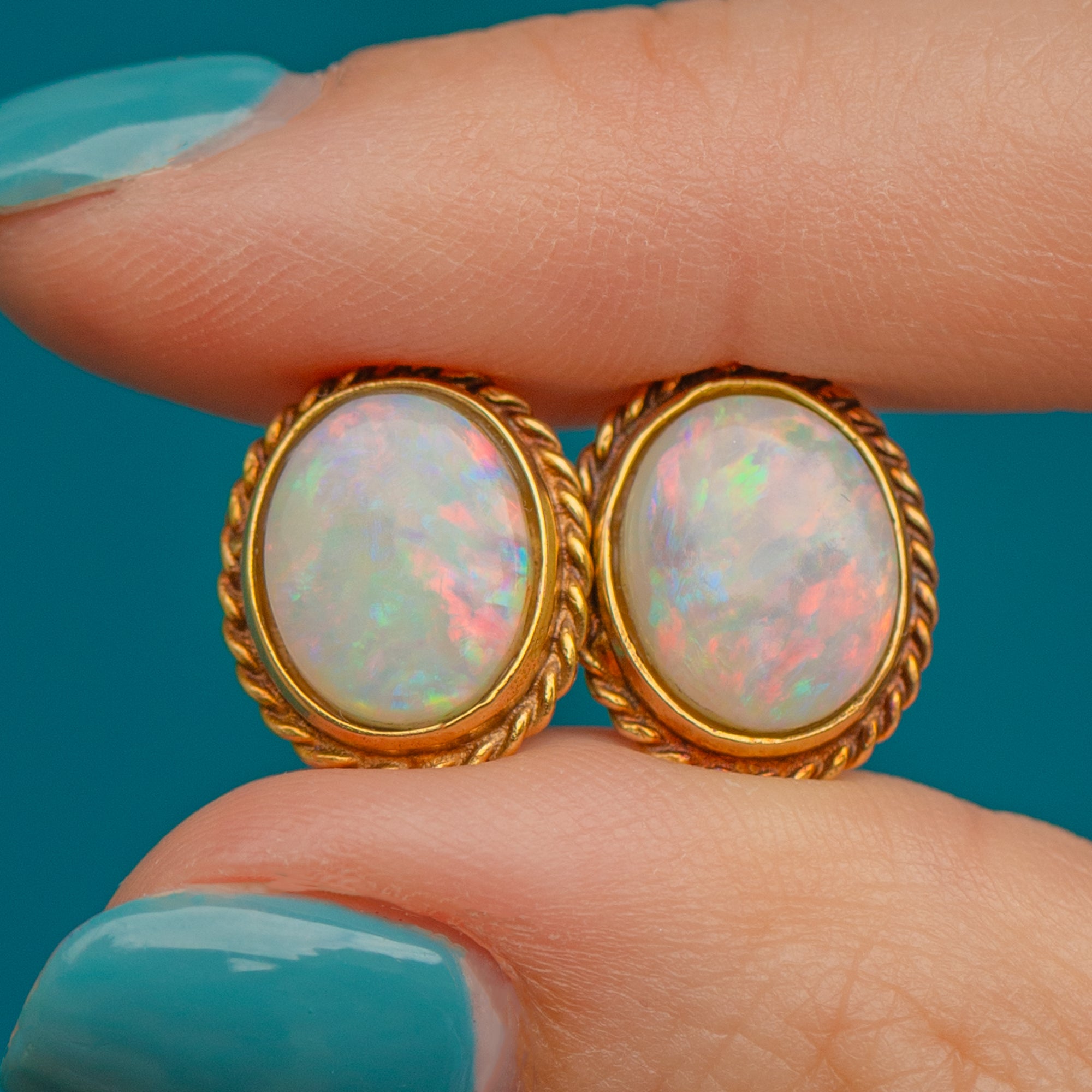 Opals are 10mm long x 8mm wide, approx 2.70ct combined.