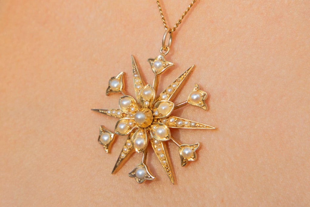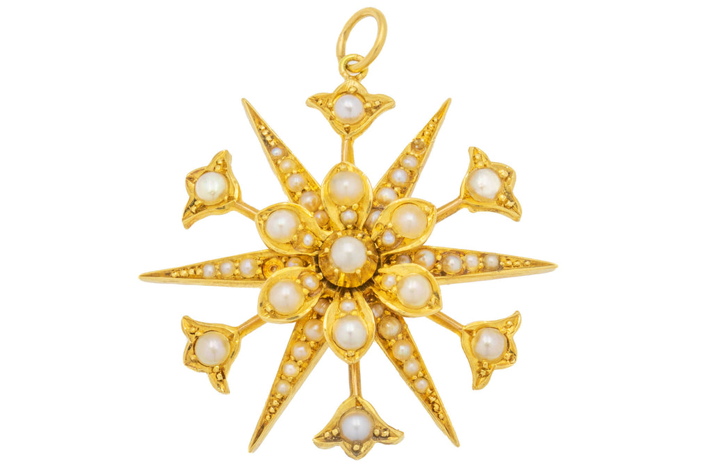 Antique 15ct Gold Pearl 'Starburst' Pendant