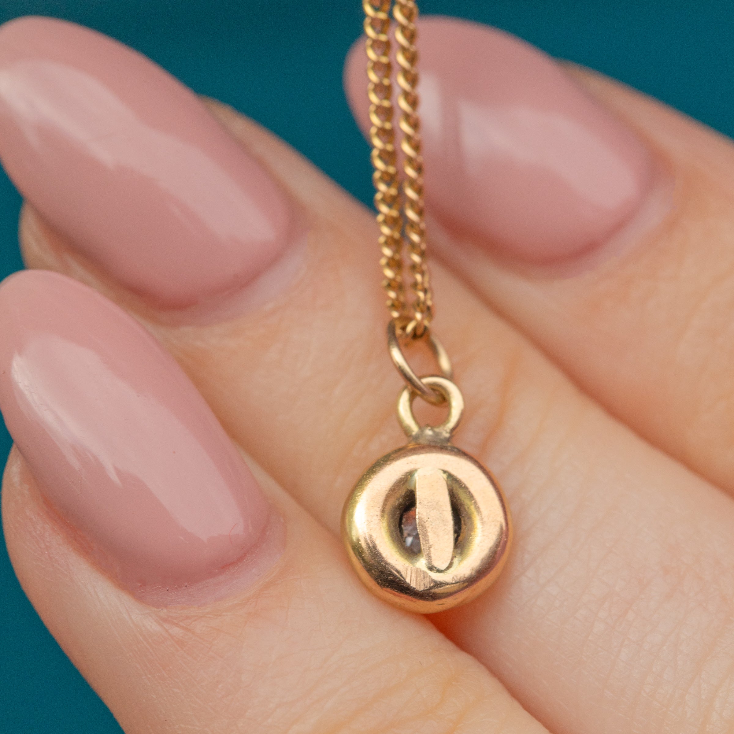 MATERIALS: Tests as 15ct Gold charm, 18ct Gold jump-ring, Diamond.