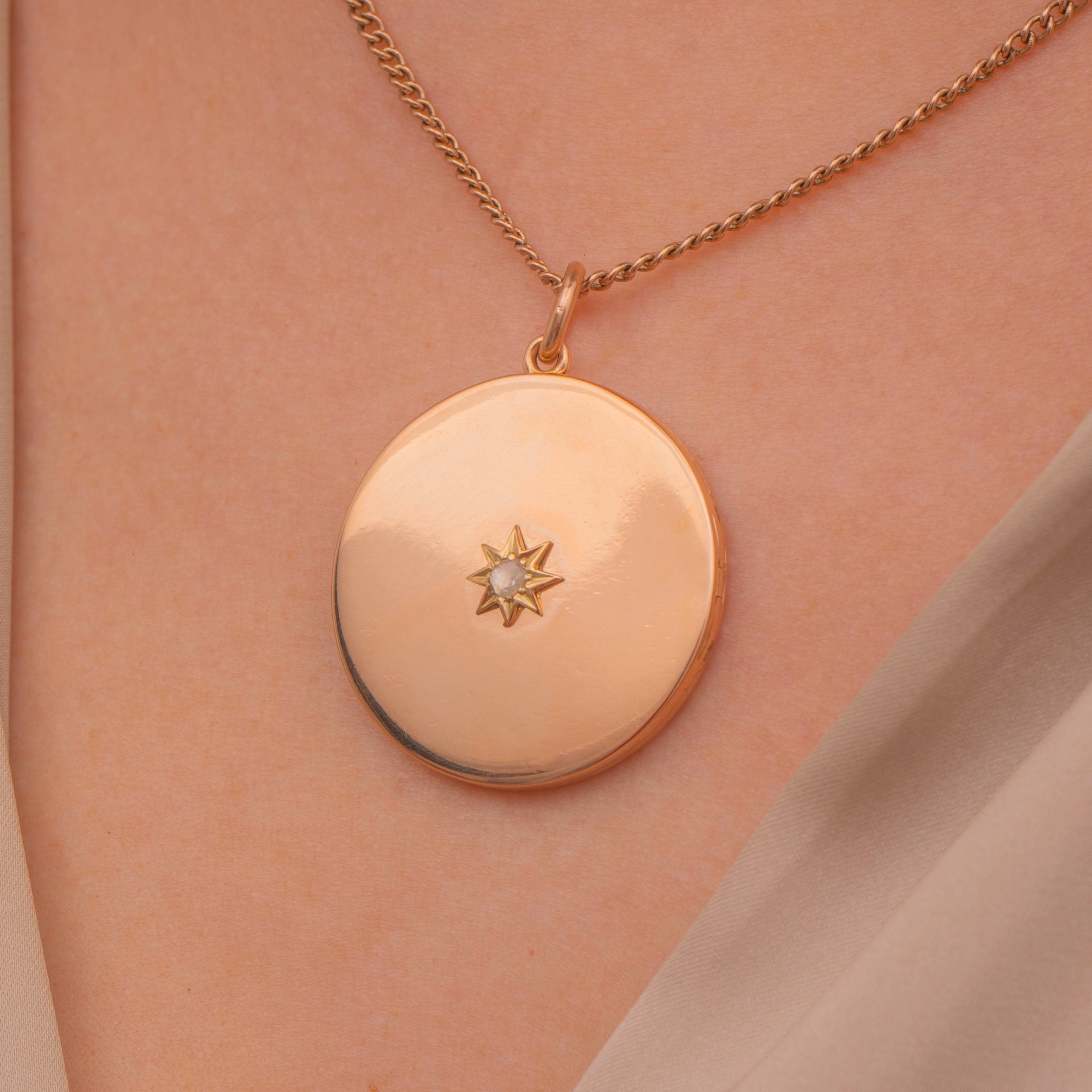 Antique 15ct Gold Round Locket with Diamond Star Centre