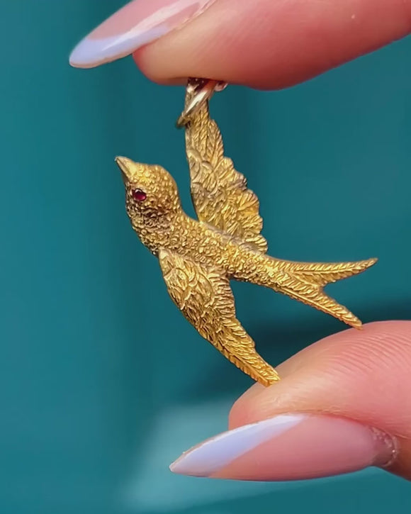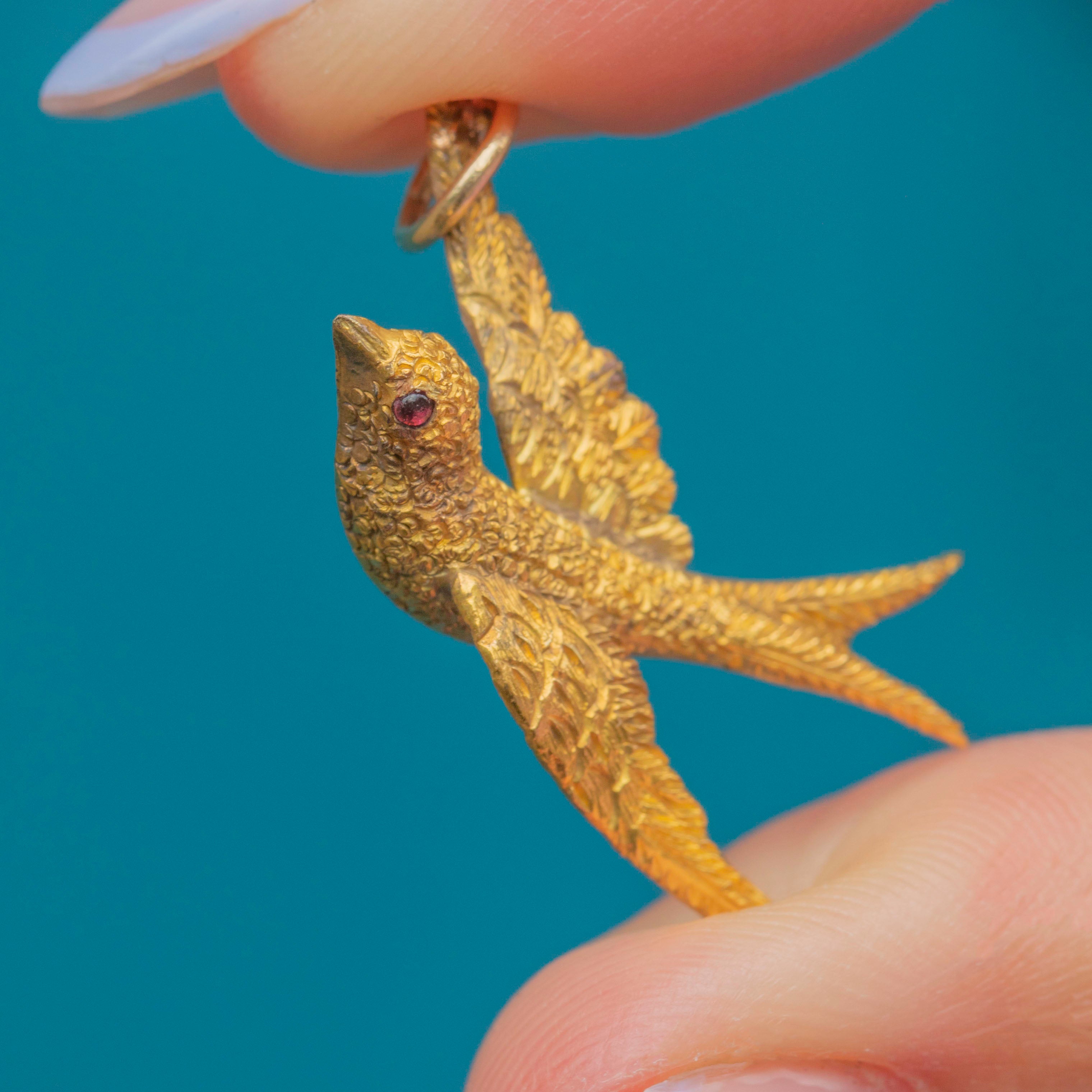 A quintessentially Victorian motif, this 15ct Gold swallow pendant radiates antique charm and is a must-have for your collection!
