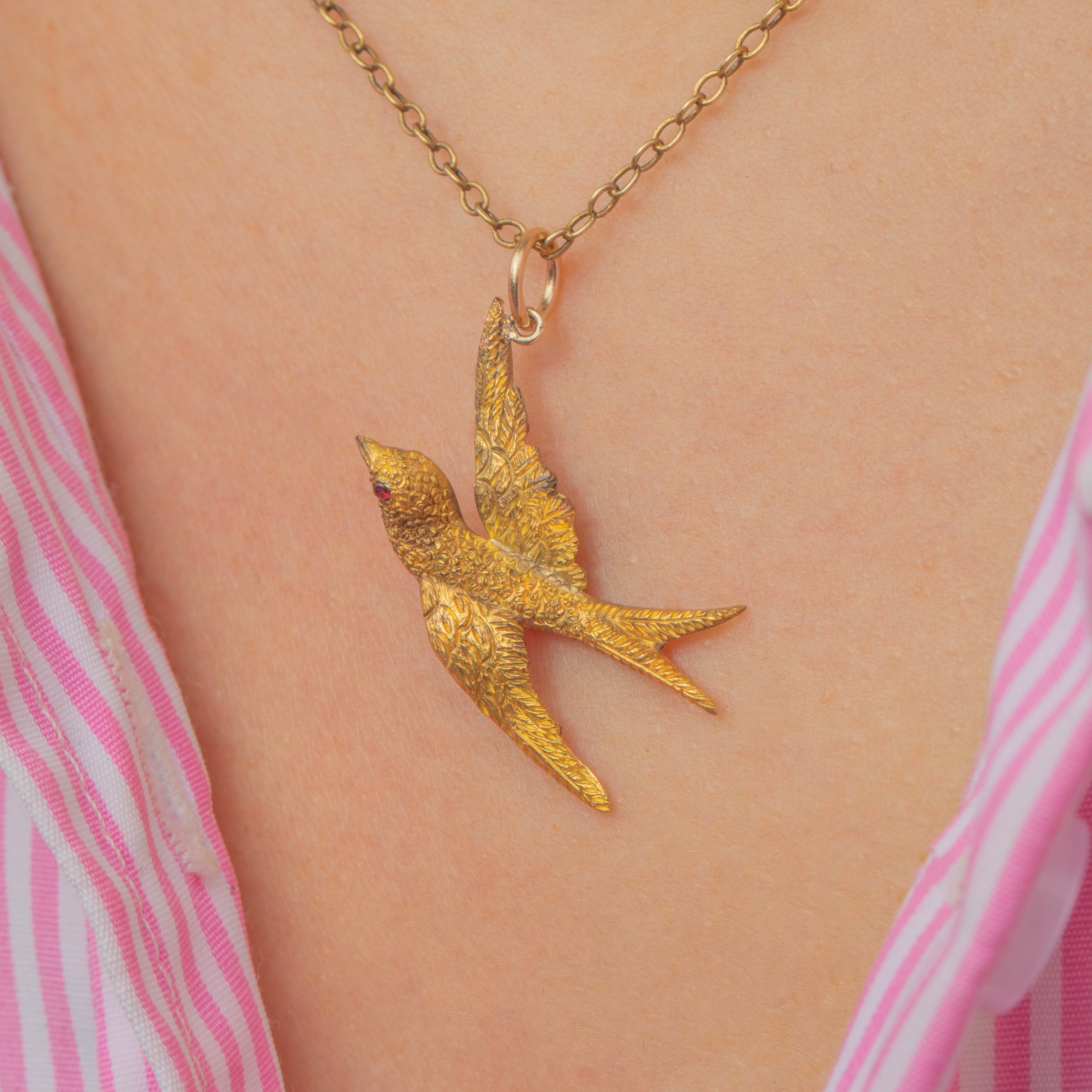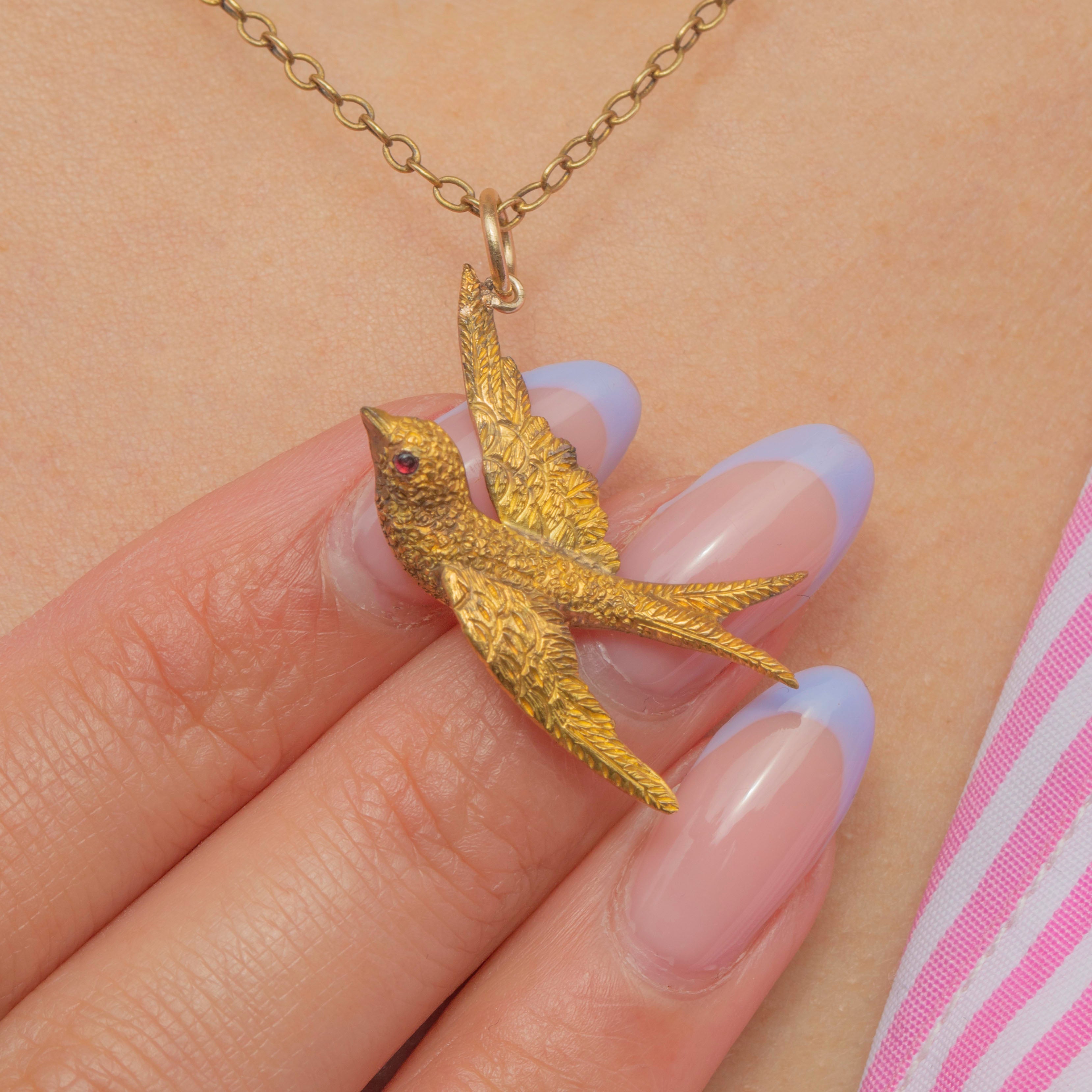 Add a touch of Victorian charm to your attire with this antique 15ct Gold swallow pendant!