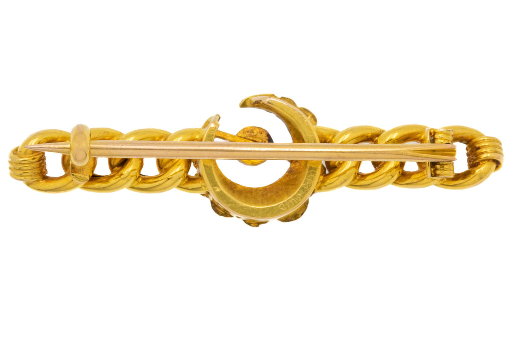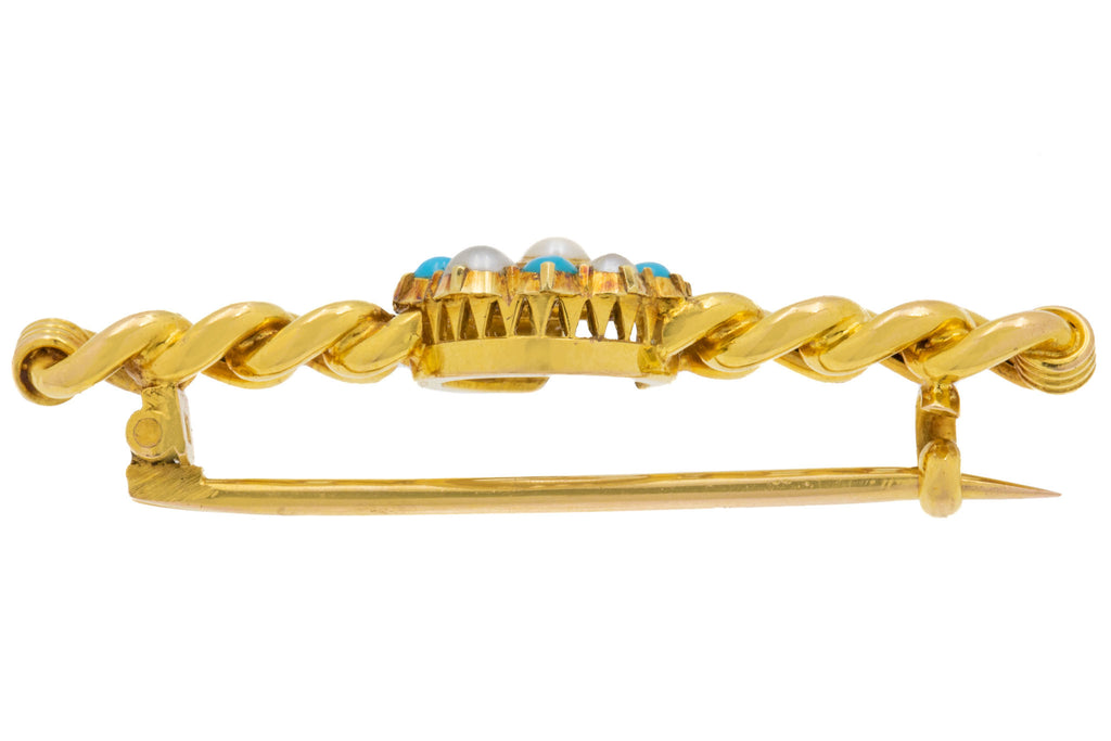 Antique 15ct Gold Turquoise Pearl Crescent Moon Bar Brooch