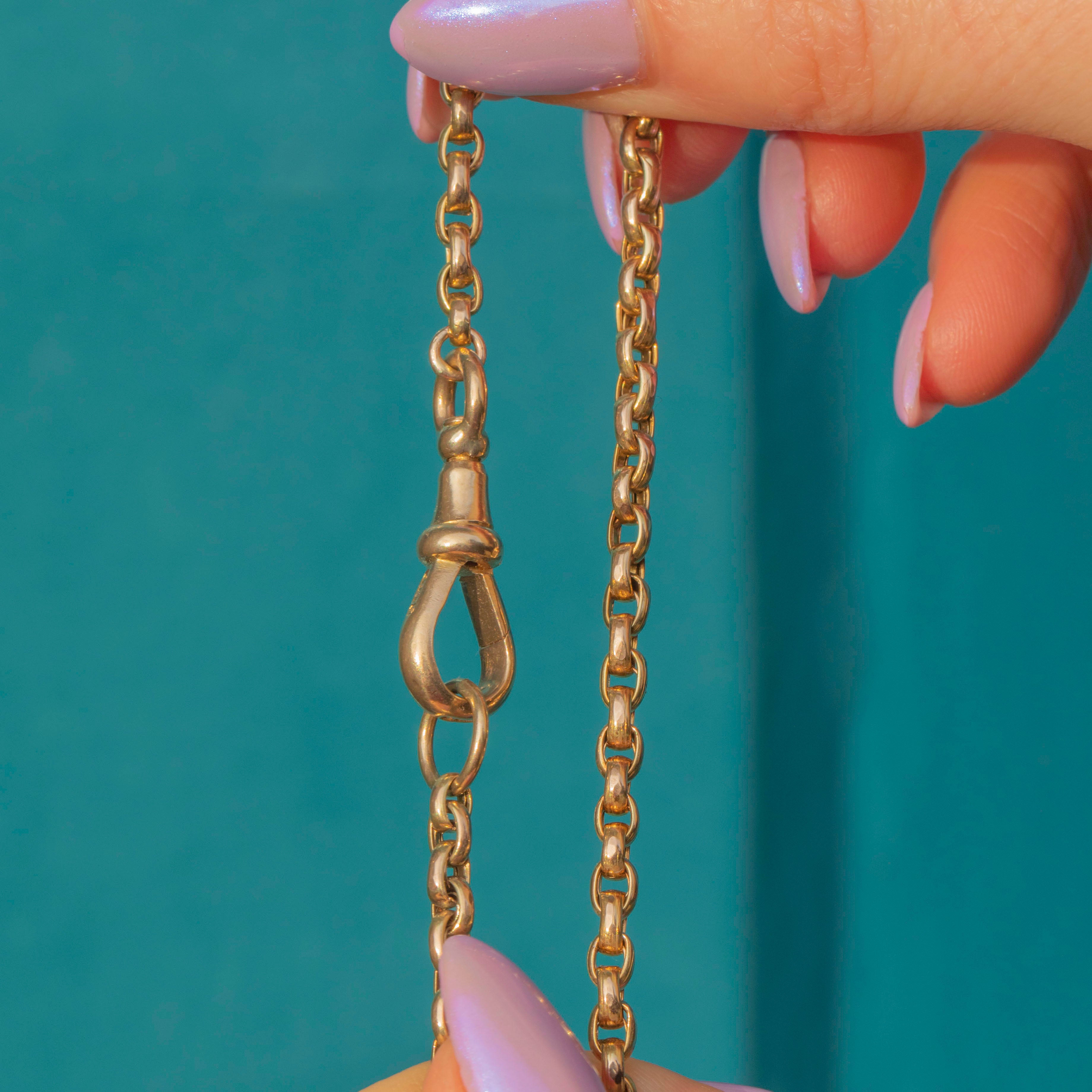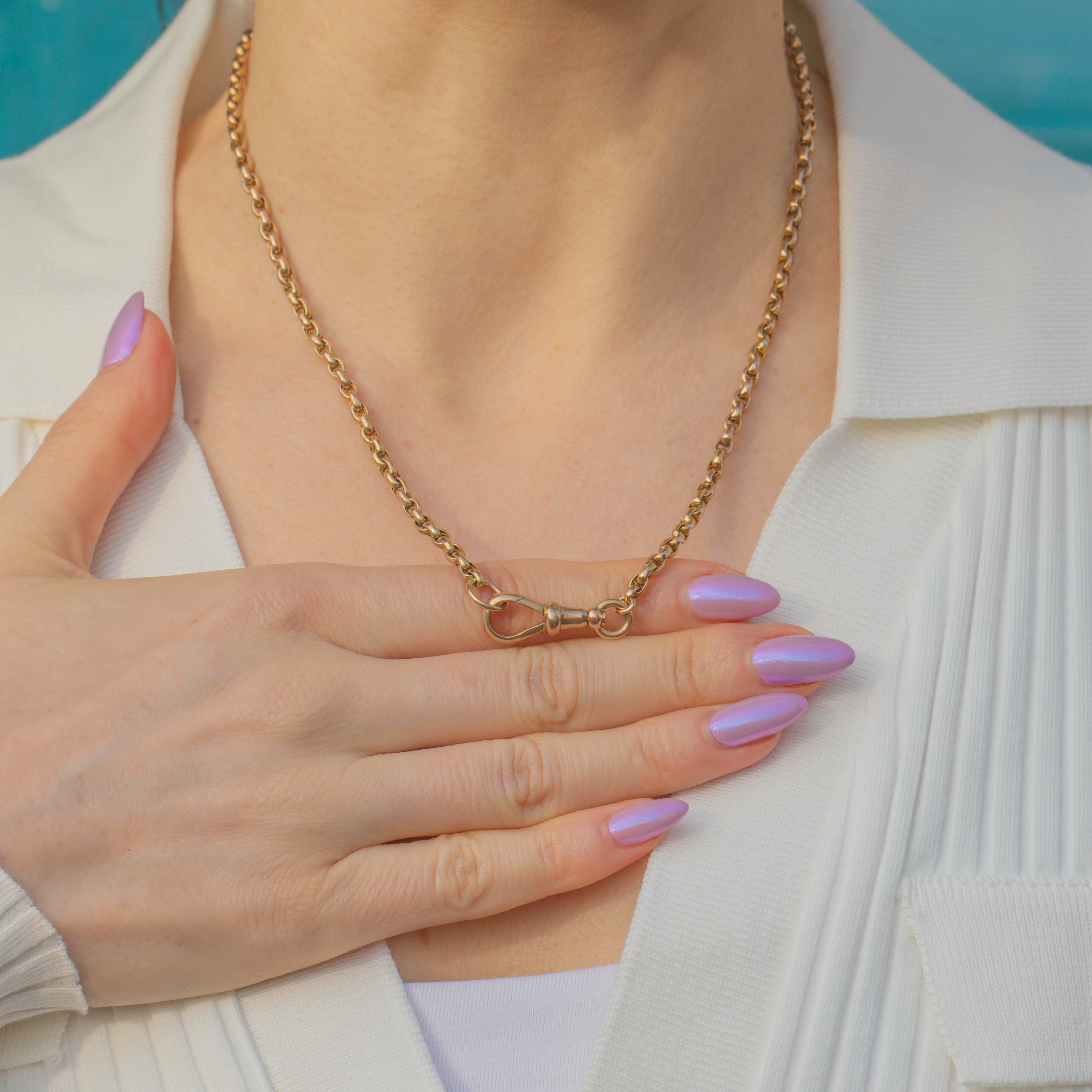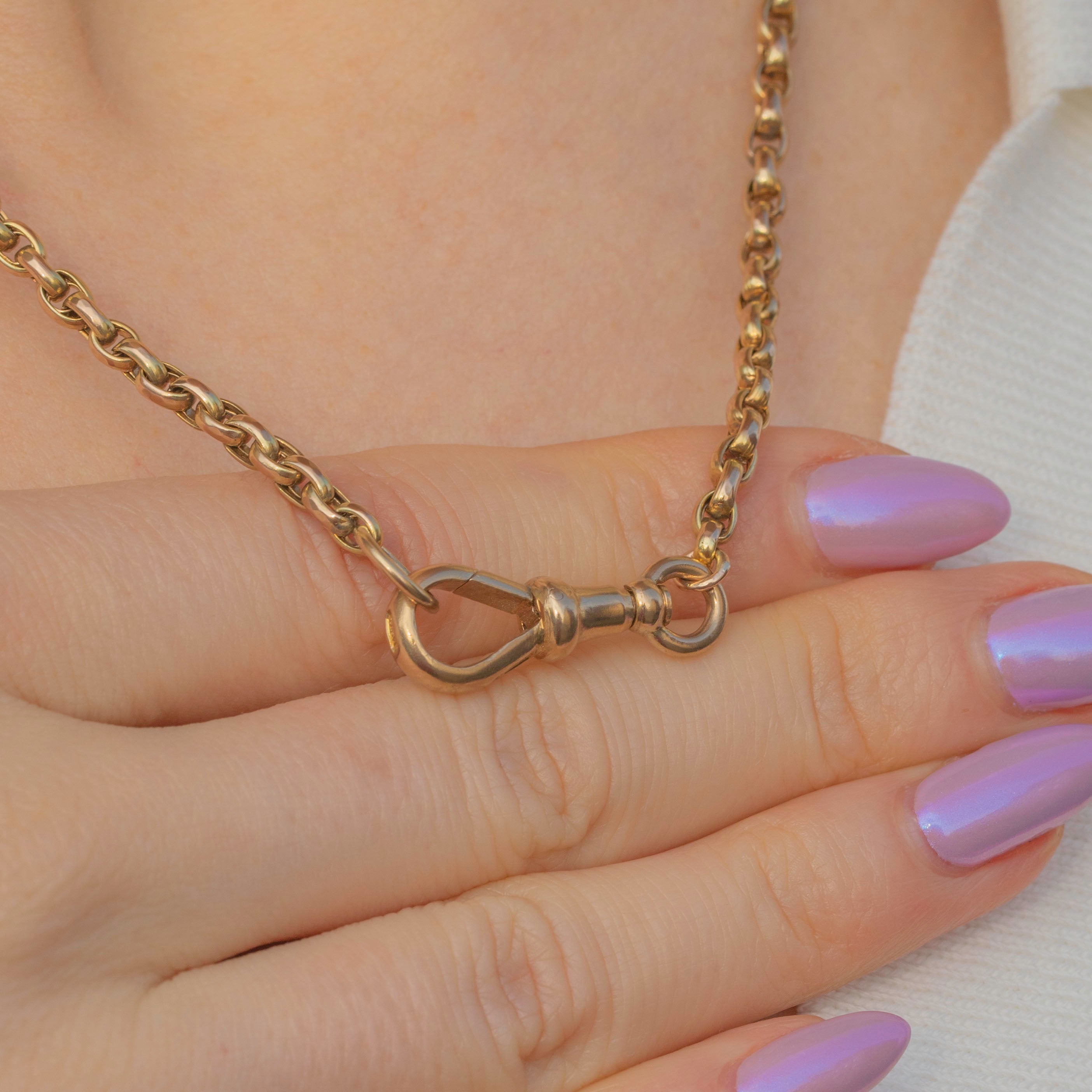 The smooth belcher links are crafted from richly saturated 9ct Gold, and comes complete with a large dog-clip - a highly sought-after feature that adds to her antique charm and allows for a charm or pendant to be added for a personal touch.