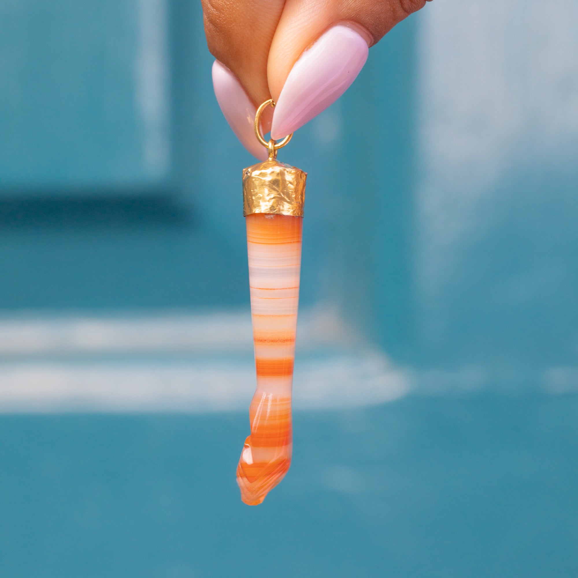 Isn't this antique 18ct Gold Agate Figa lucky pendant a powerful pick?! Her Agate flaunts streaks of peach across the milky pink core and has been carved to perfection to form the Figa motif, known for representing good luck.
