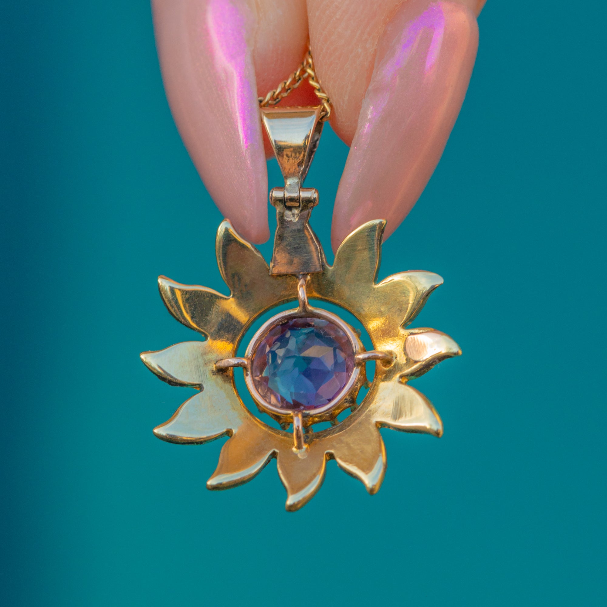 This antique 18ct Gold Amethyst flower pendant a lovely little gem!