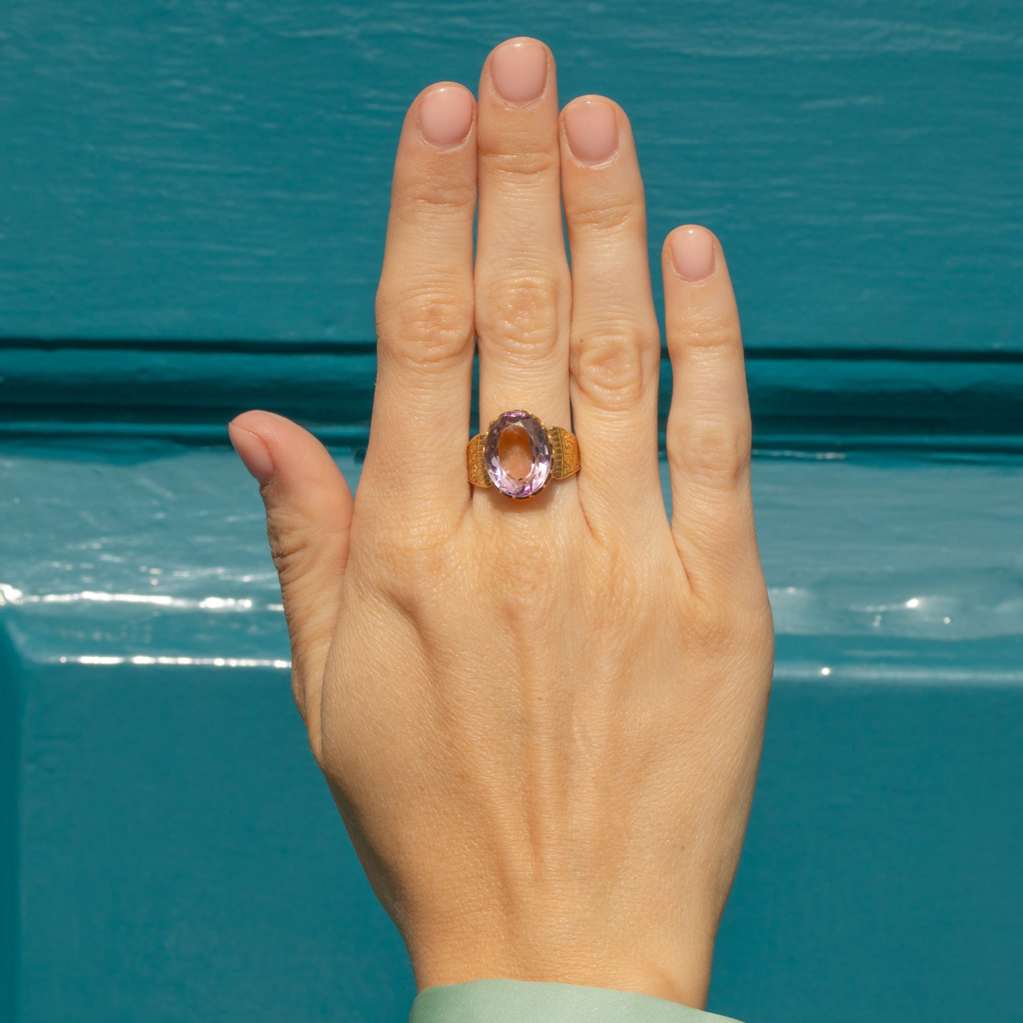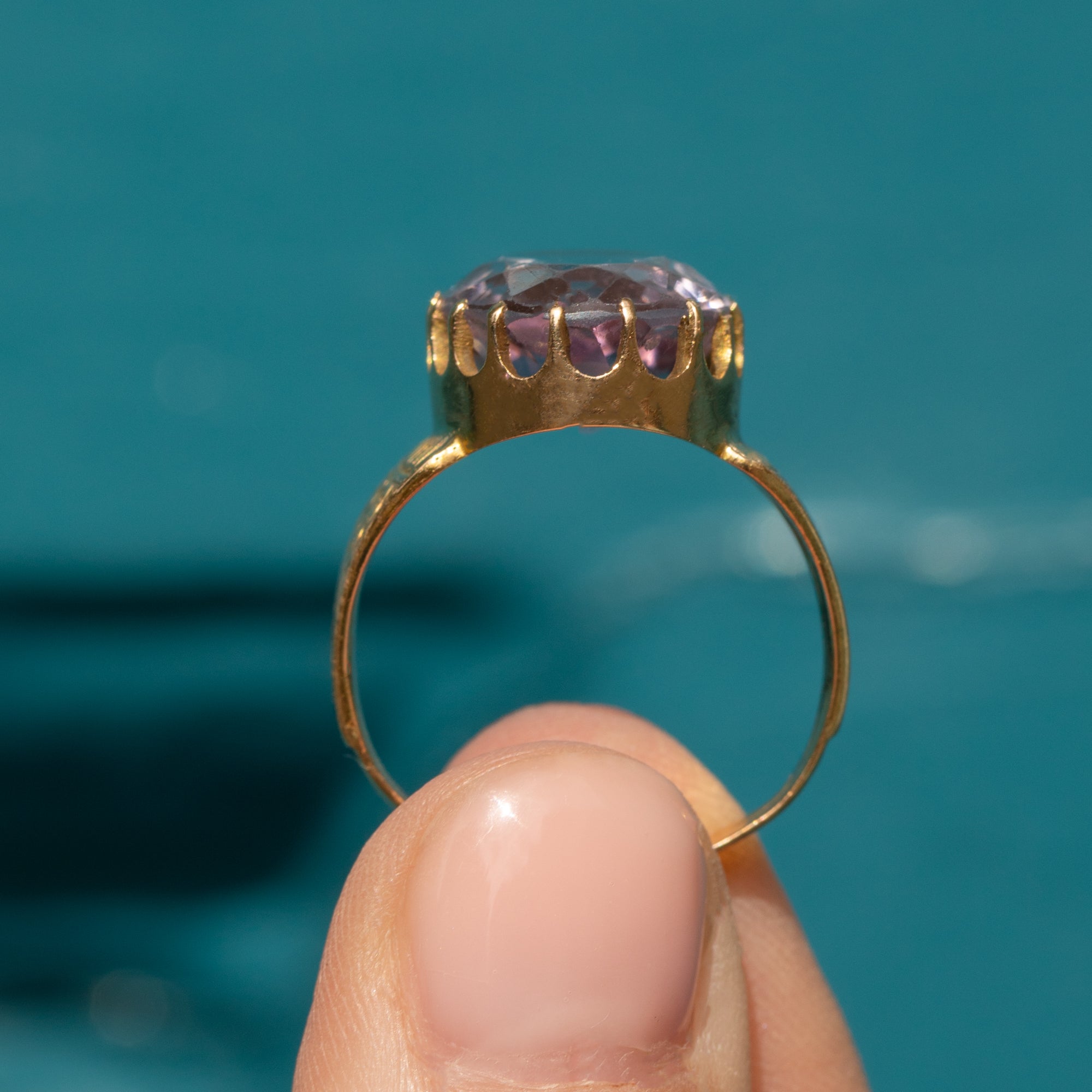 The 5.22ct Amethyst has a soft lavender hue that thrives in the light, complementing her 18ct Gold band exquisitely. Perfect for wearing solo or as part of a statement stack, this Victorian Amethyst ring will become your newest obsession!