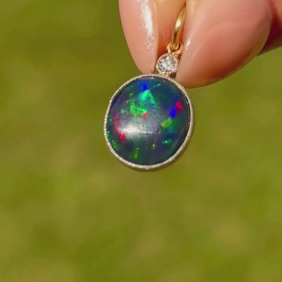 Antique 18ct Gold Black Opal Diamond Charm, 2.20ct Black opal