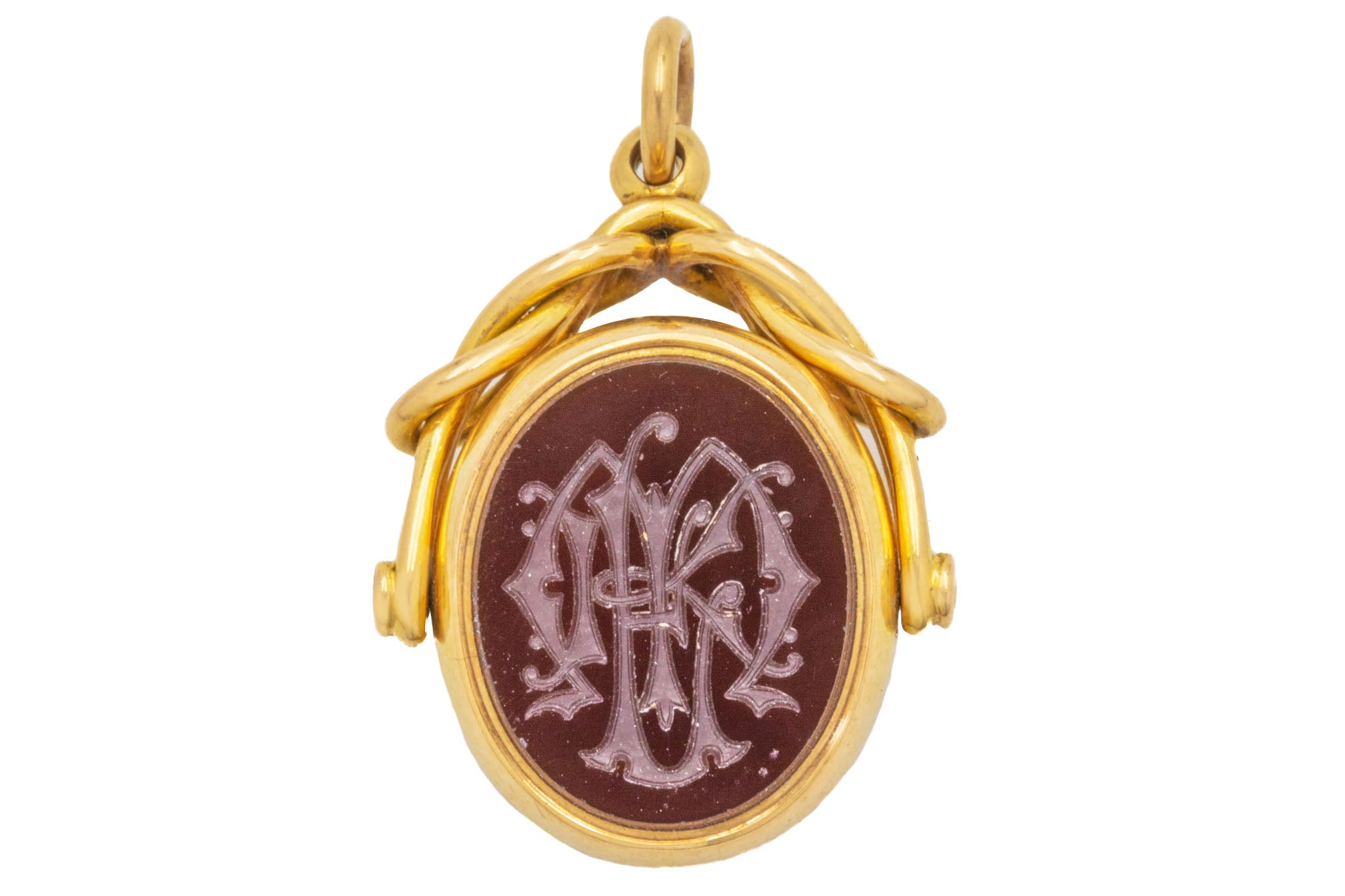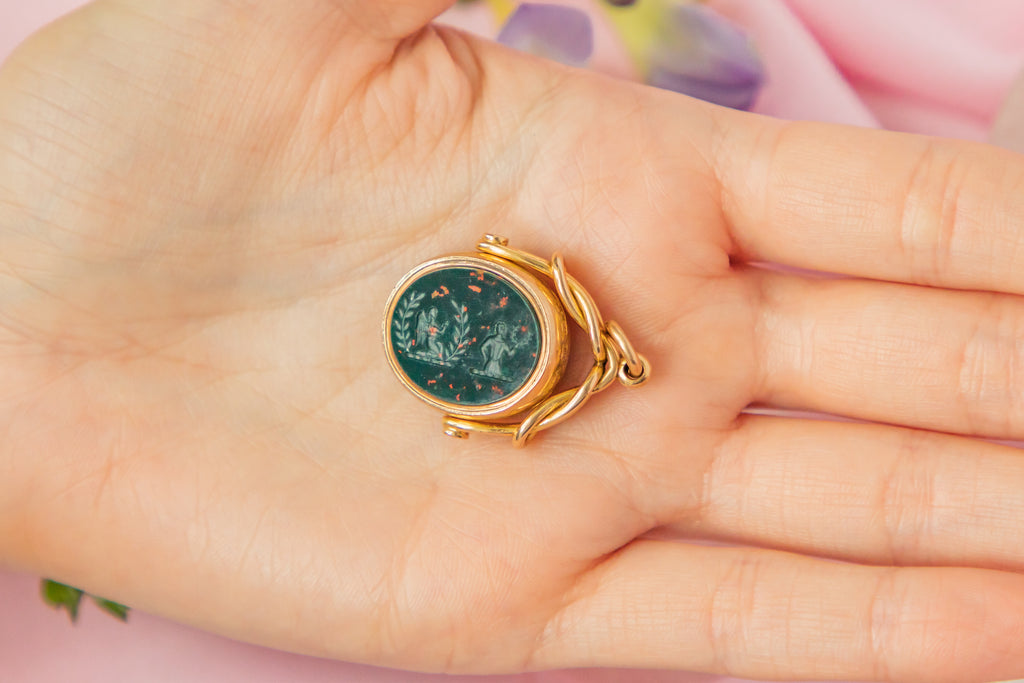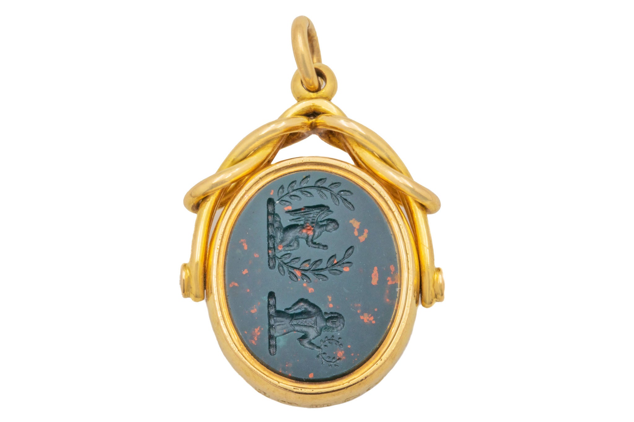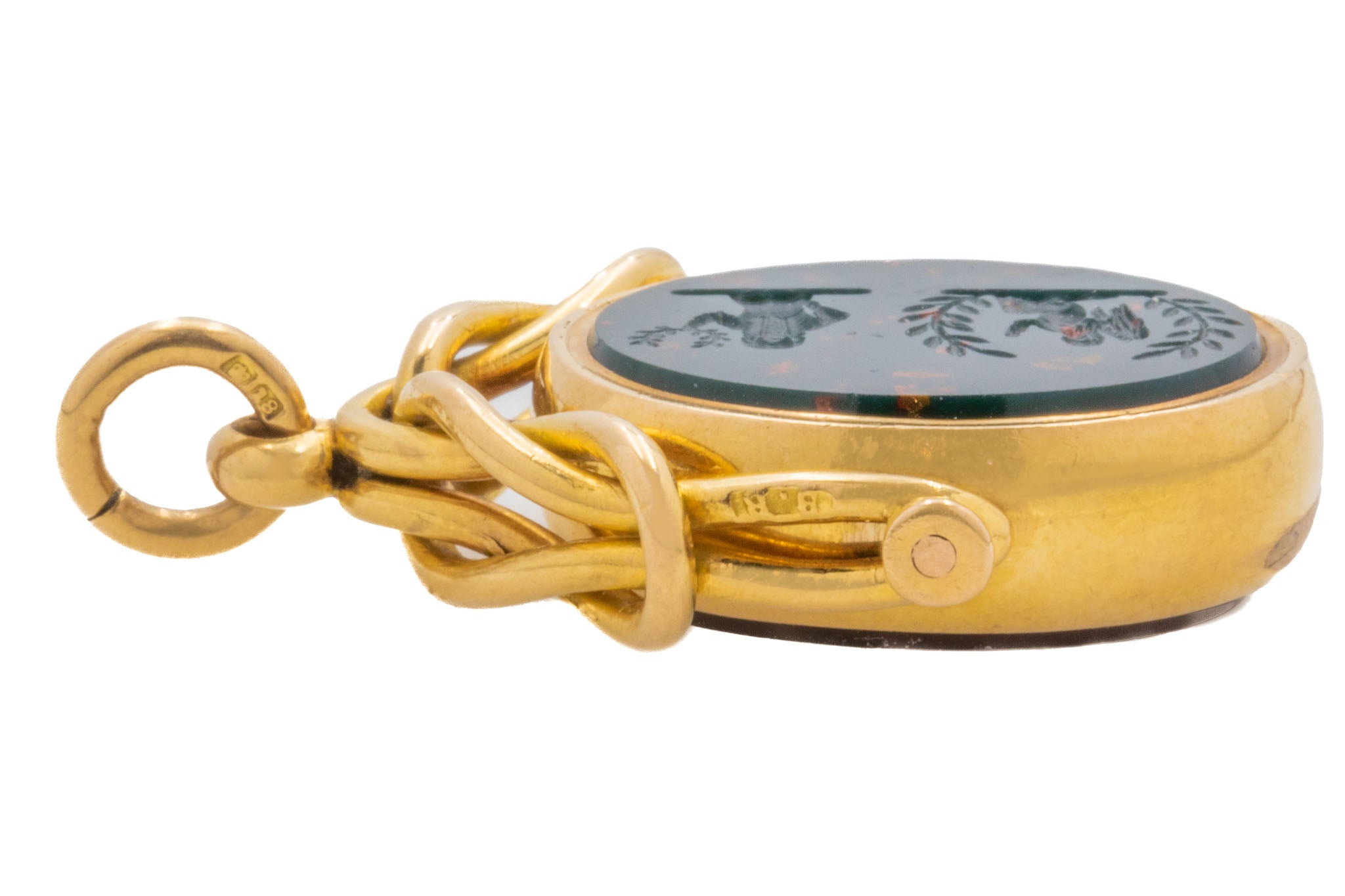 Antique 18ct Gold Bloodstone Carnelian Intaglio Fob Pendant