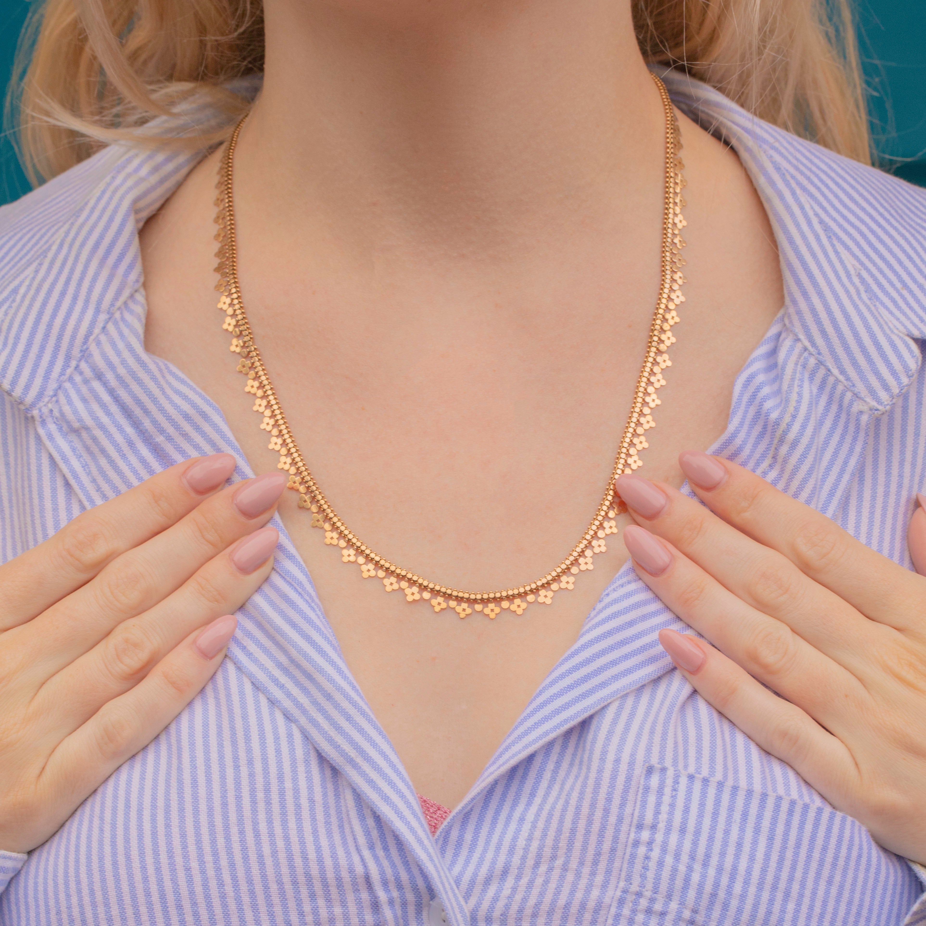 20.5” Antique 18ct Gold Clover Fringe Necklace, 20.7g