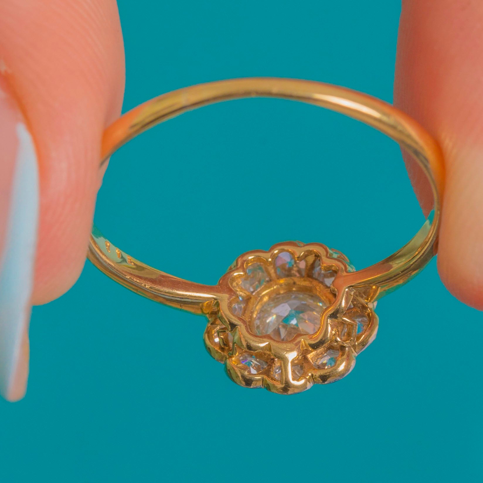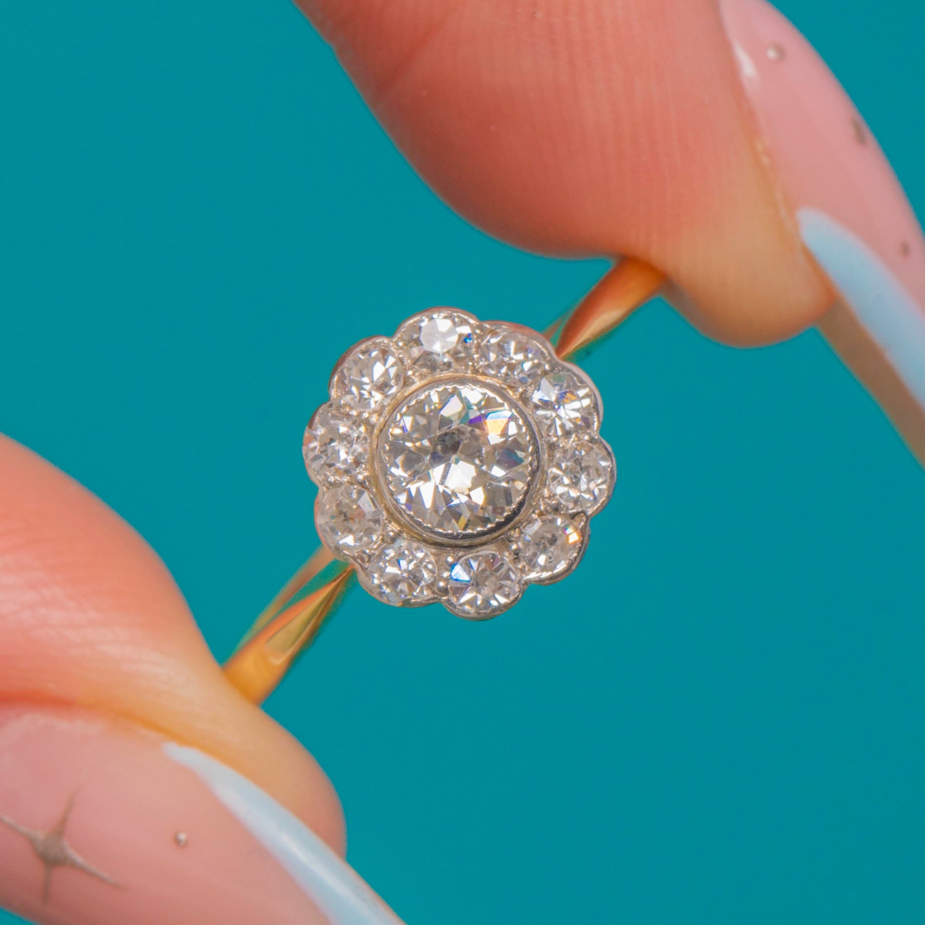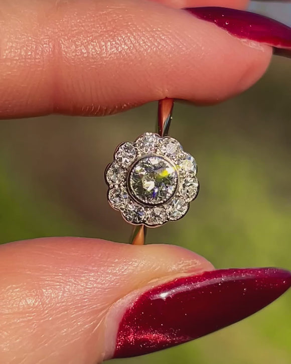 Antique 18ct Gold Diamond Daisy Cluster Engagement Ring - 0.25ct Central Diamond Item added