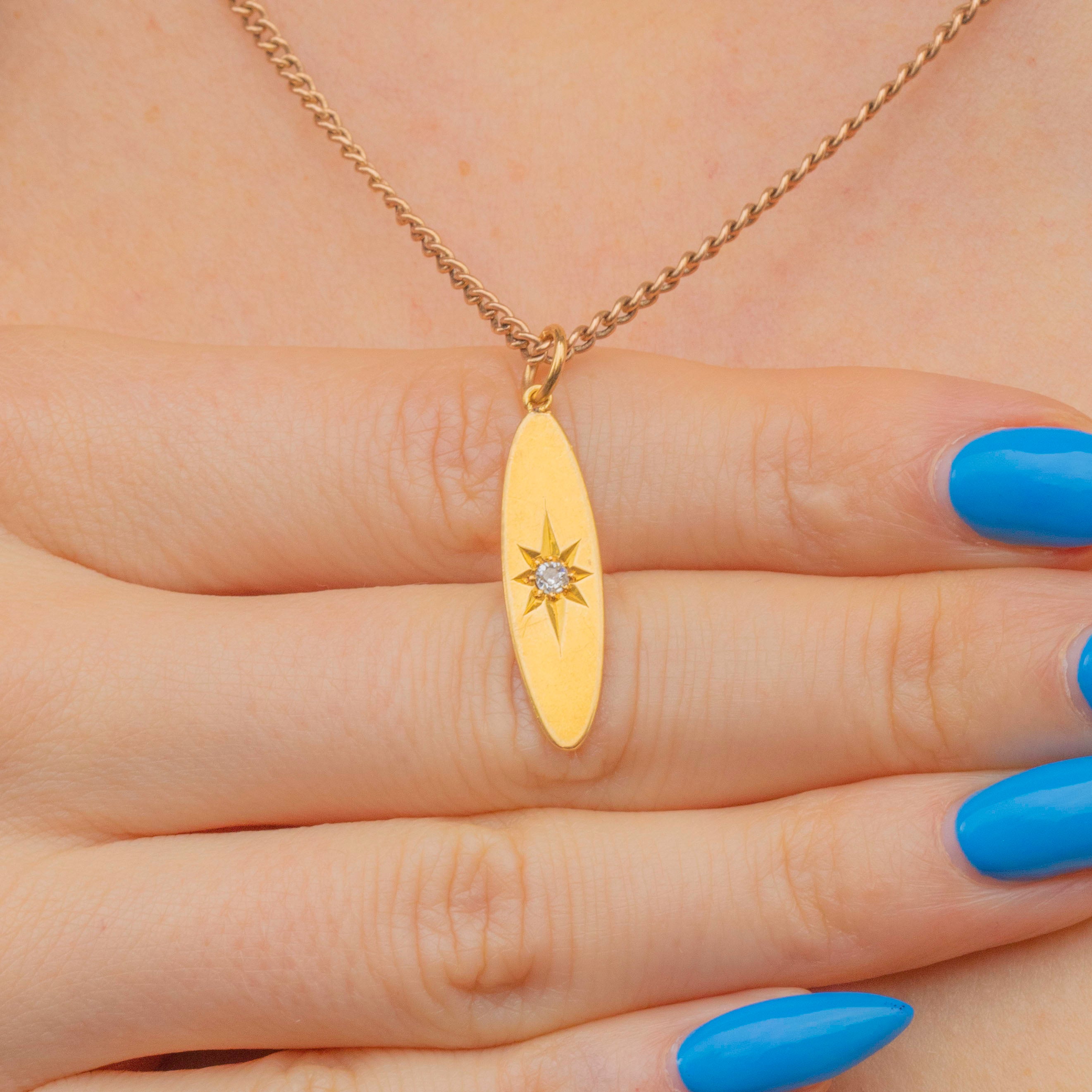 With a celestial spin, a glistening Diamond lies nestled within a gorgeous star setting, crafted entirely from sumptuous 18ct Gold. An adorable piece, this Victorian Diamond pendant is set to become your next everyday essential.