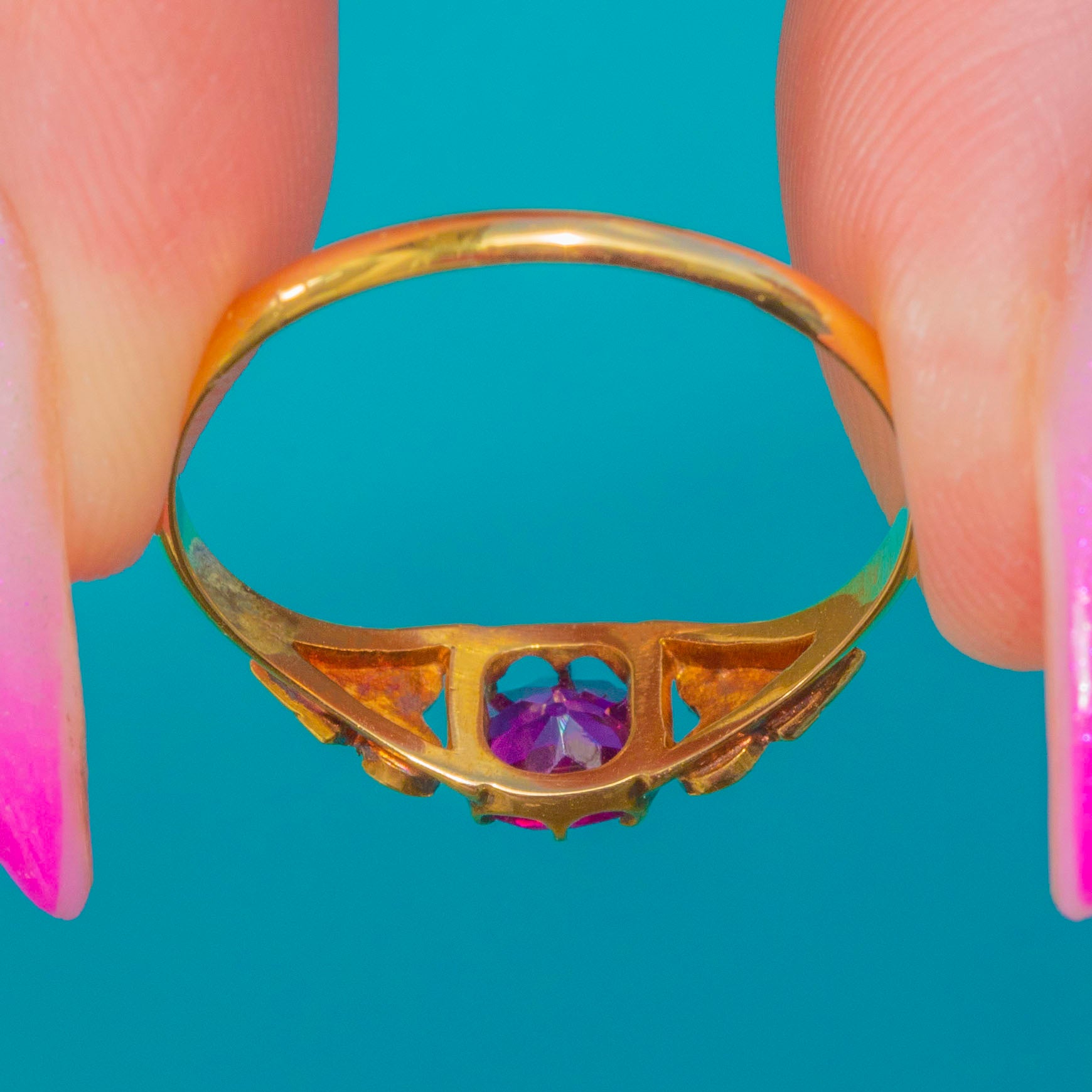 Antique 18ct Gold Pink Garnet Pearl Trefoil Ring