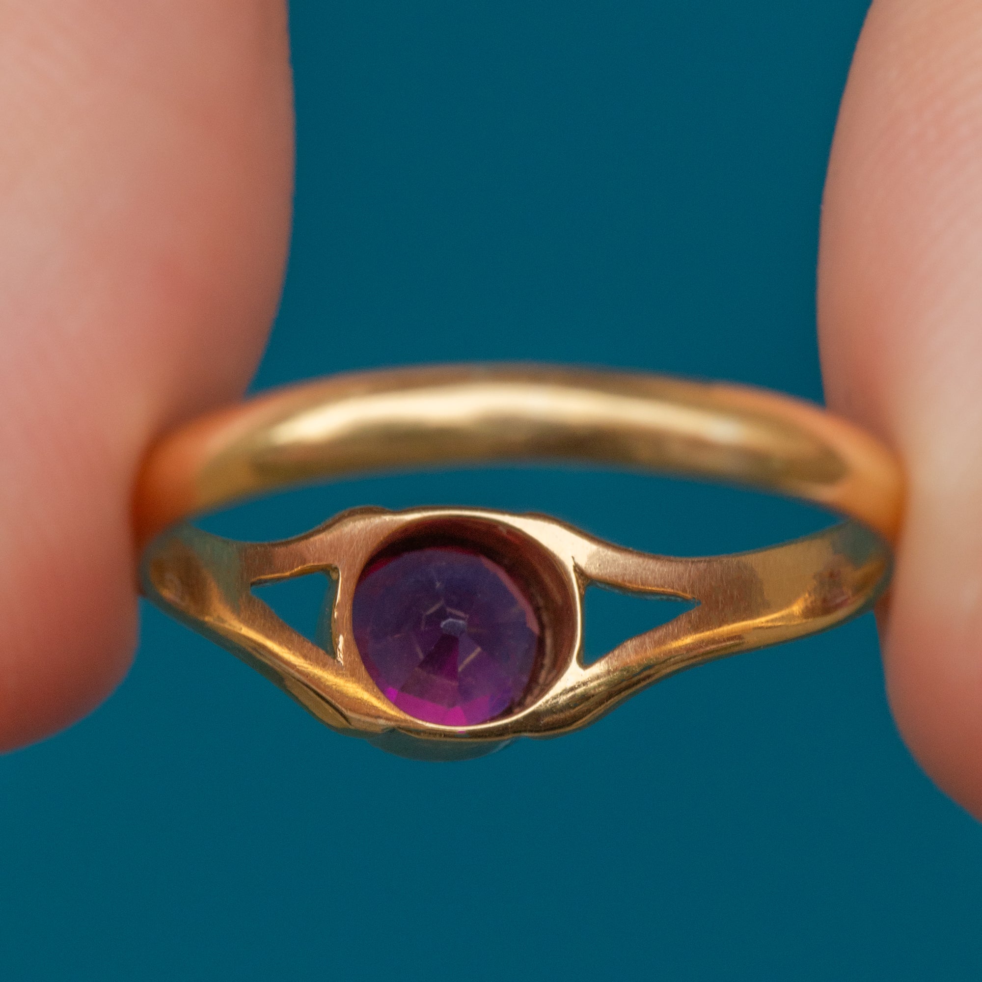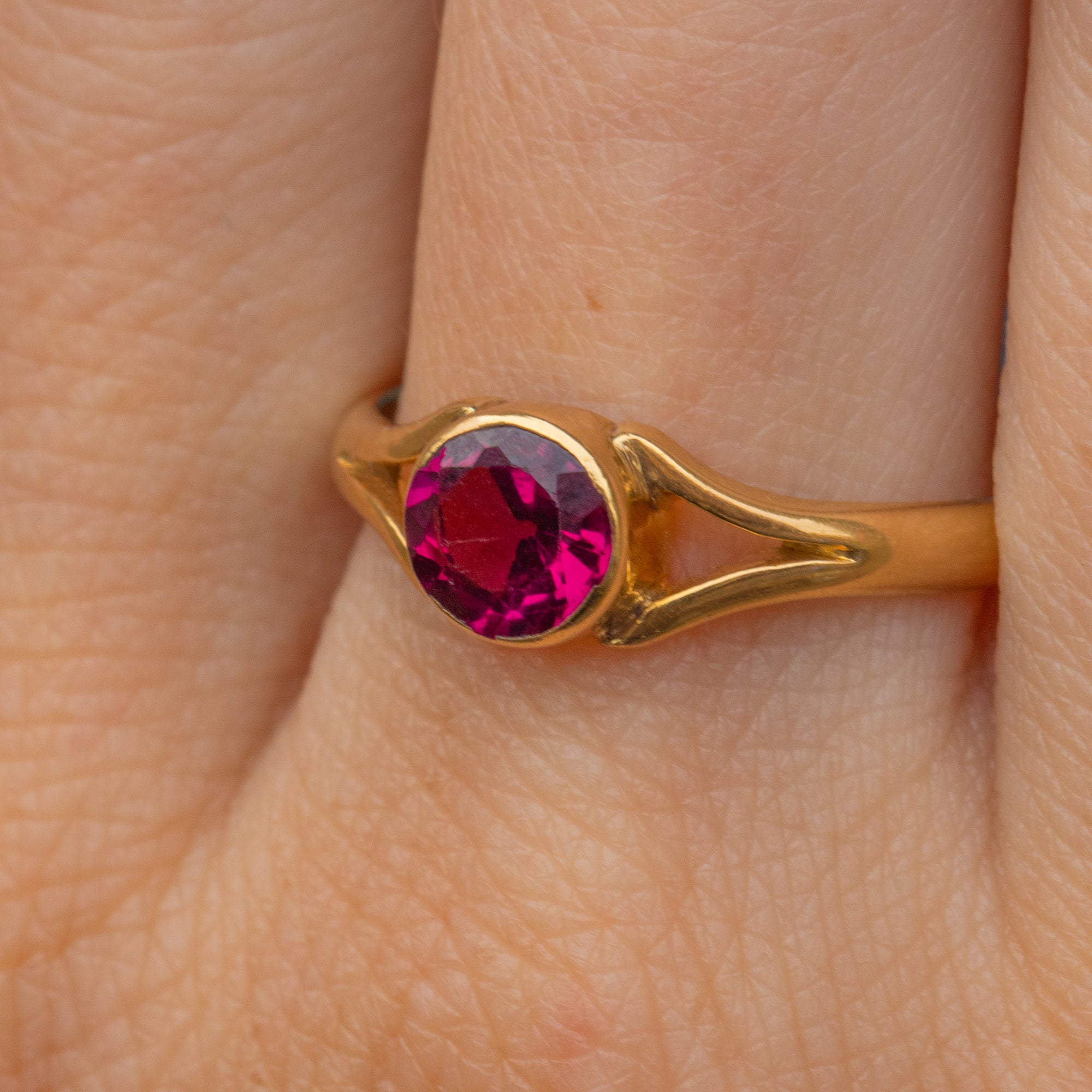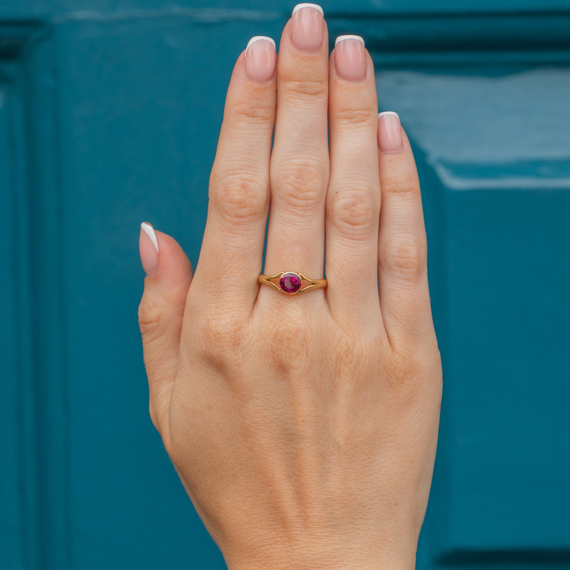 Antique 18ct Gold Garnet Solitaire Ring, c.1913