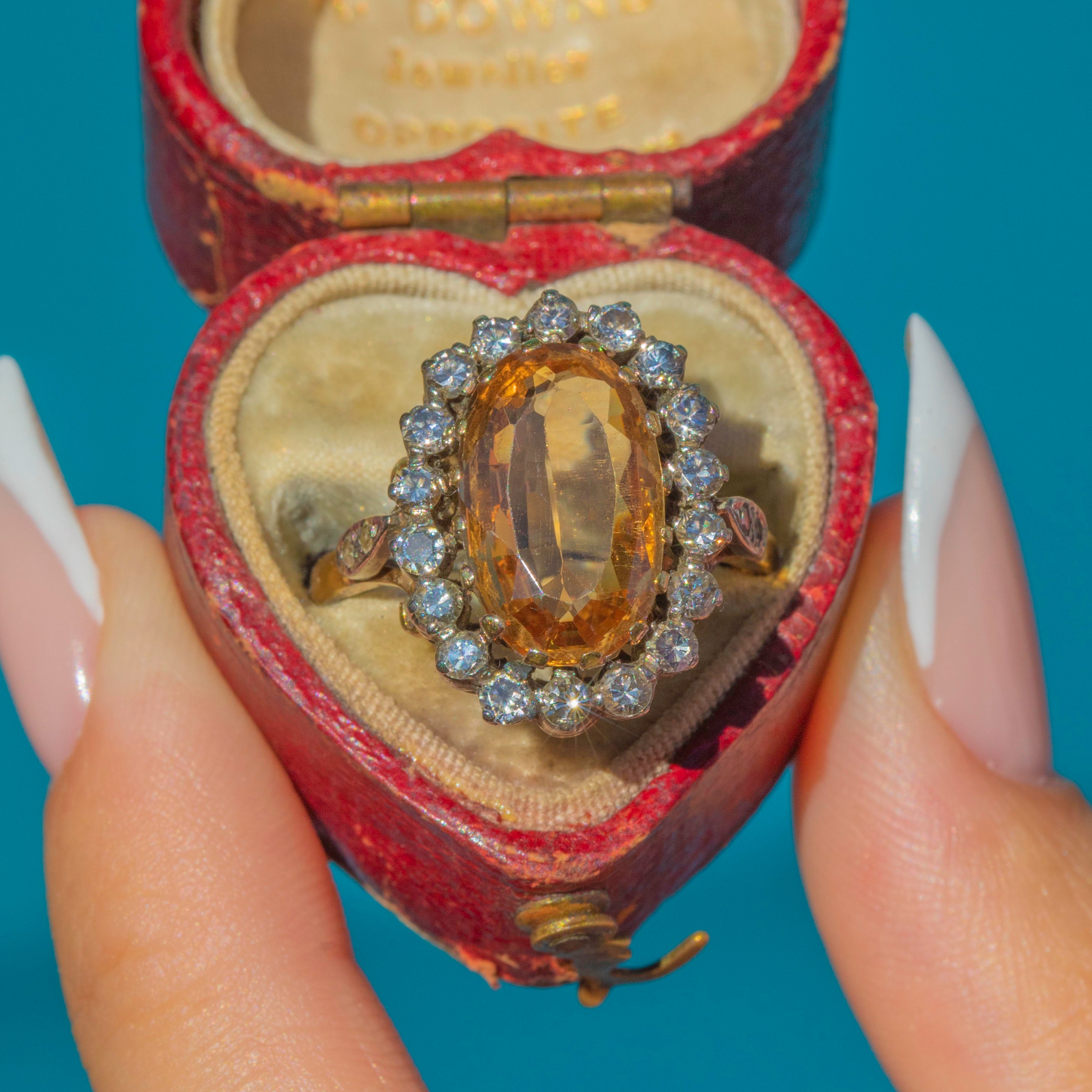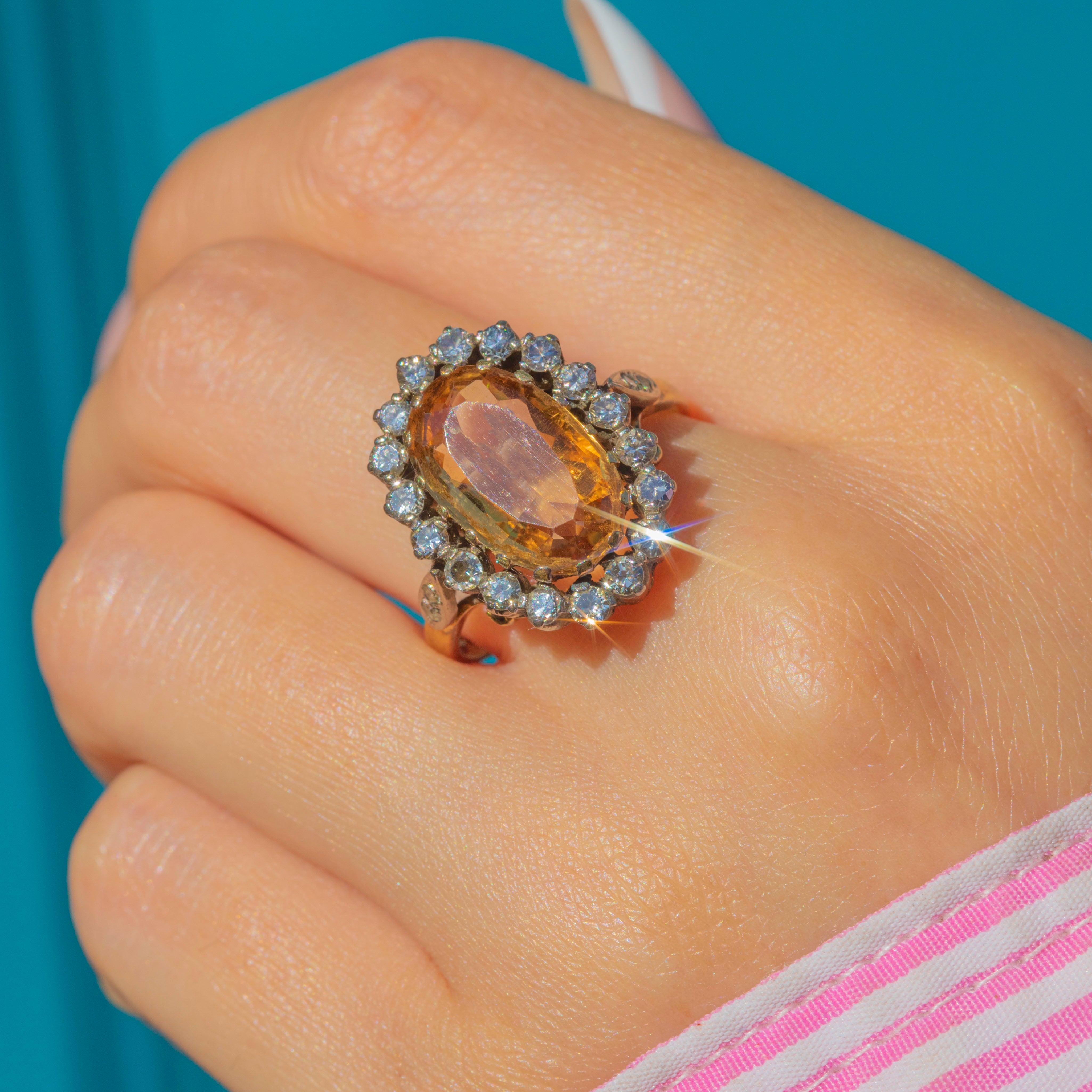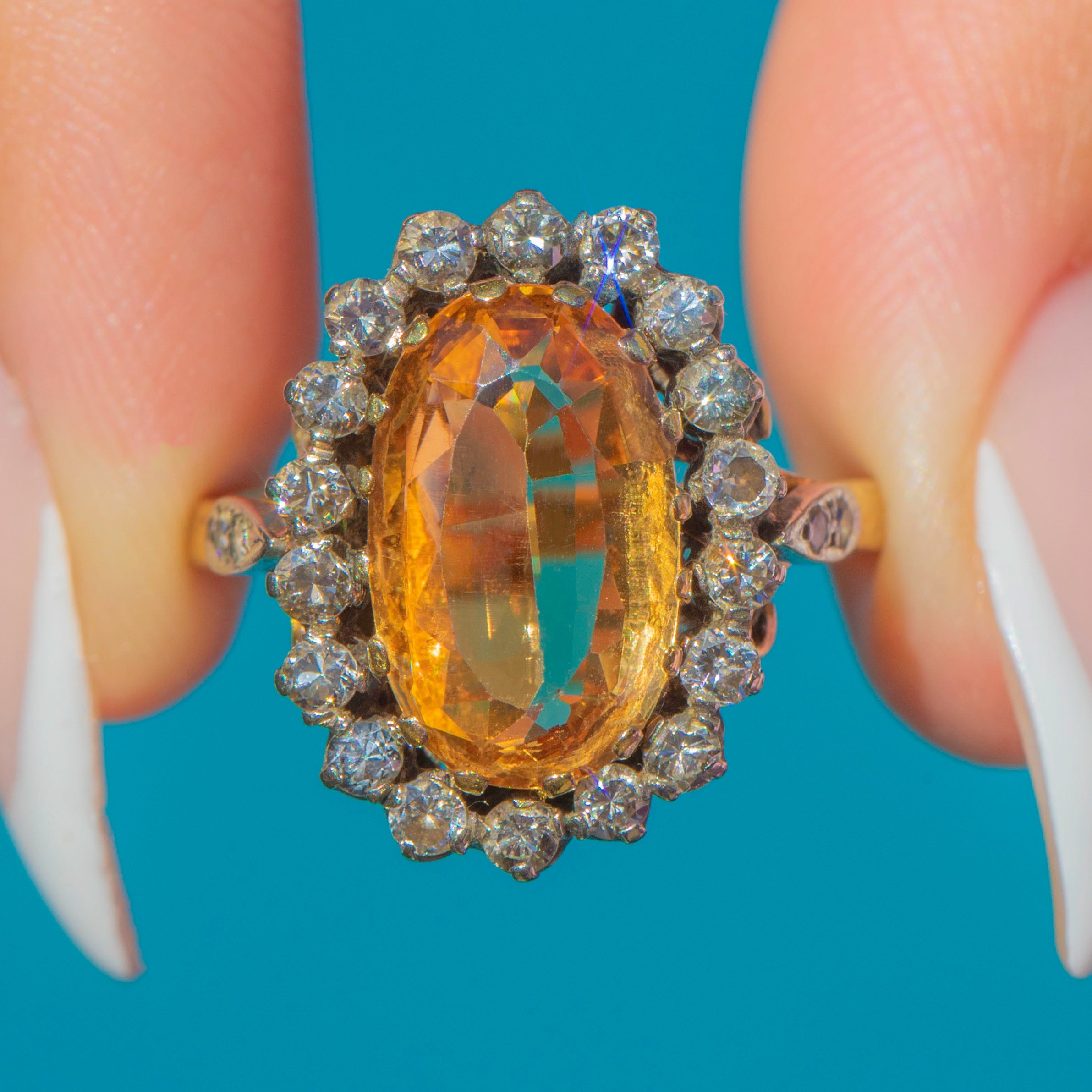 Antique 18ct Gold Imperial Topaz Diamond Cluster ring