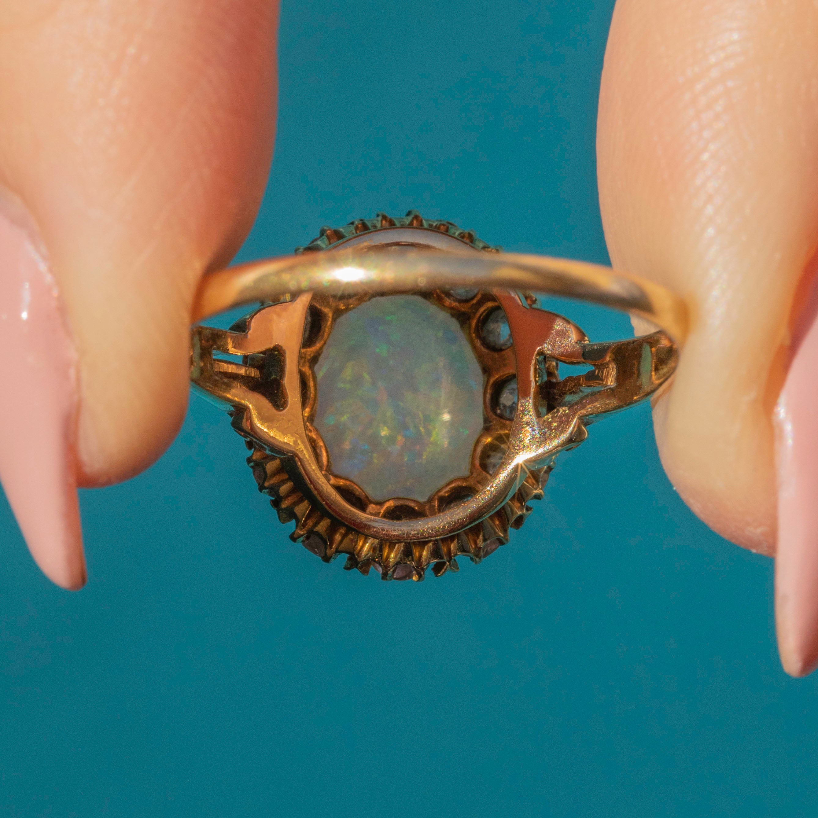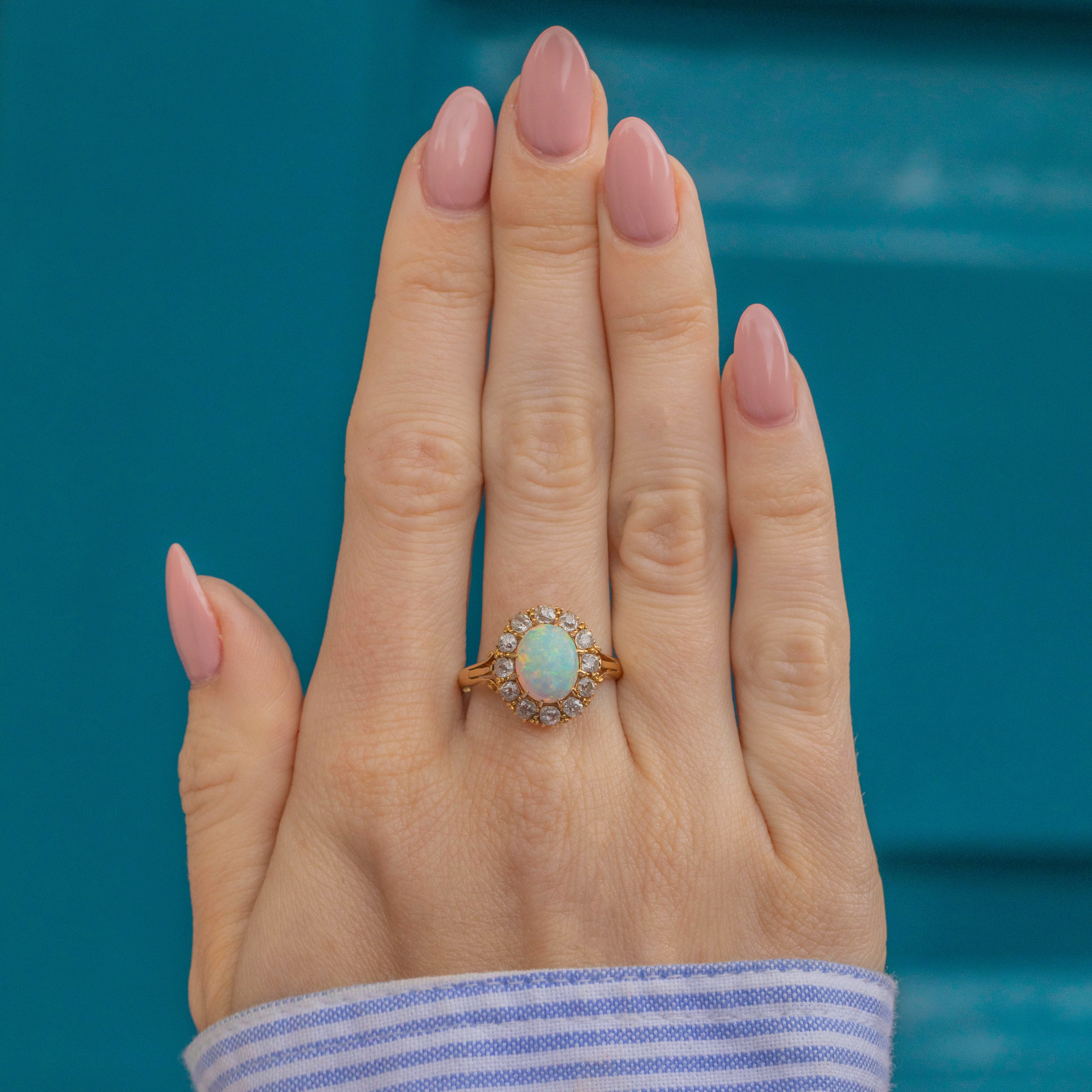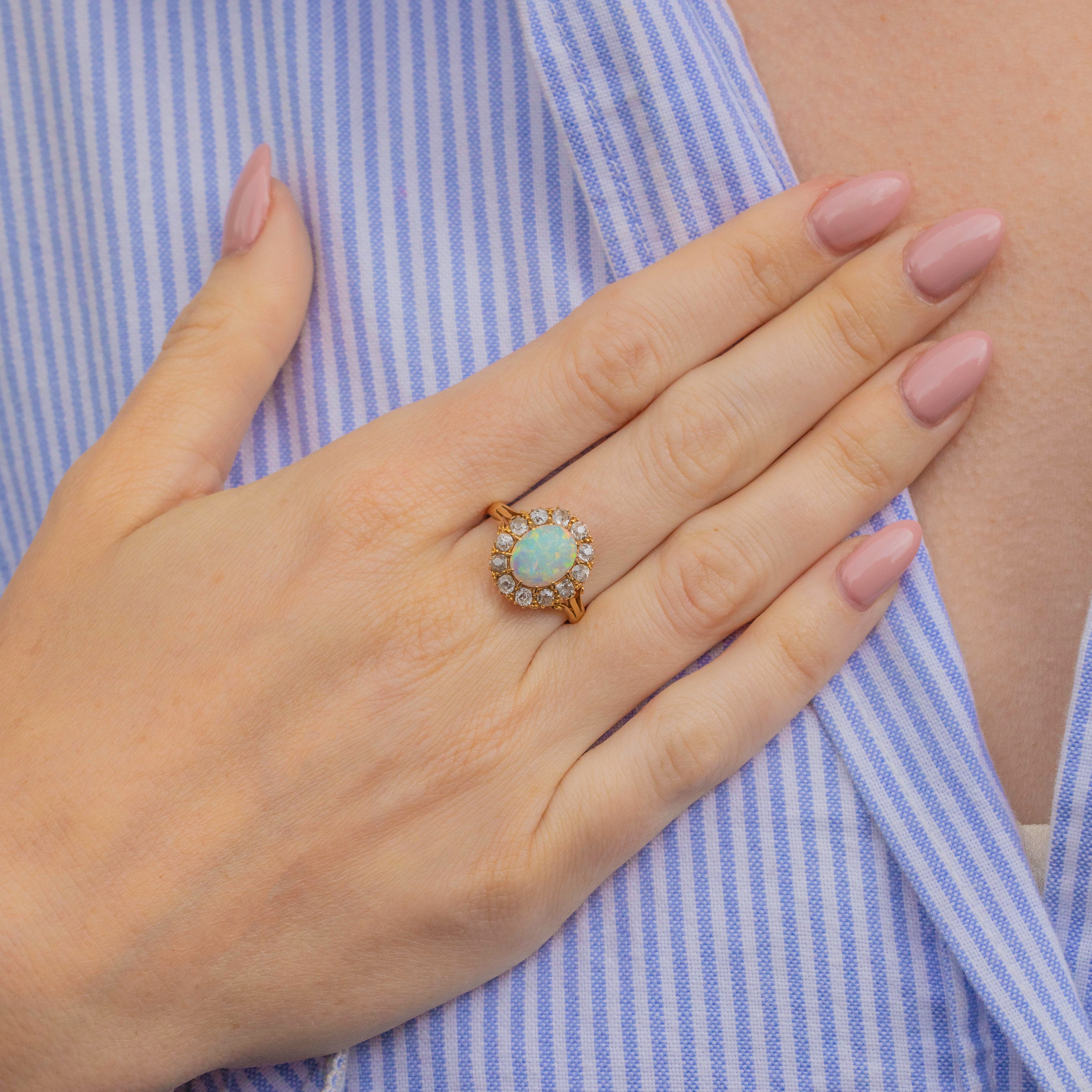 Antique 18ct Gold Opal Diamond Cluster Ring, 1.21ct Opal