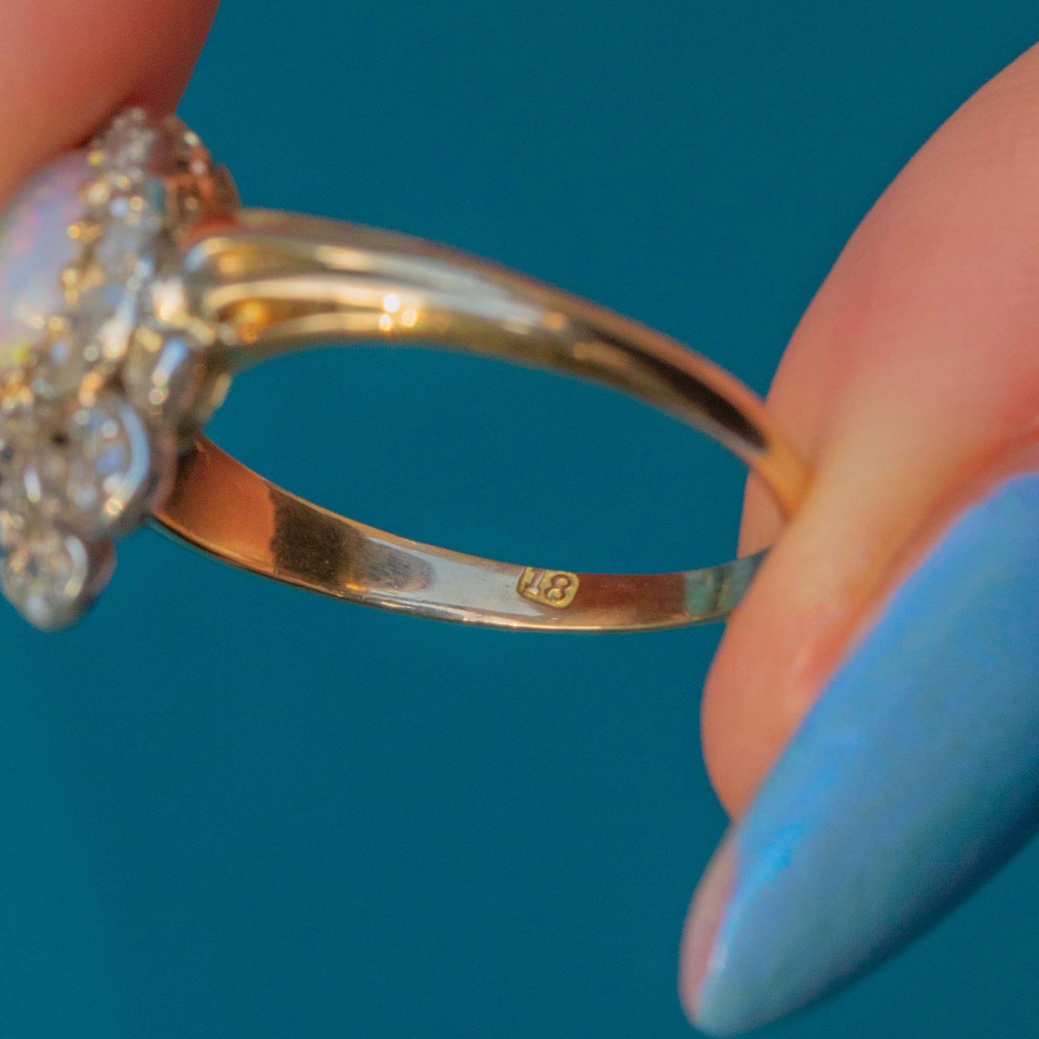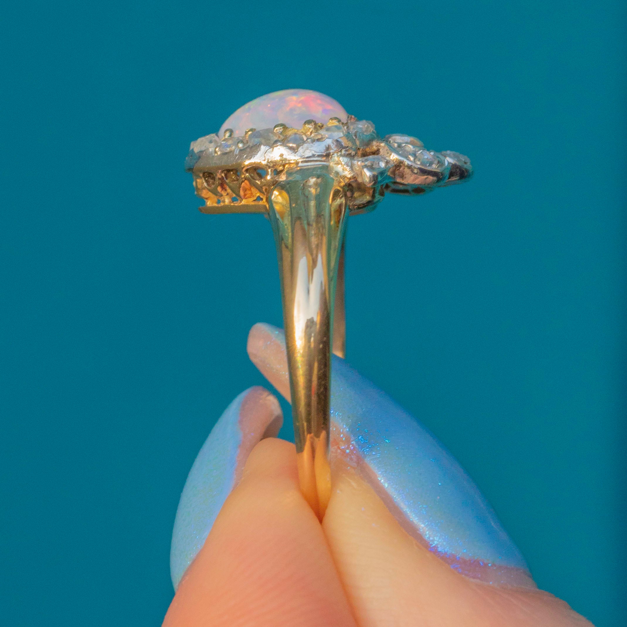 MATERIALS: Tests as 18ct Gold, Opal (0.70ct), Rose-cut Diamonds.