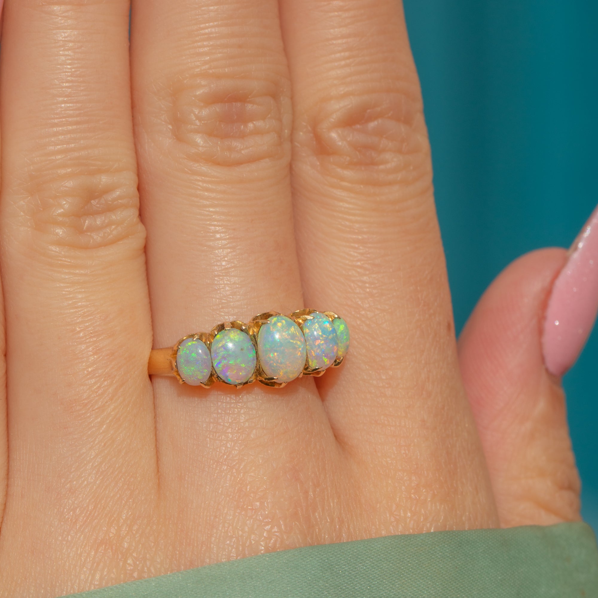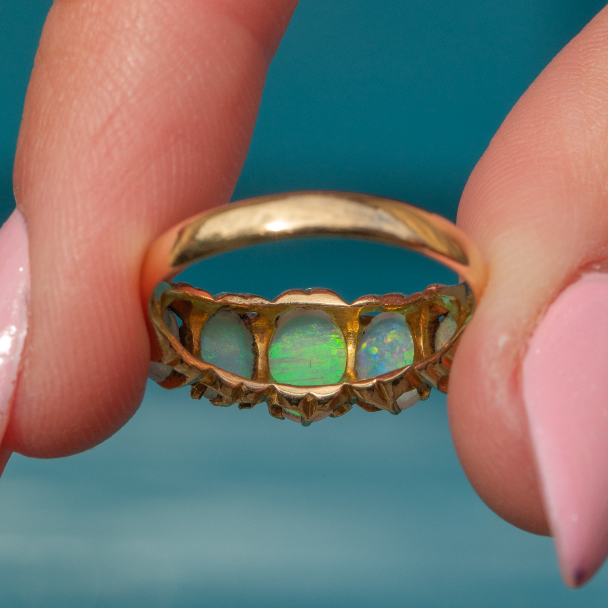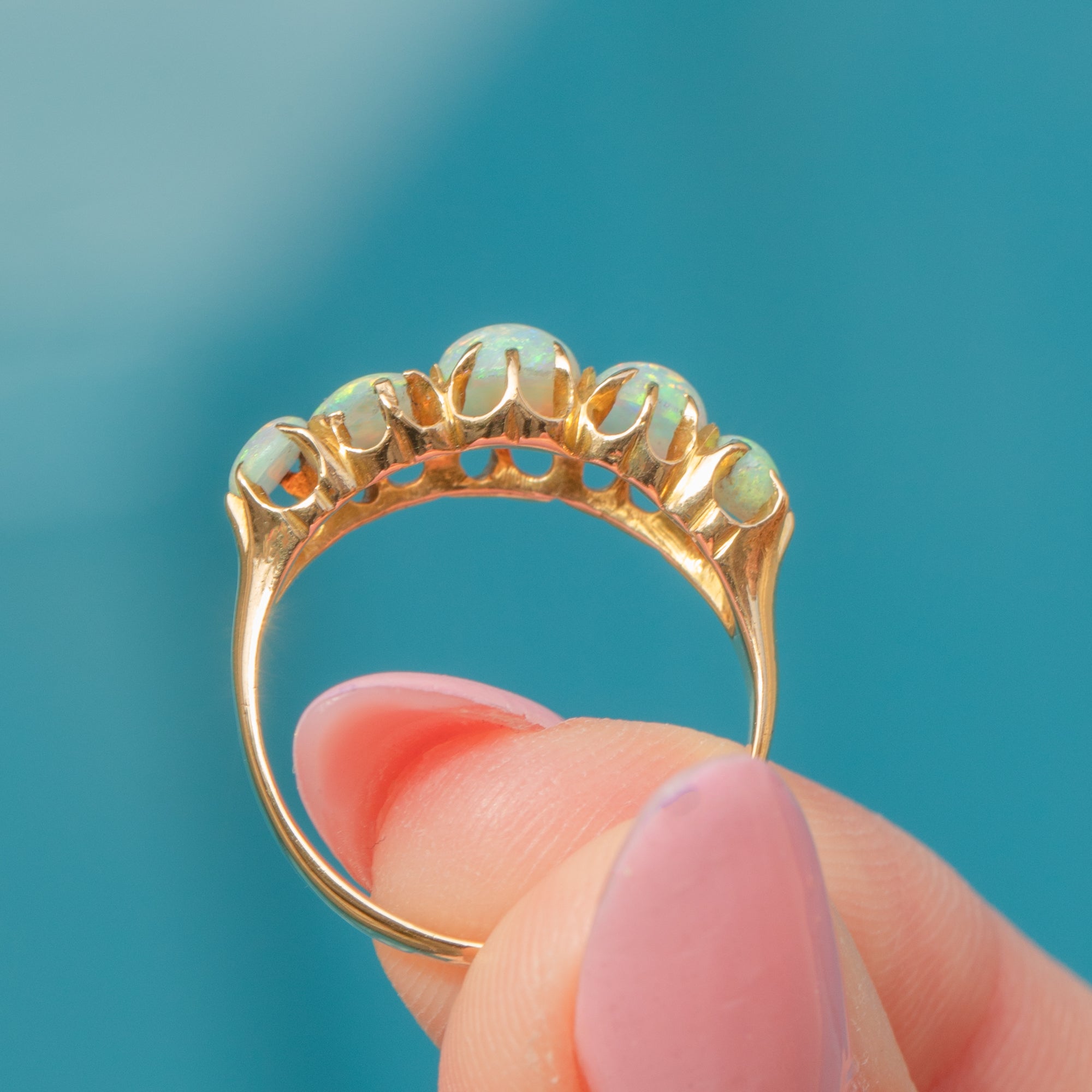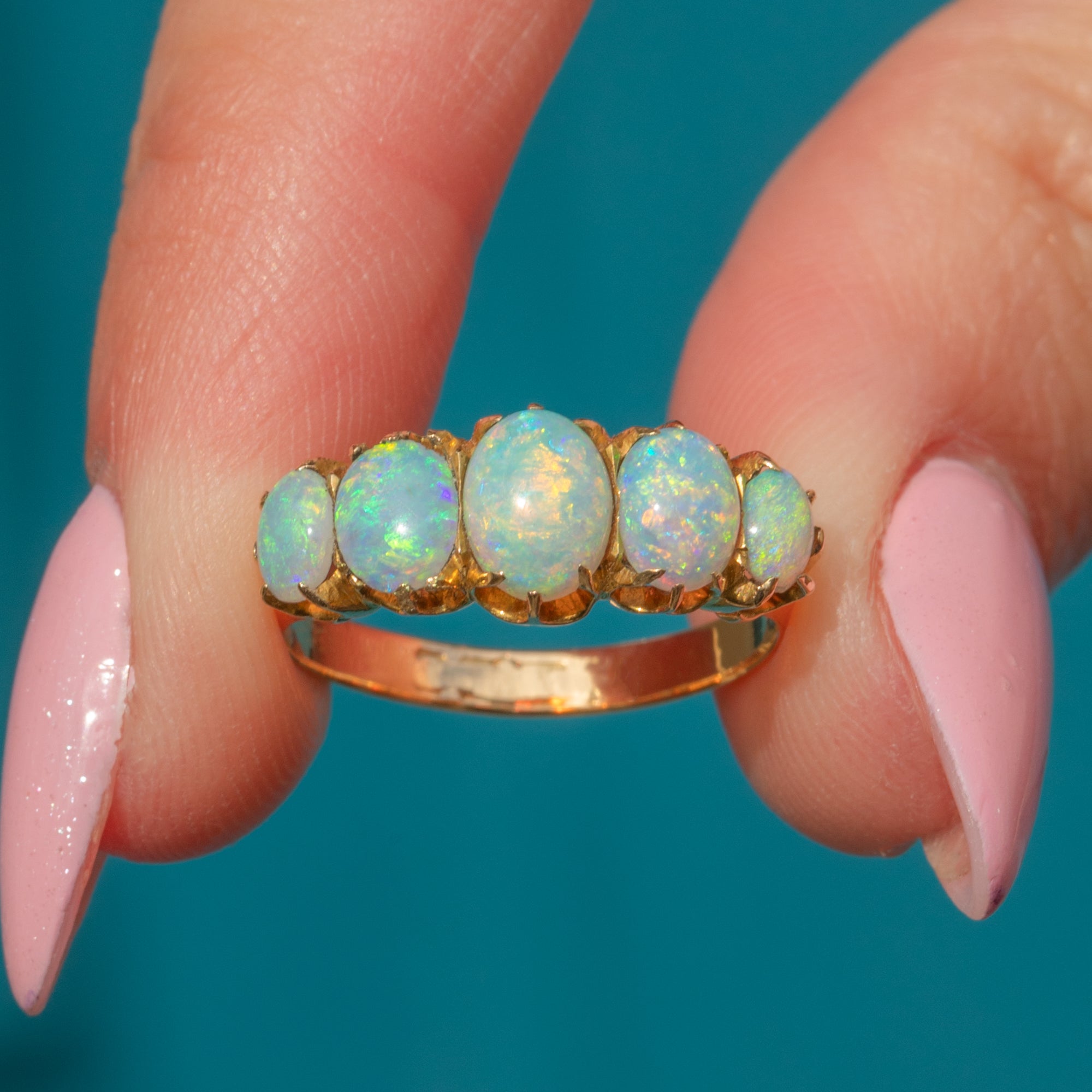 This antique 18ct Gold Opal five stone ring is a stunning piece and an exemplar of Victorian craftsmanship!